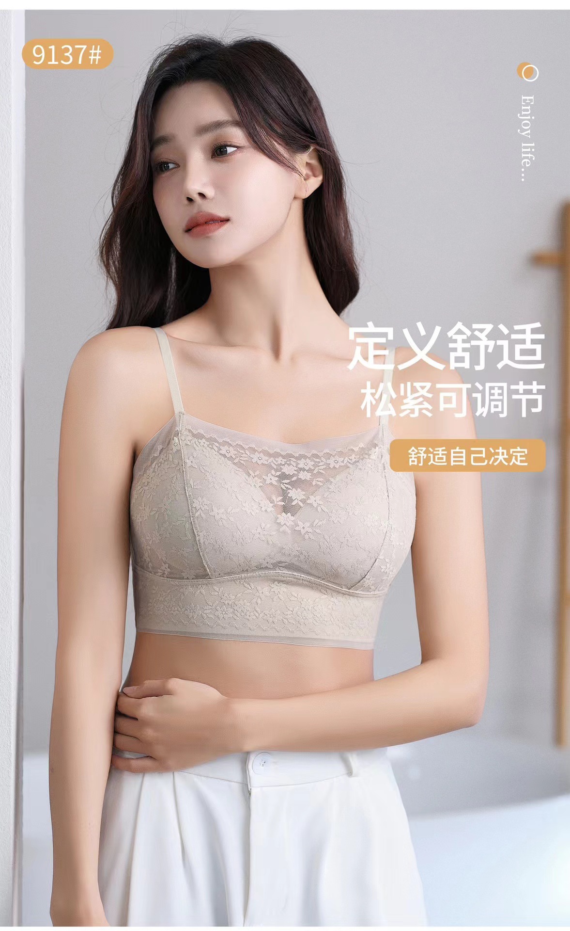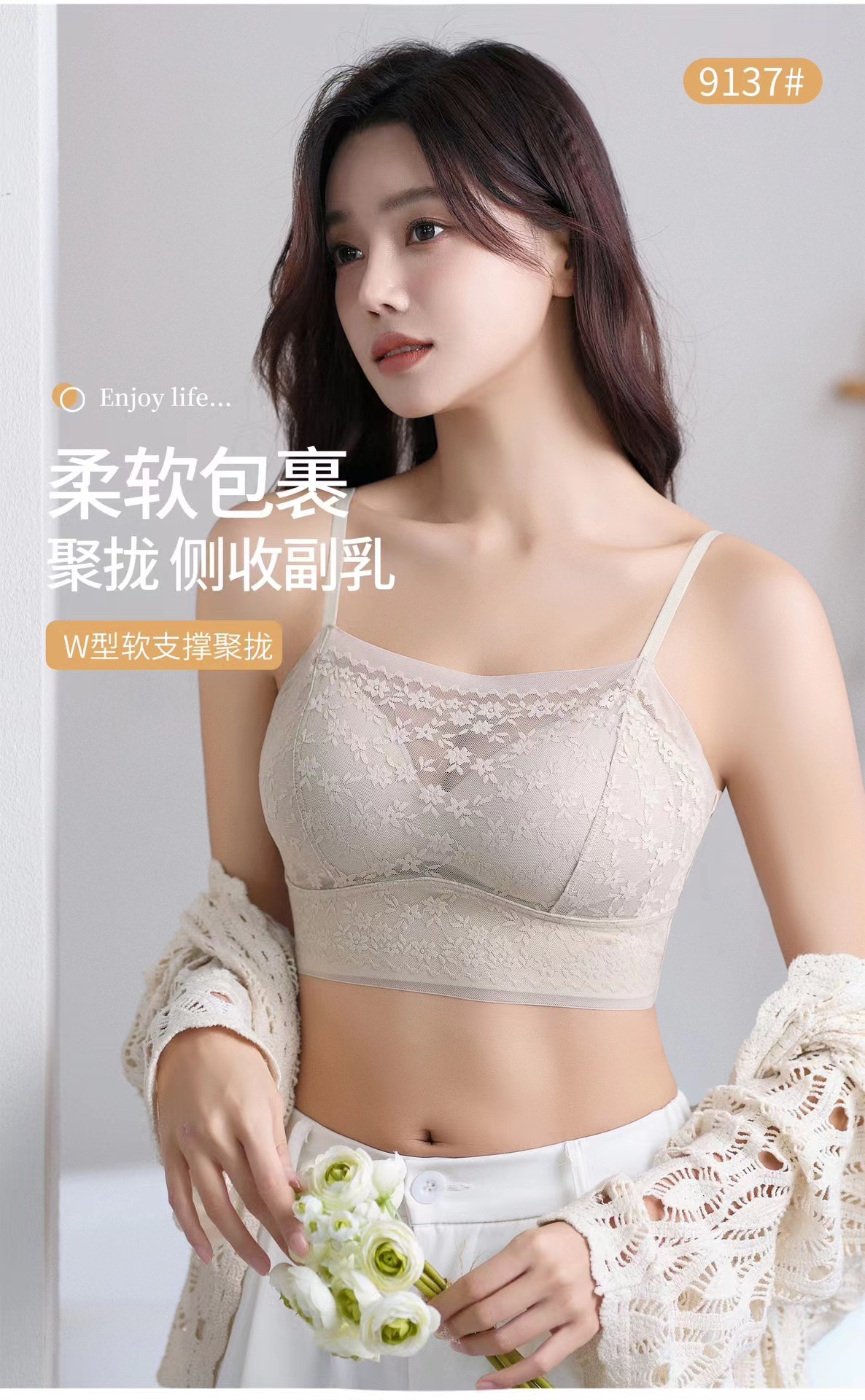 9137 여성용 프렌치 레이스 꽃무늬 서스펜더, 스위트 스타일, 고정형, 일체형, 입체적, 스타일리시, 무제한, 와이어 프리, 아름다운 등스토어 가기