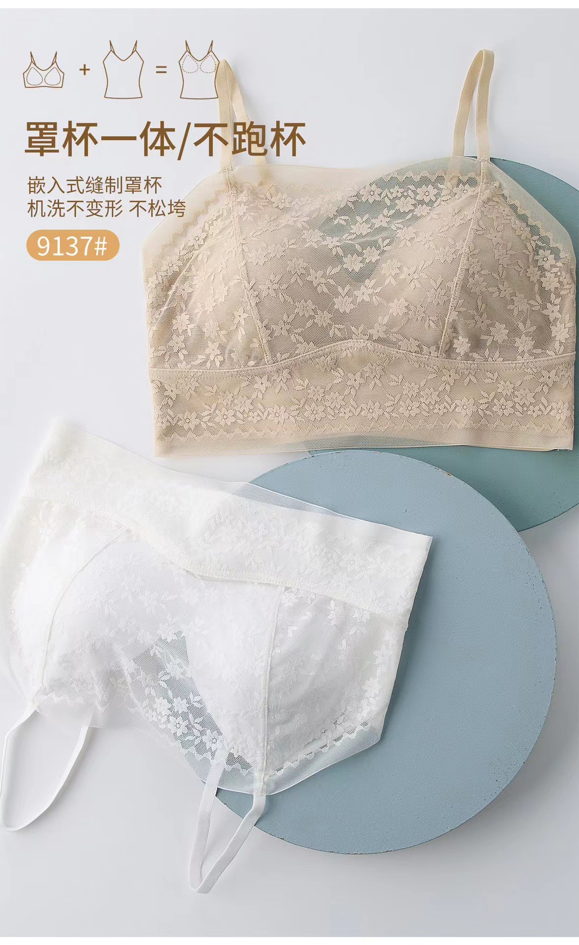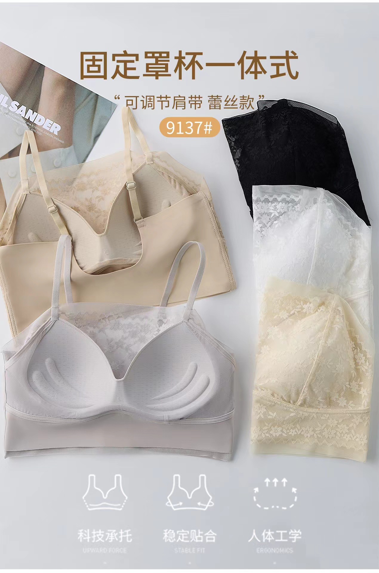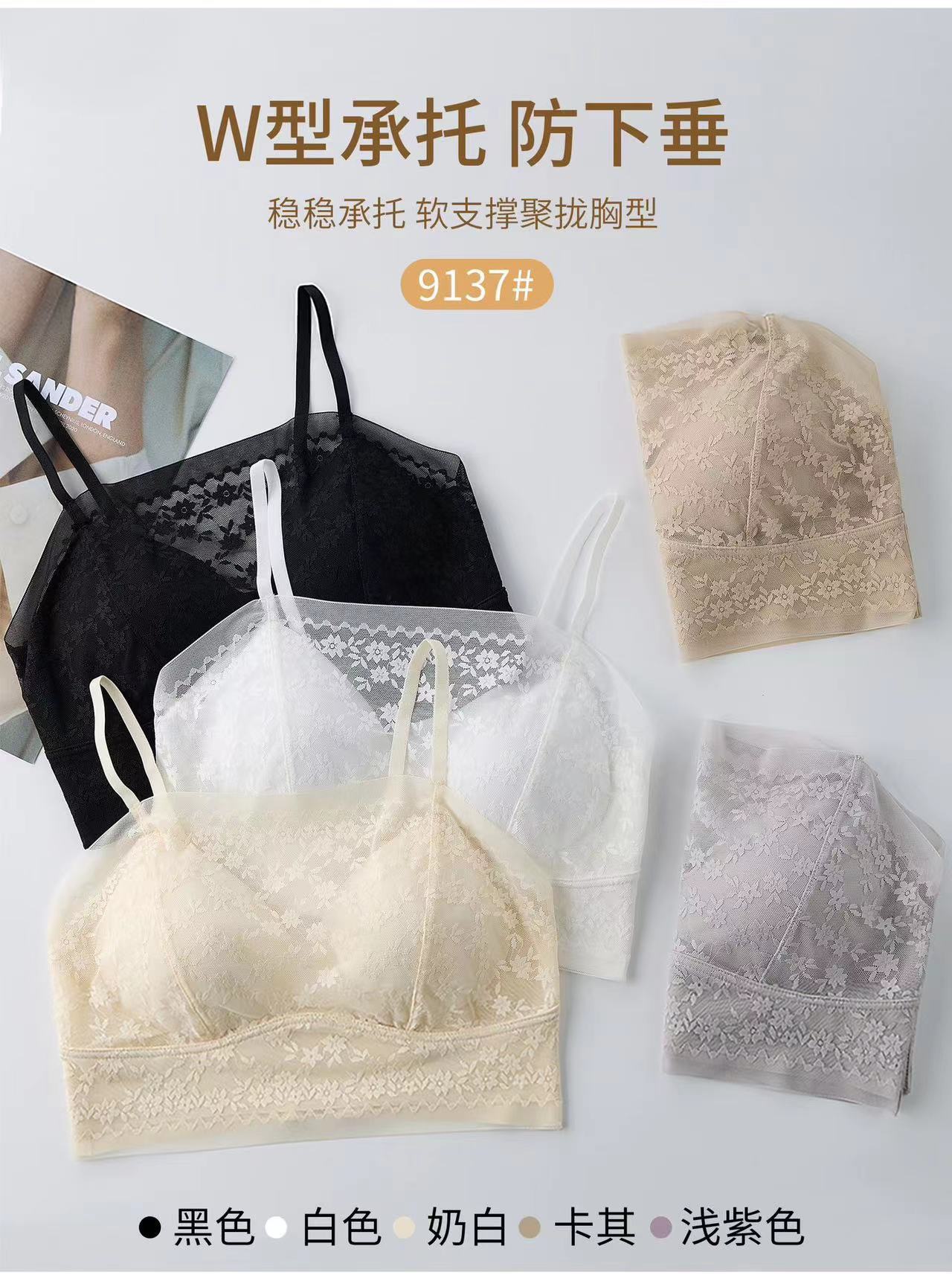 9137 여성용 프렌치 레이스 꽃무늬 서스펜더, 스위트 스타일, 고정형, 일체형, 입체적, 스타일리시, 무제한, 와이어 프리, 아름다운 등
