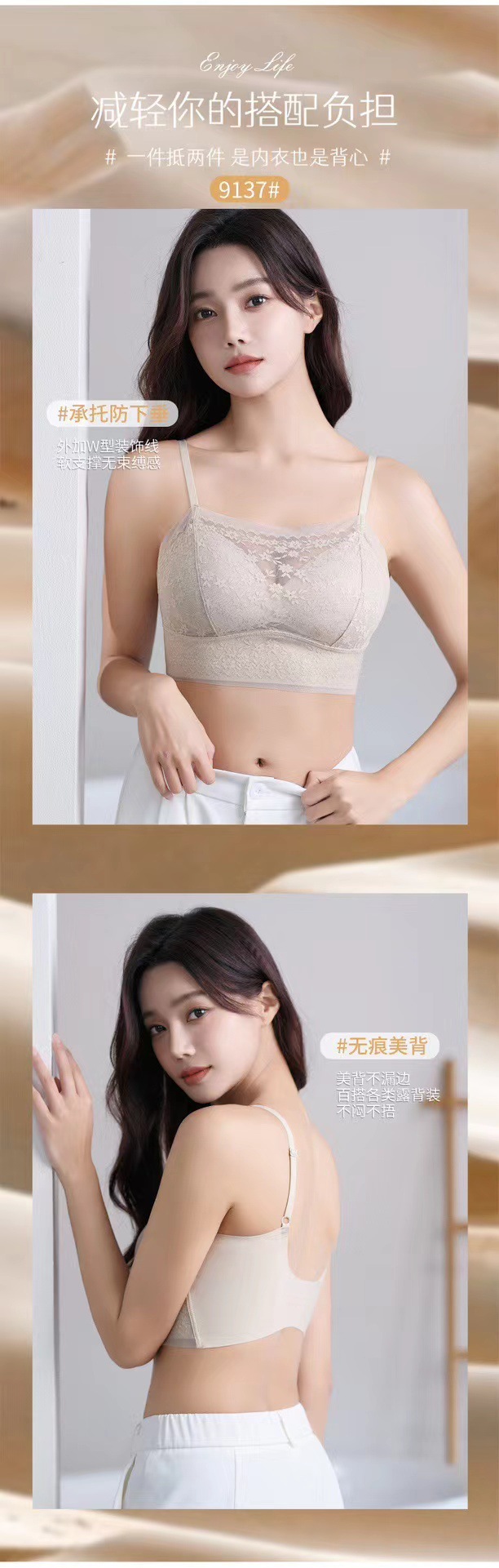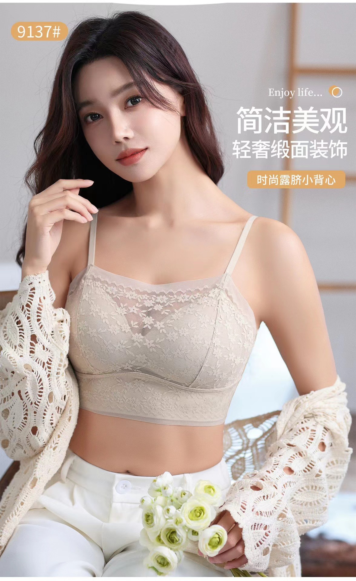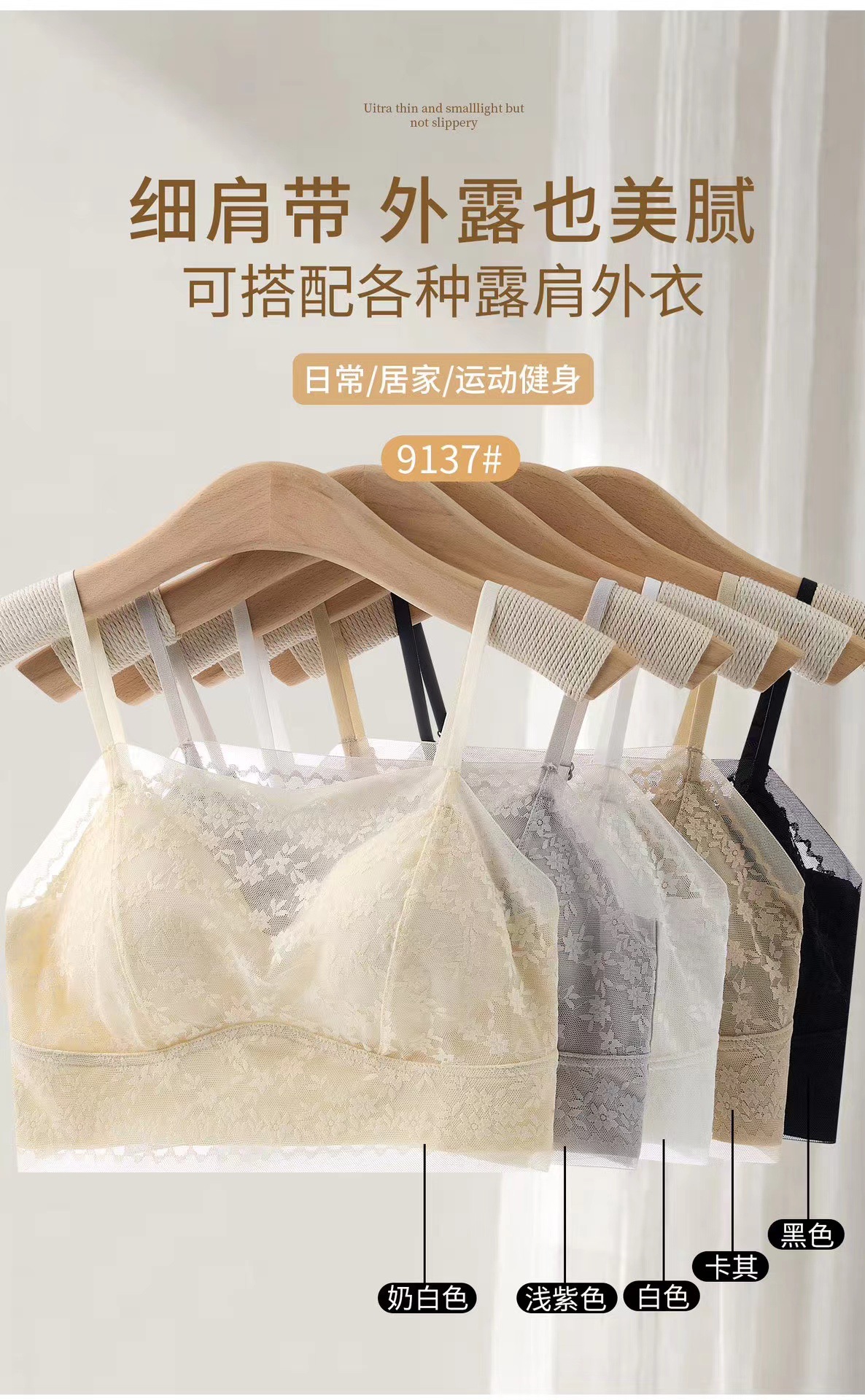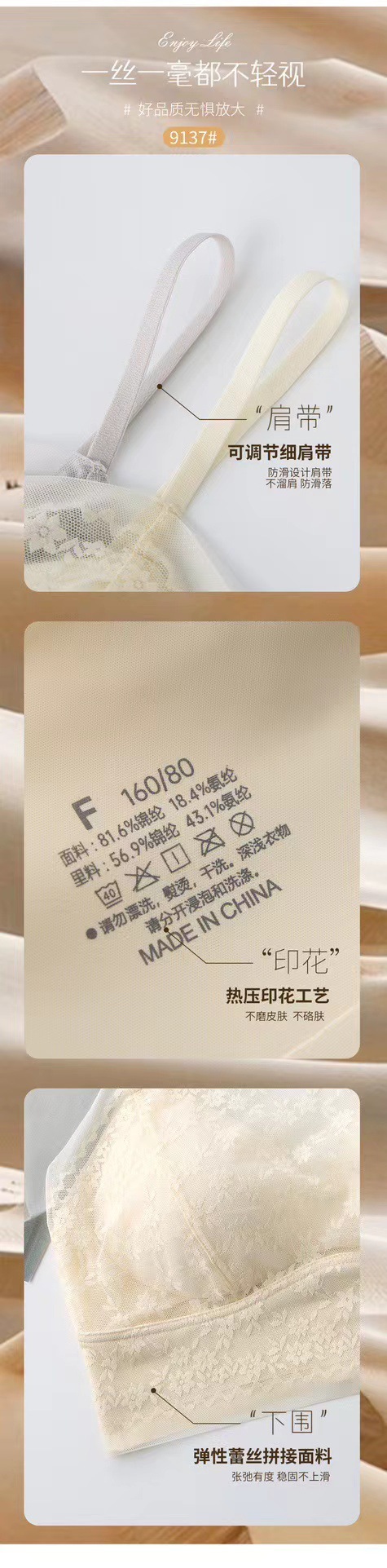 9137 여성용 프렌치 레이스 꽃무늬 서스펜더, 스위트 스타일, 고정형, 일체형, 입체적, 스타일리시, 무제한, 와이어 프리, 아름다운 등
