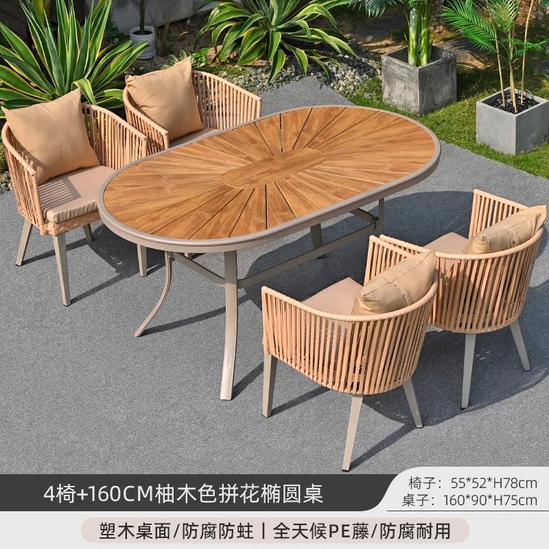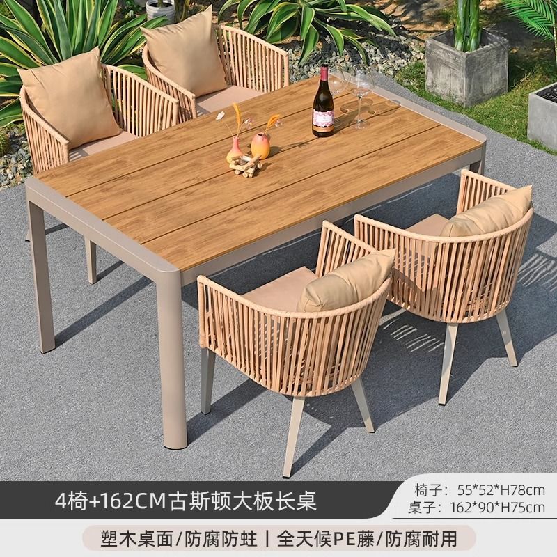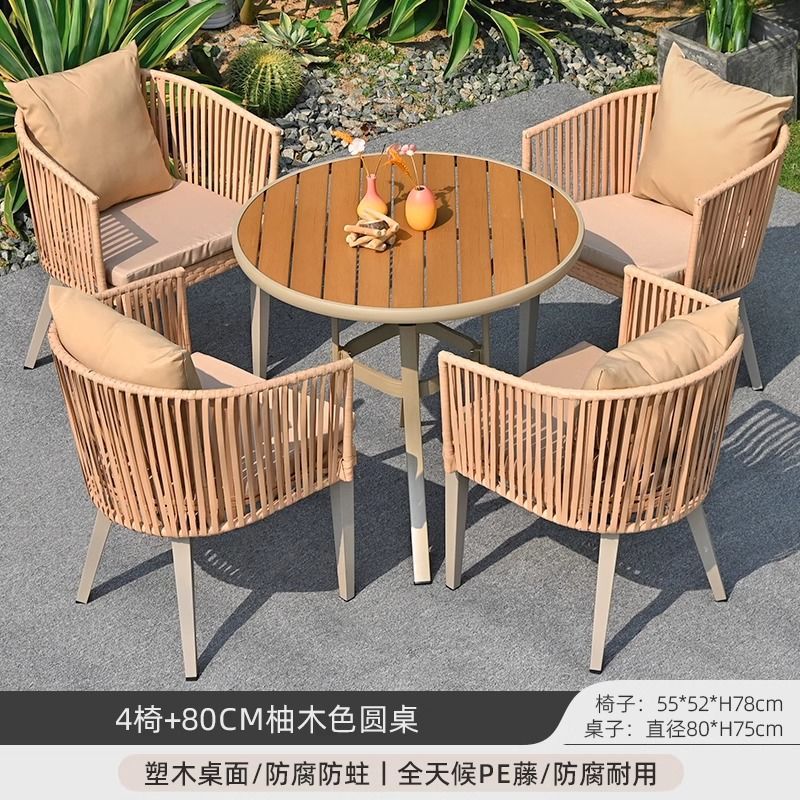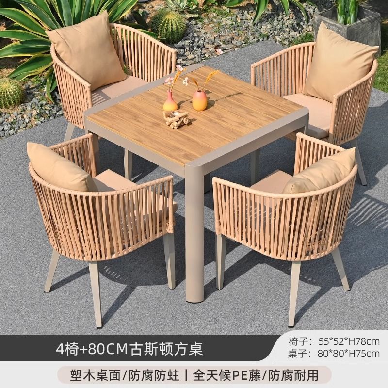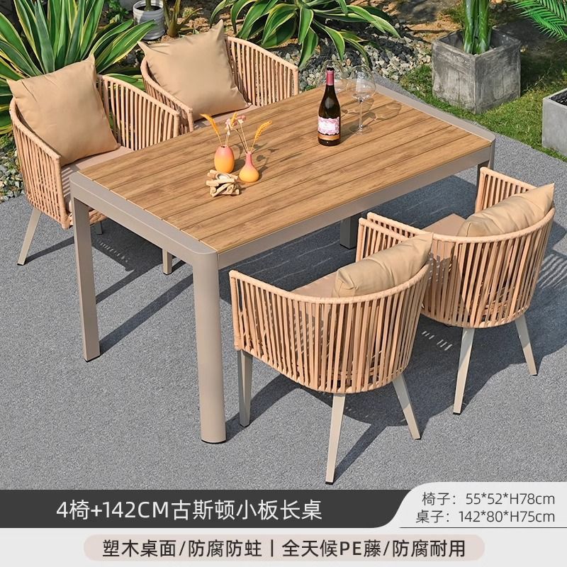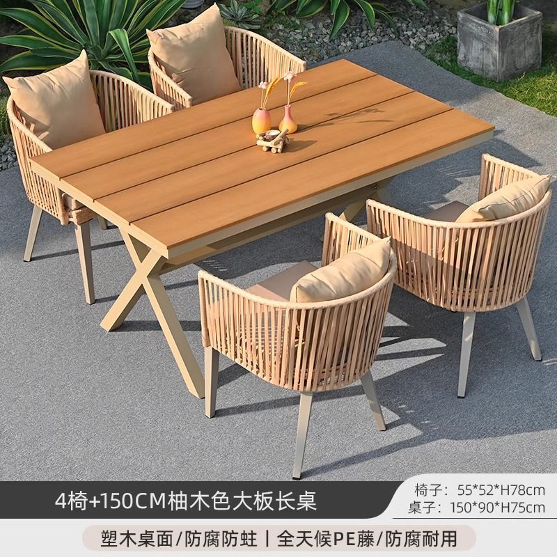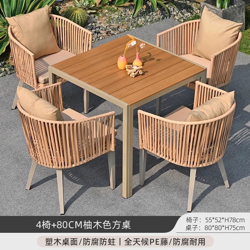 야외 안뜰 테이블과 의자, 야외 레저 플라스틱 목재 식탁과 의자 조합, 야외 발코니, 마당 정원 등나무 의자 직접 판매스토어 가기