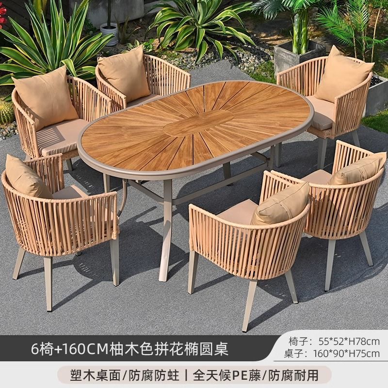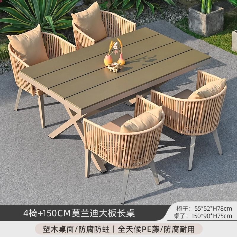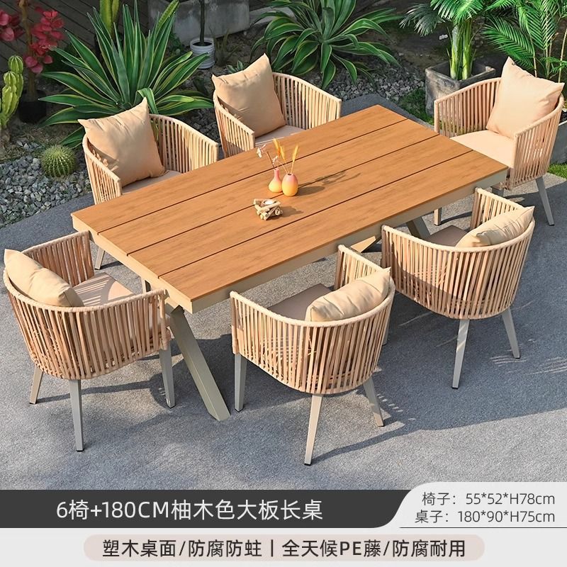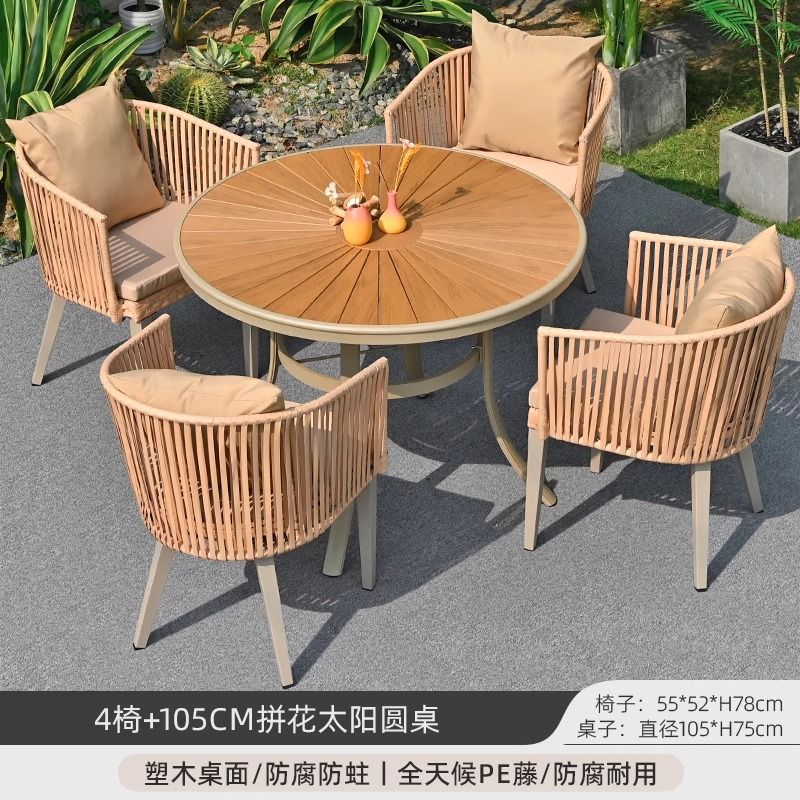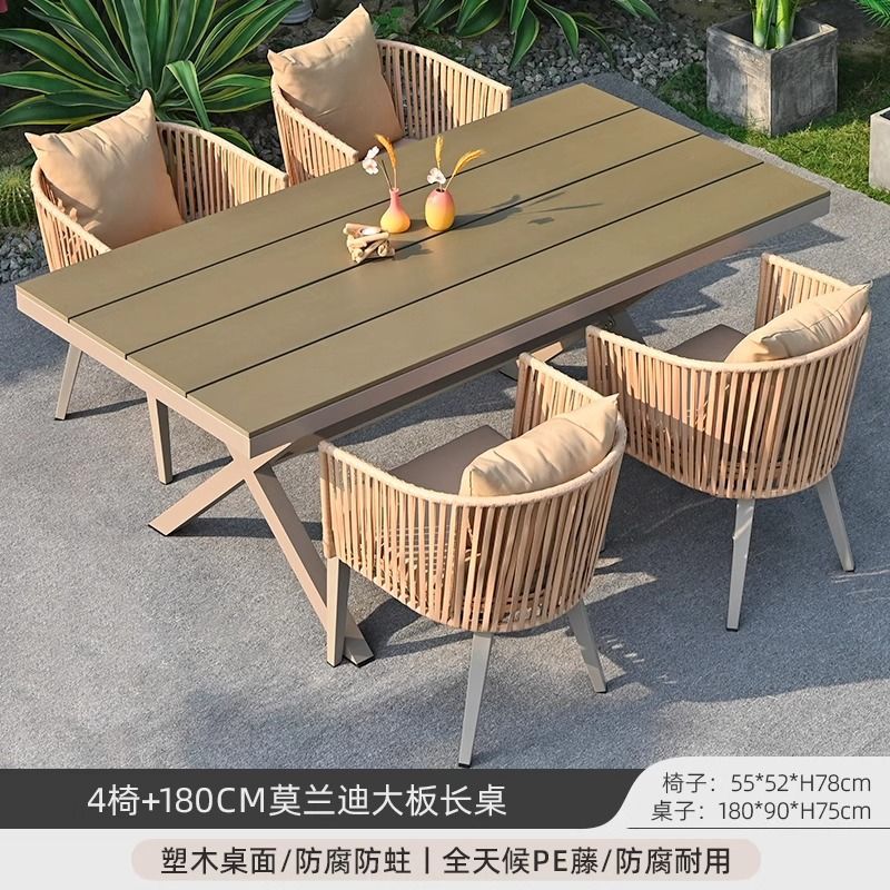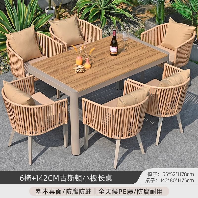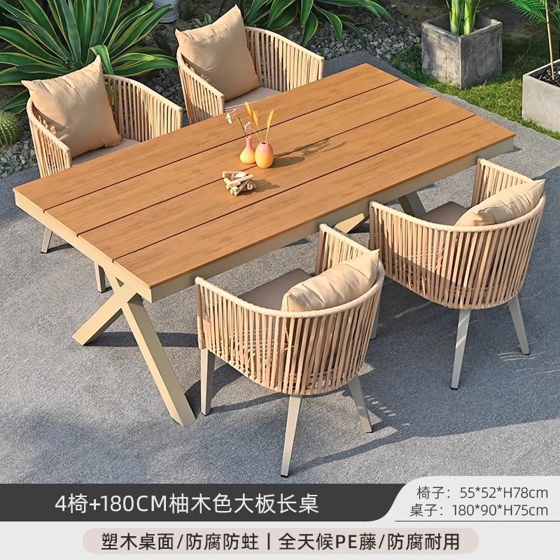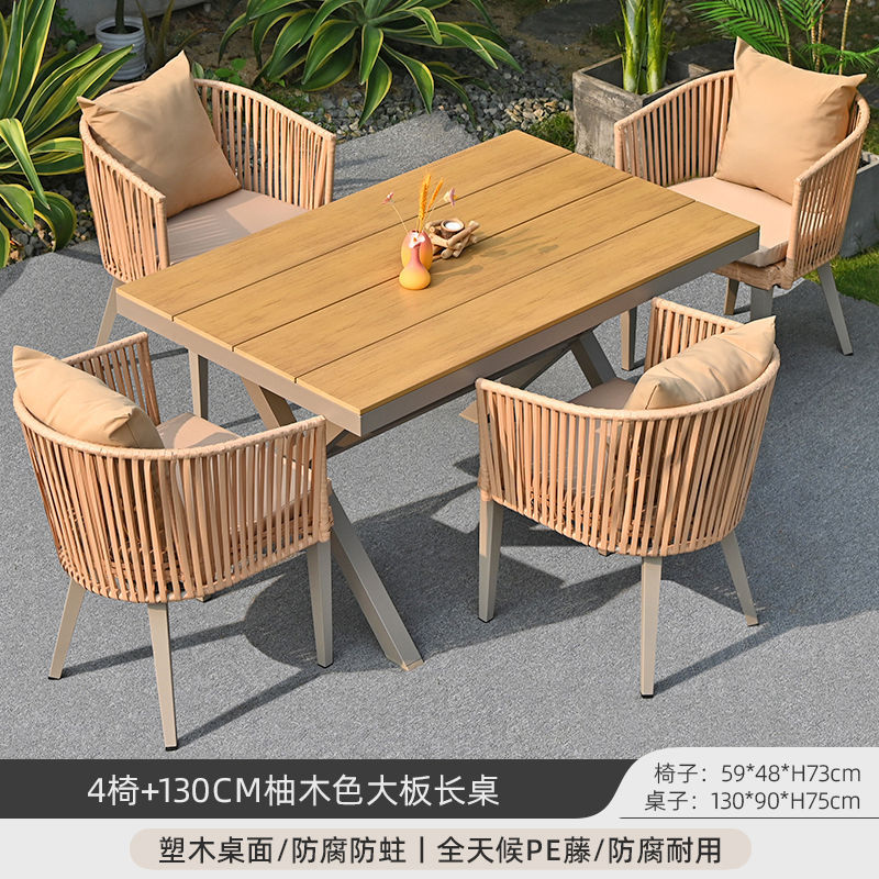 야외 안뜰 테이블과 의자, 야외 레저 플라스틱 목재 식탁과 의자 조합, 야외 발코니, 마당 정원 등나무 의자 직접 판매스토어 가기