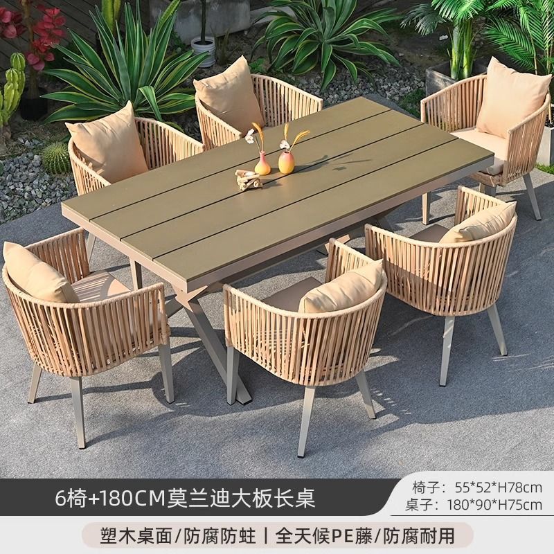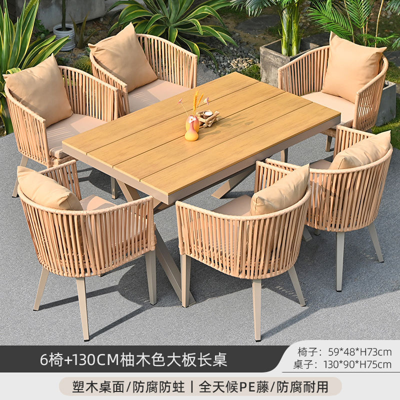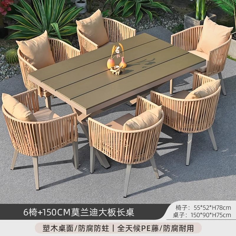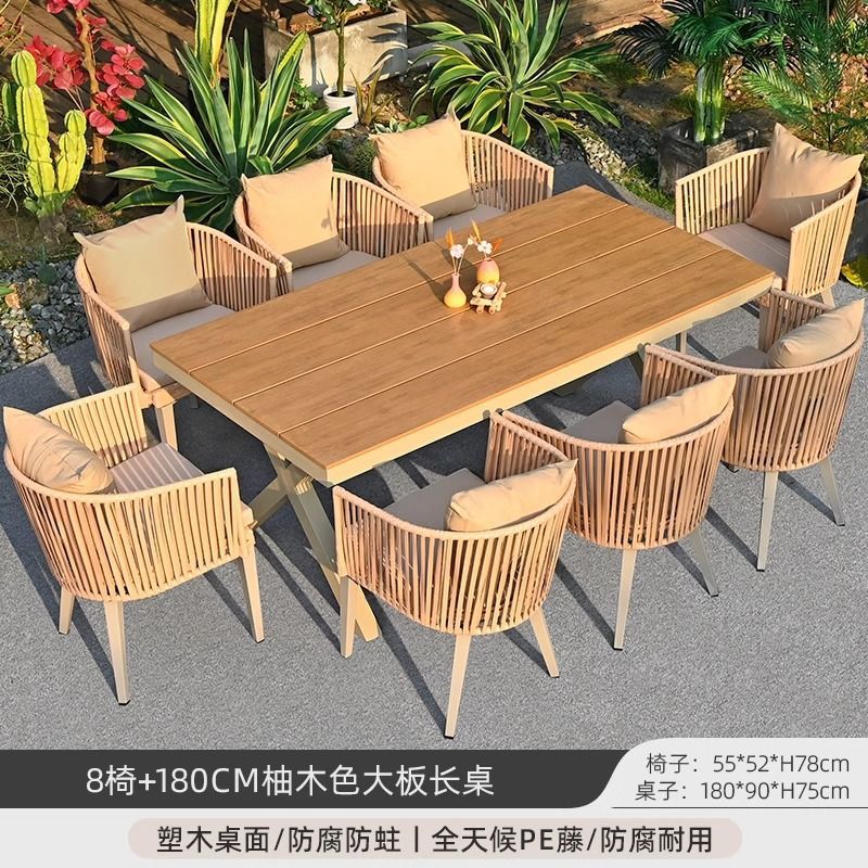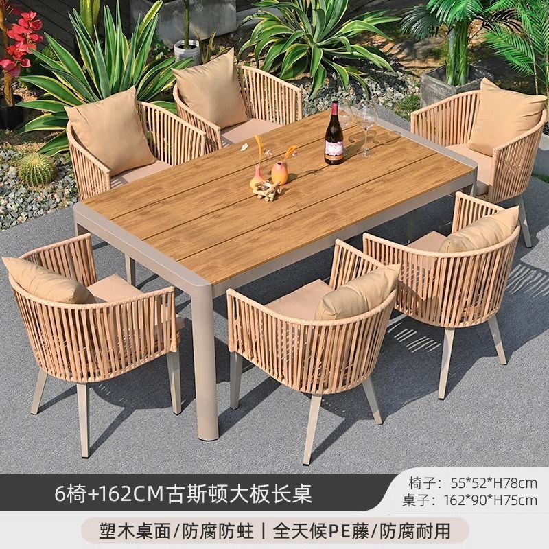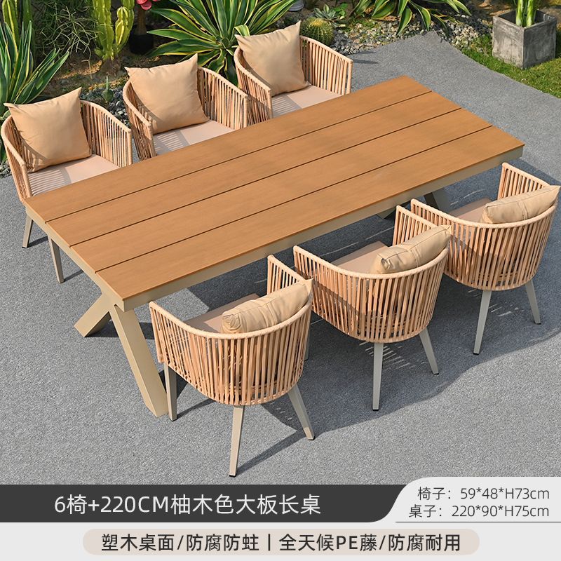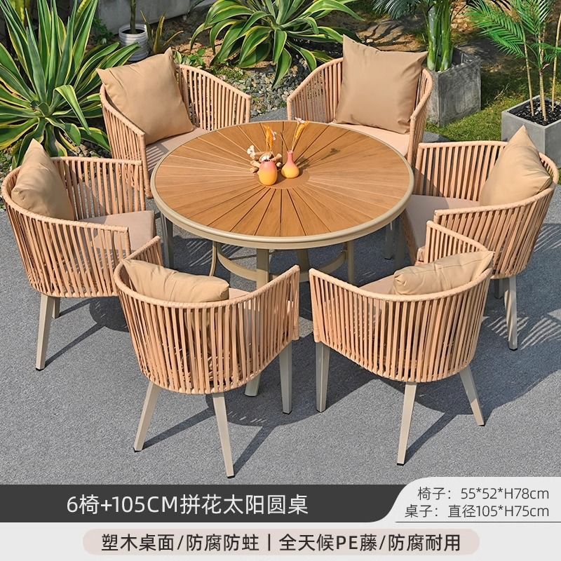 야외 안뜰 테이블과 의자, 야외 레저 플라스틱 목재 식탁과 의자 조합, 야외 발코니, 마당 정원 등나무 의자 직접 판매스토어 가기