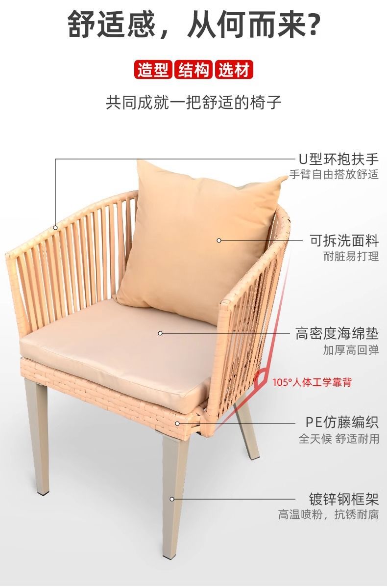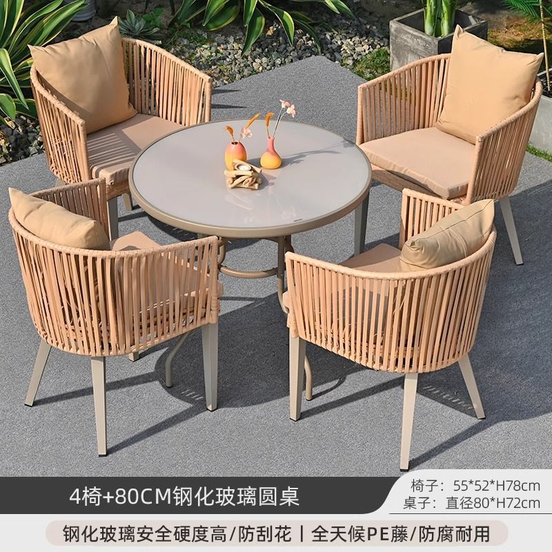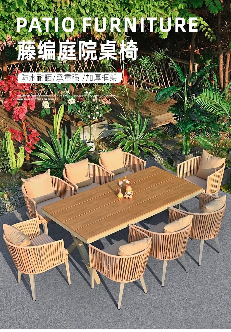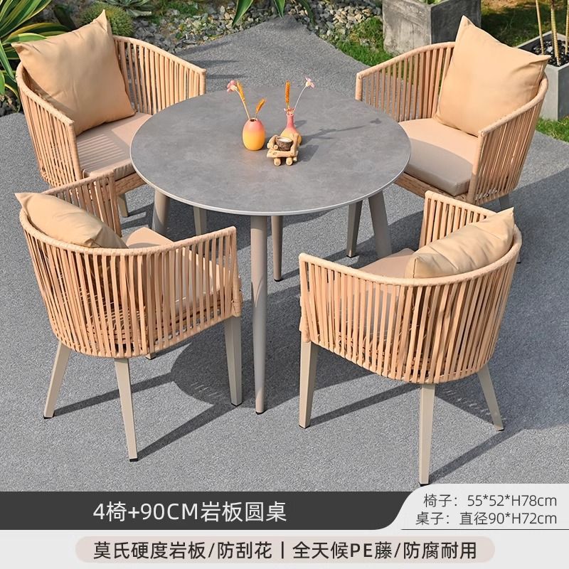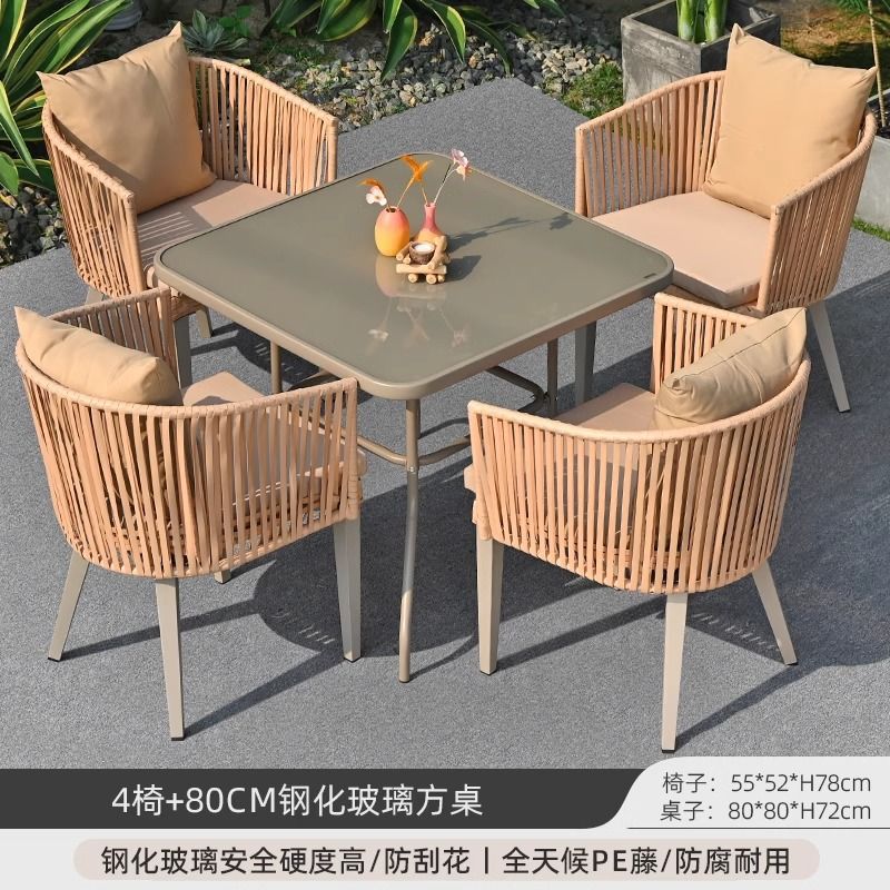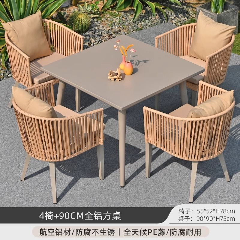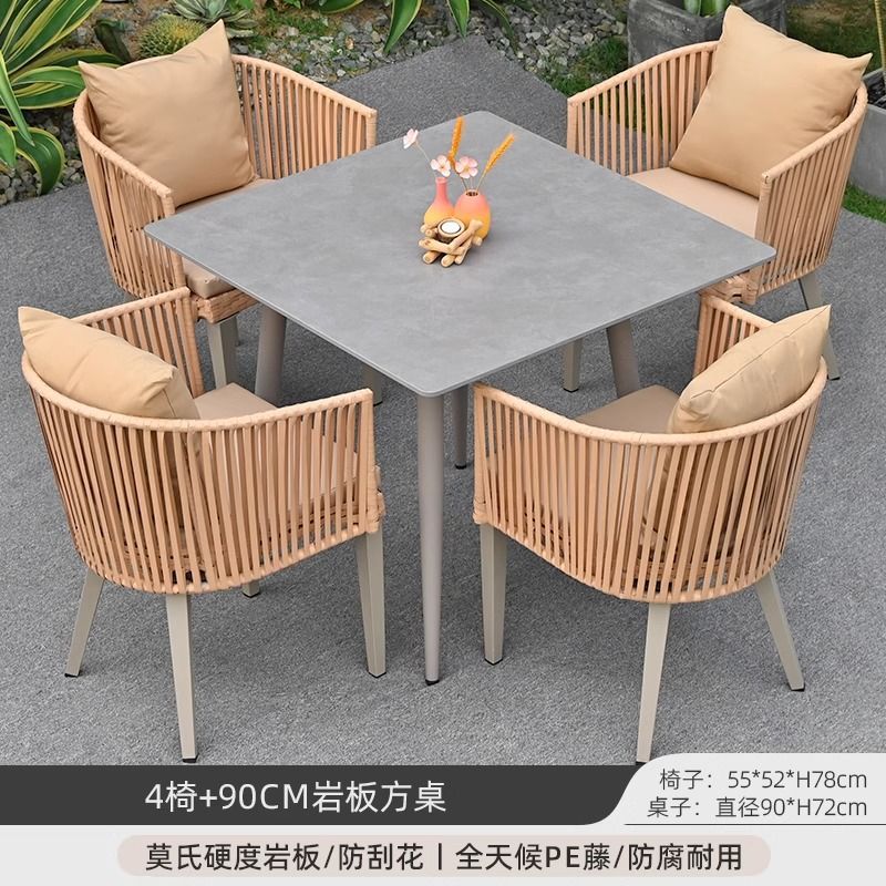 야외 안뜰 테이블과 의자, 야외 레저 플라스틱 목재 식탁과 의자 조합, 야외 발코니, 마당 정원 등나무 의자 직접 판매스토어 가기