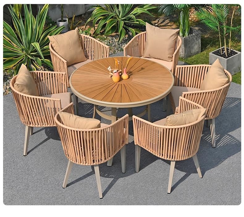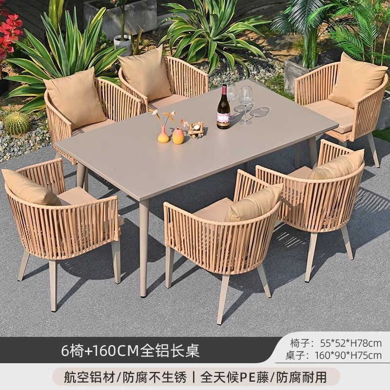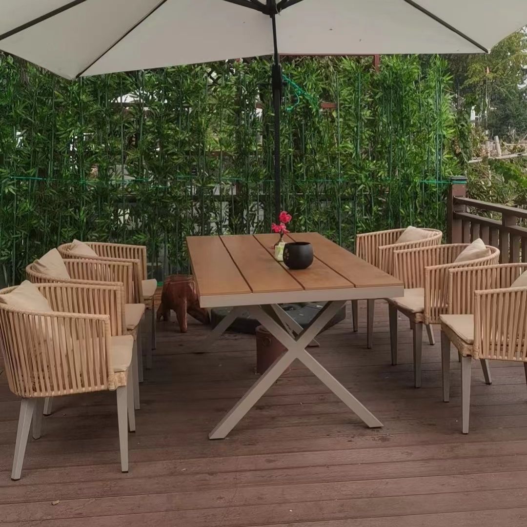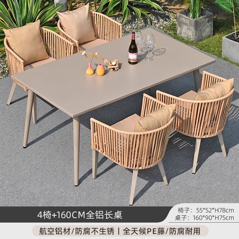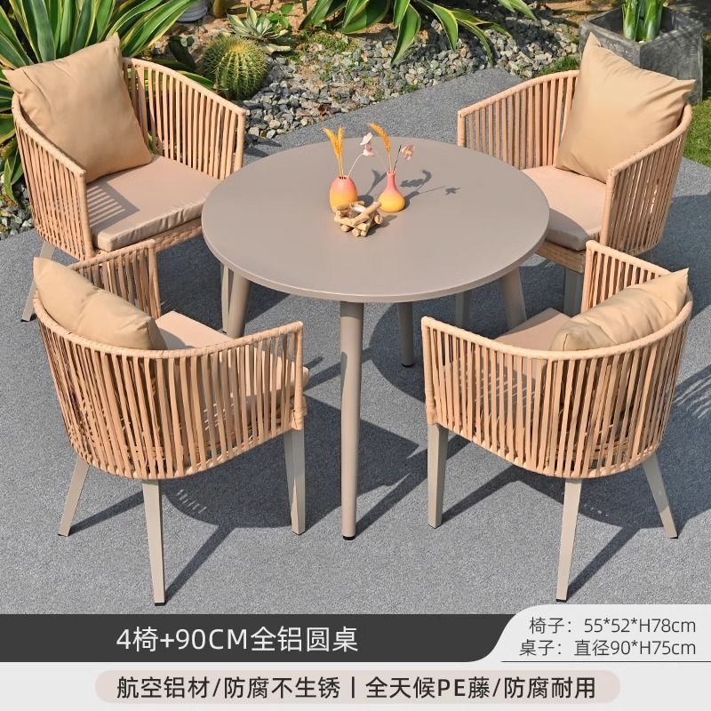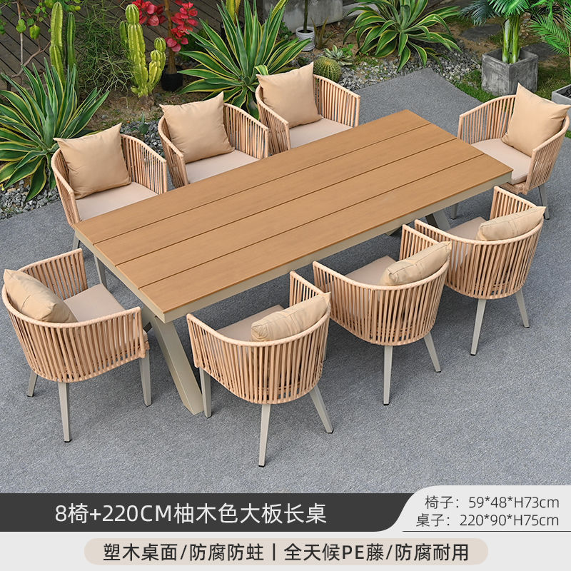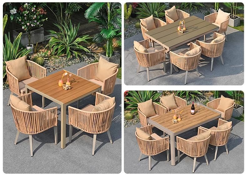 야외 안뜰 테이블과 의자, 야외 레저 플라스틱 목재 식탁과 의자 조합, 야외 발코니, 마당 정원 등나무 의자 직접 판매