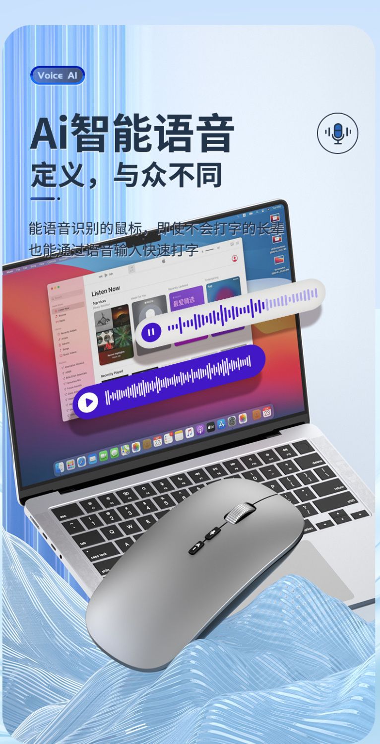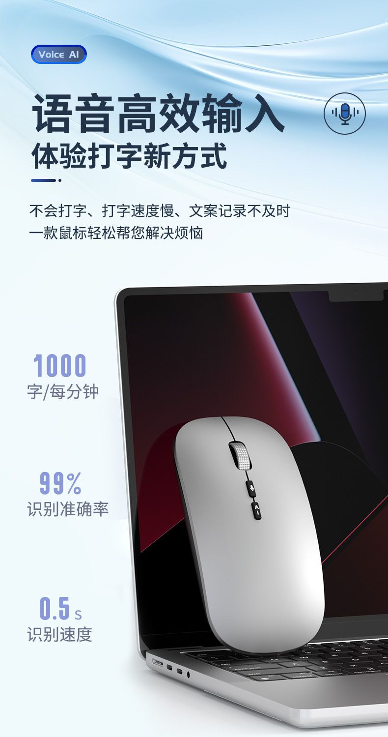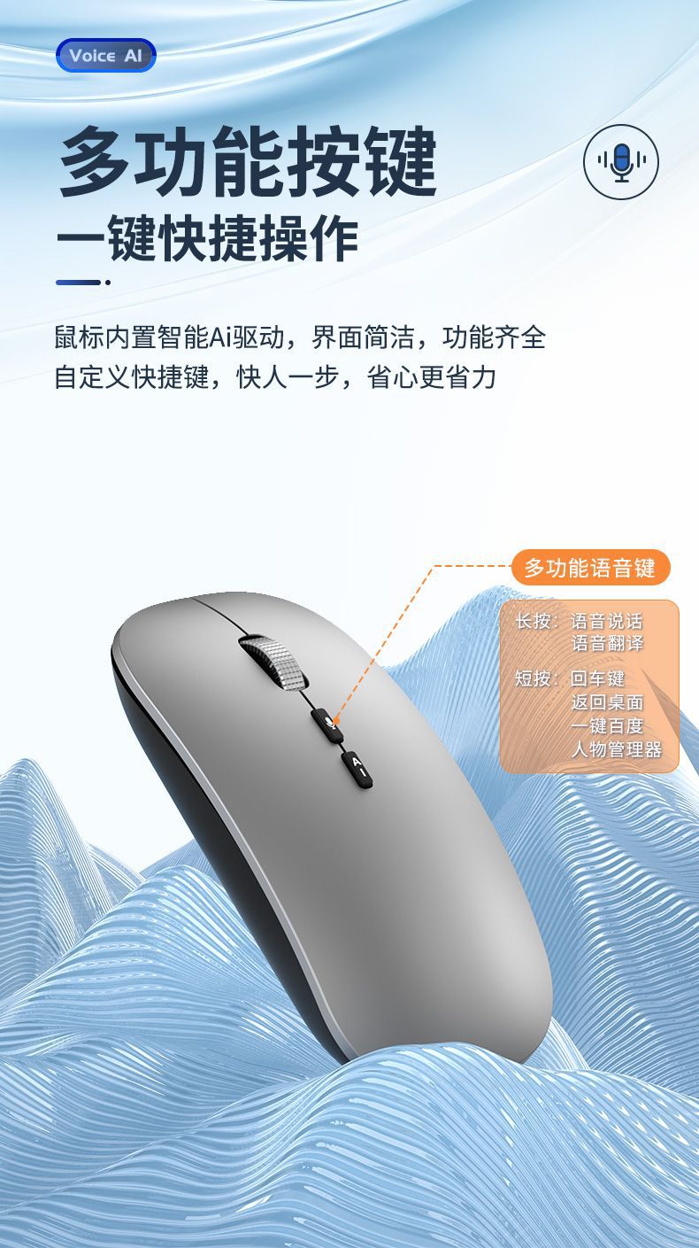 국제적으로 인기 있는 인공지능 AI 음성 마우스 무선 블루투스 음성 입력 및 번역 AI 마우스