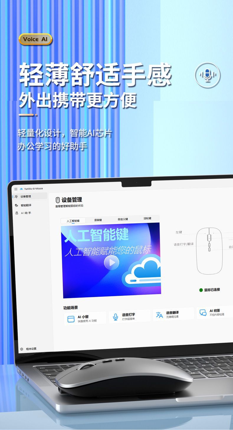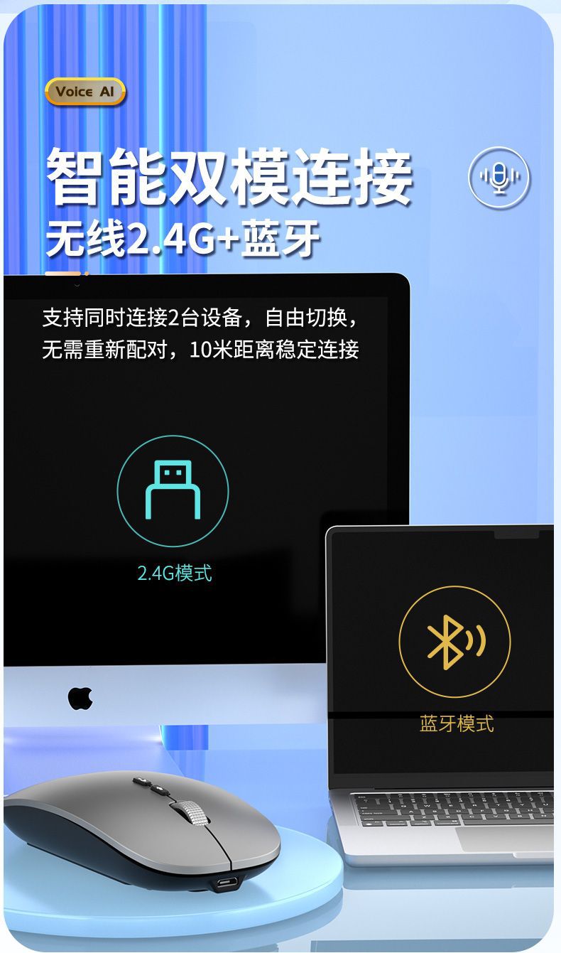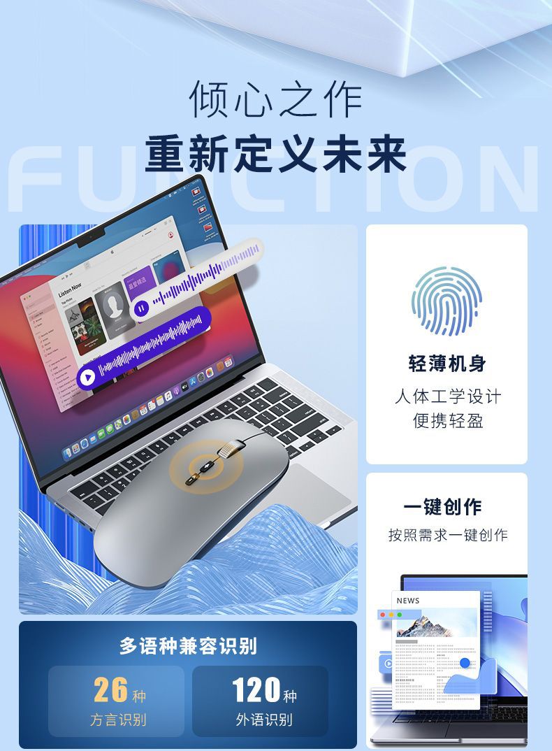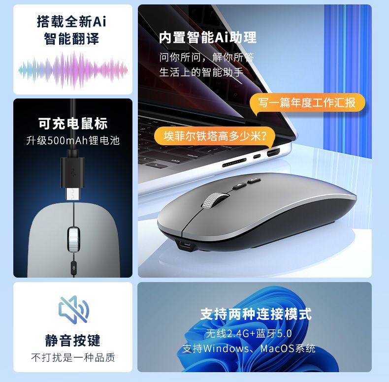 국제적으로 인기 있는 인공지능 AI 음성 마우스 무선 블루투스 음성 입력 및 번역 AI 마우스