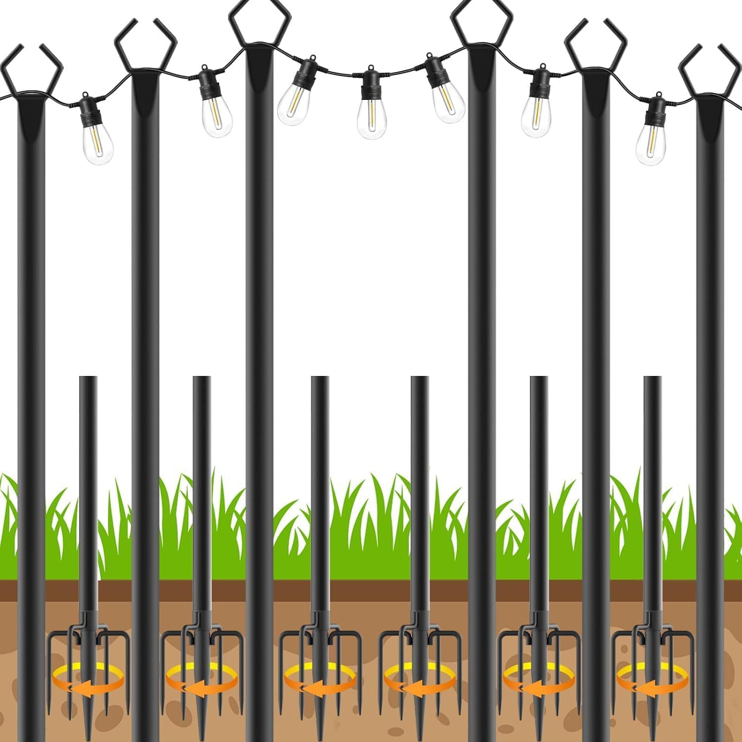 야외 램프 스탠드 지원 폴 램프 스트링 스탠드 안뜰 정원 발코니 그라운드 플러그 폴 조명 브래킷 축제 캠핑 램프 스트링 폴스토어 가기