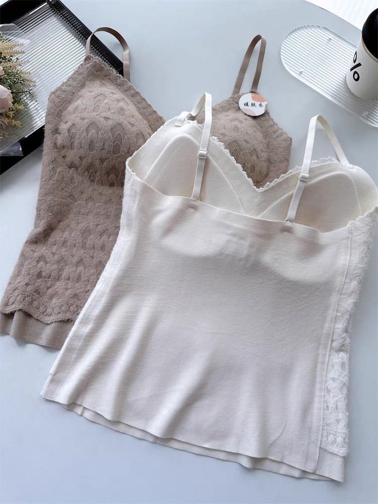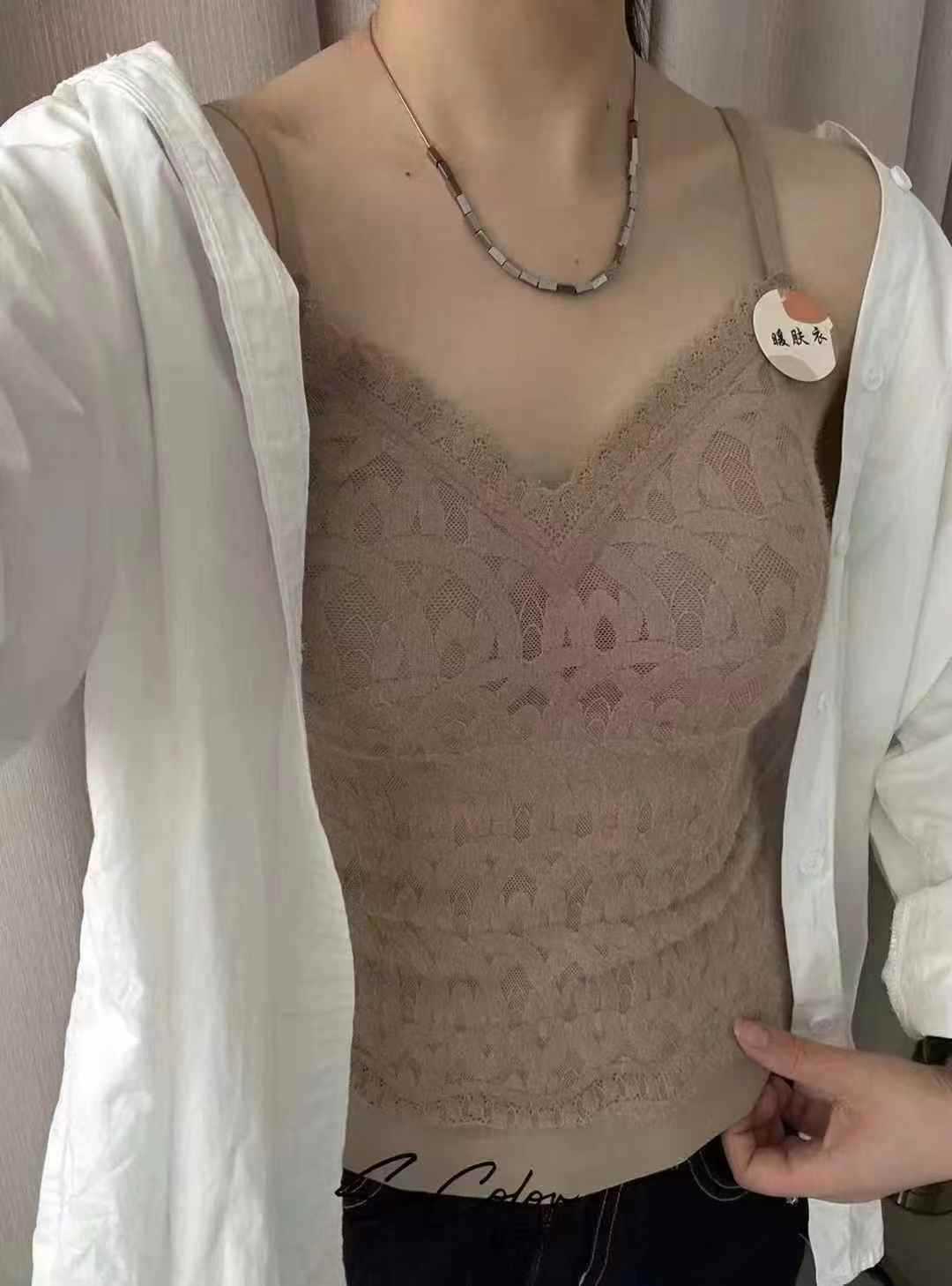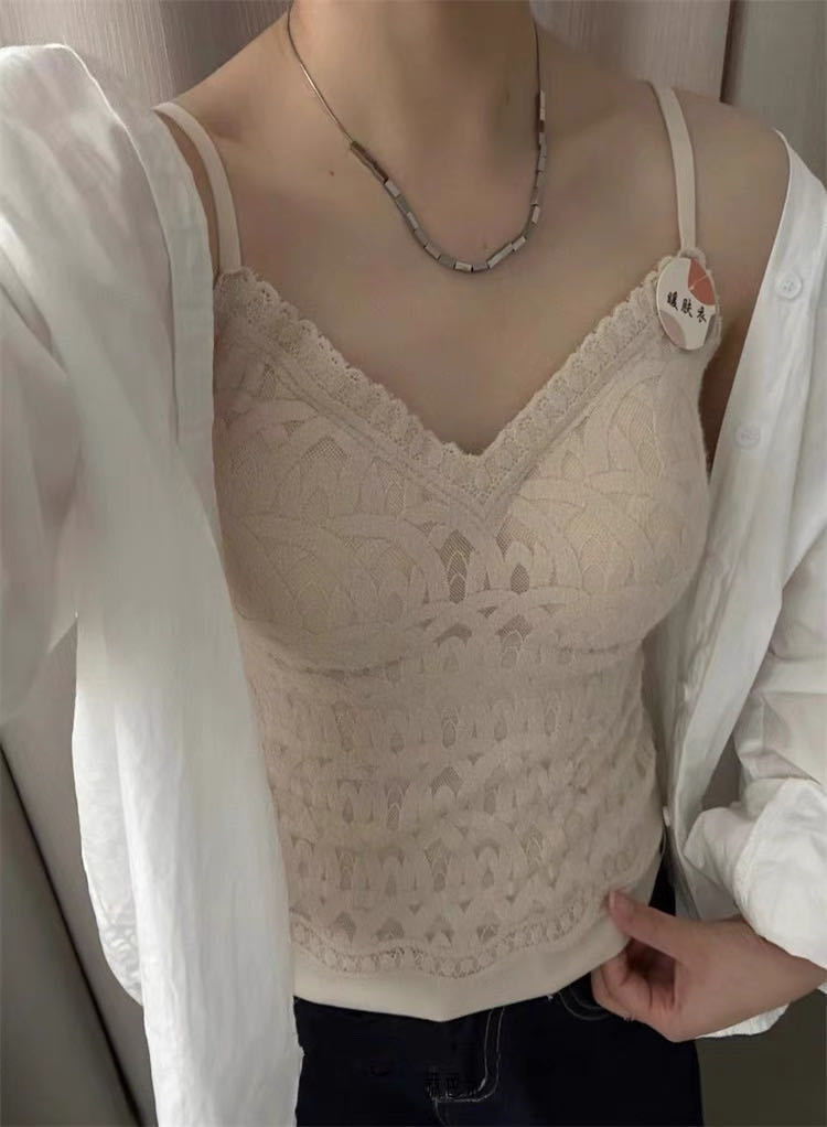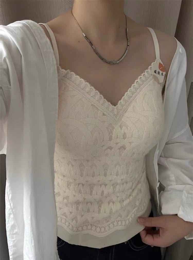 가슴 패드가 있는 여성용 봄 여름 섹시한 레이스 아이스 실크 캐미솔, 다재다능하고 패셔너블하며 편안한 베이스 레이어 조끼스토어 가기