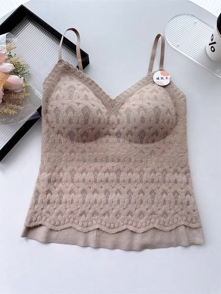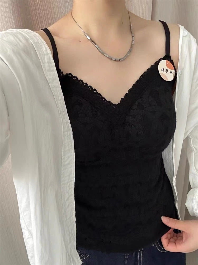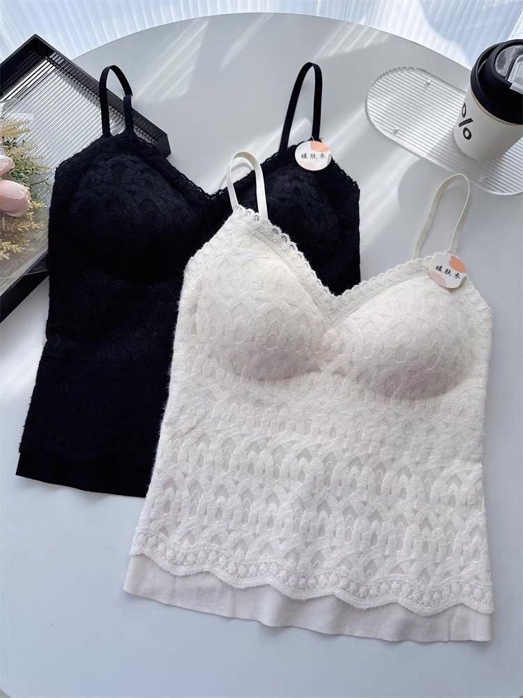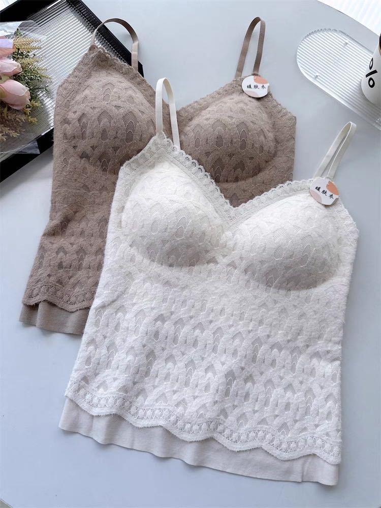 가슴 패드가 있는 여성용 봄 여름 섹시한 레이스 아이스 실크 캐미솔, 다재다능하고 패셔너블하며 편안한 베이스 레이어 조끼스토어 가기