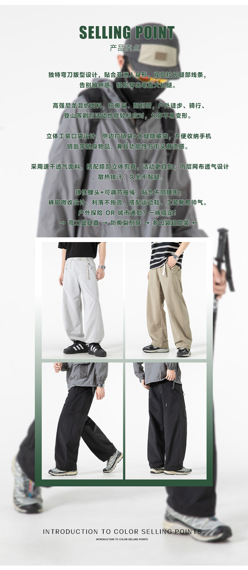 IZEXX 패션 브랜드 여름 미국 마체 바지 남자 야외 스포츠 등산 느슨한 멀티 포켓 오버볼