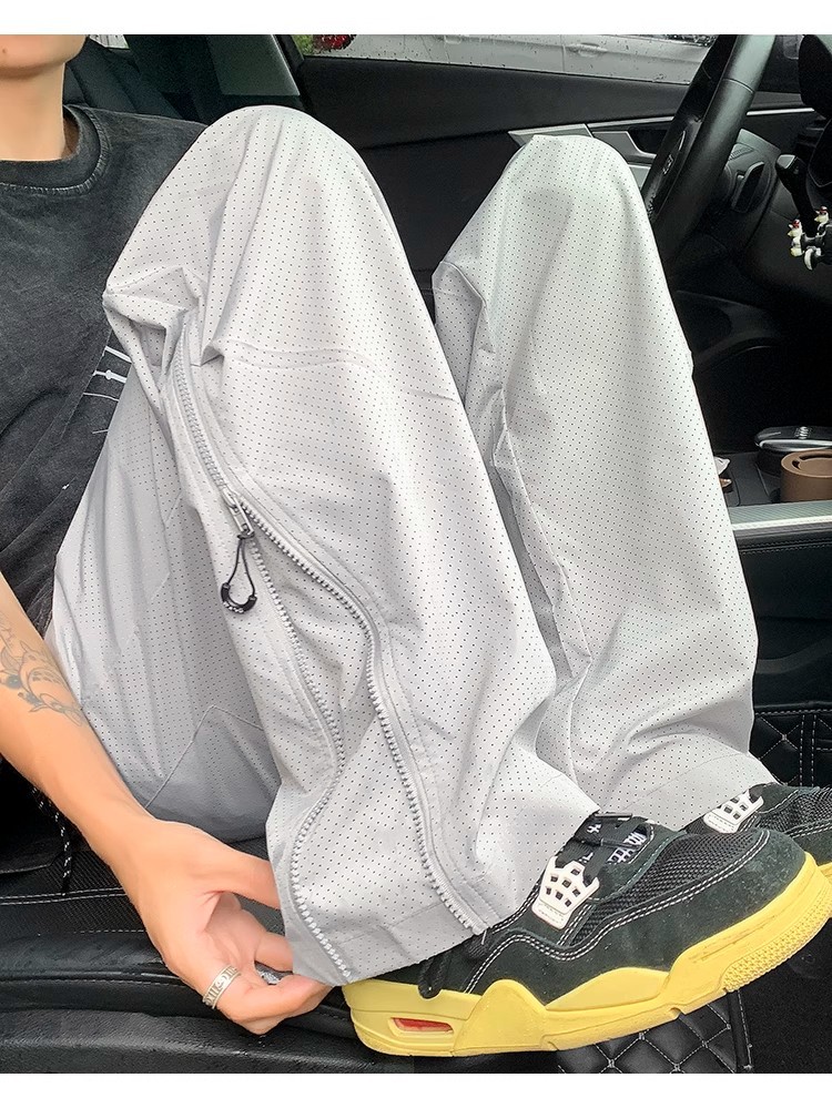 지퍼가 달린 바지, 속건성 남성용 아웃도어 팬츠, 여름 메쉬 통기성 아이스 실크 팬츠, 아메리칸 기능성 등산 스포츠 팬츠