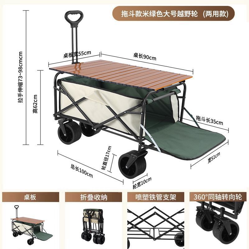 • 캠퍼밴 + 접이식 테이블 - 대형 트레일러 탱크 휠(카키색)