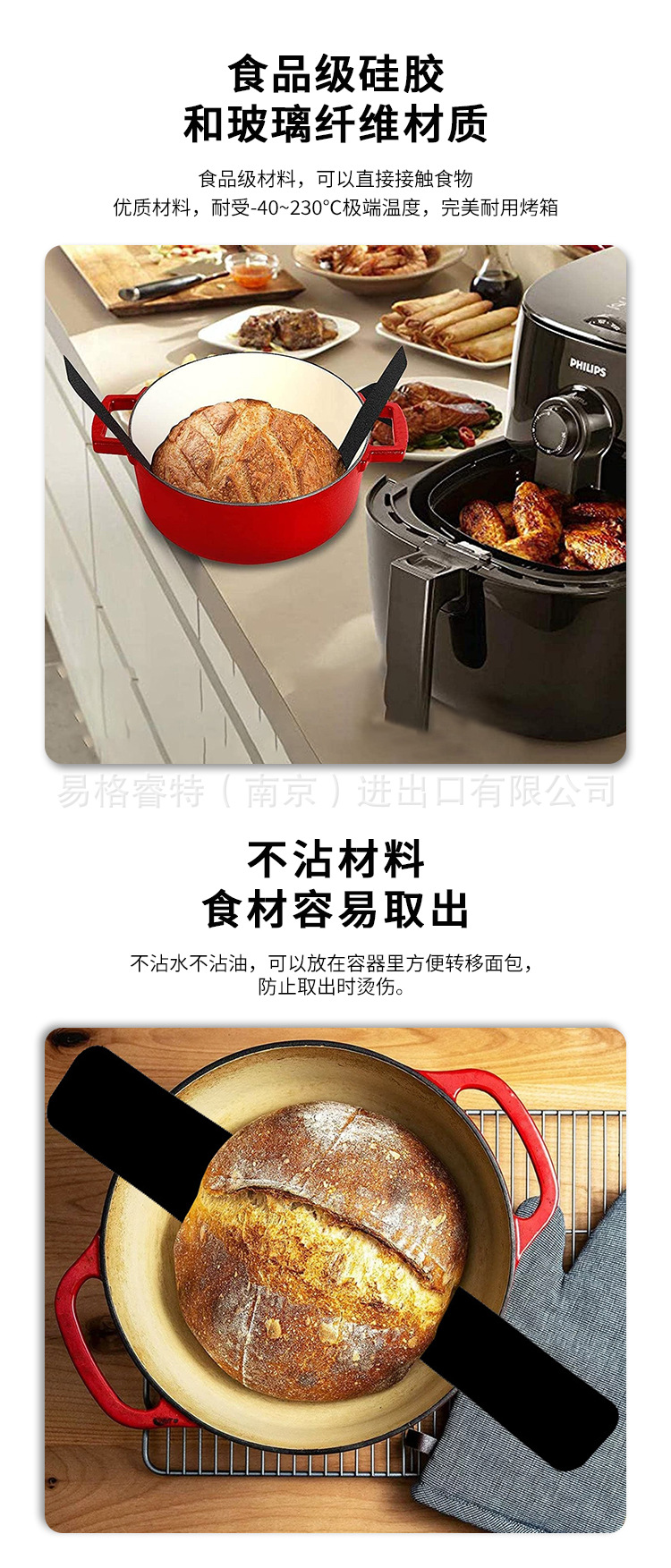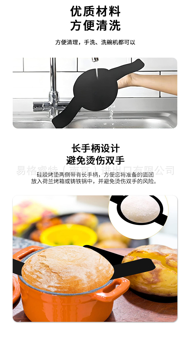 식품 등급 네덜란드 오븐 매트 빵 반죽 전송 베이킹 매트 긴 손잡이 슬링 실리콘 매트 베이킹 팬 매트