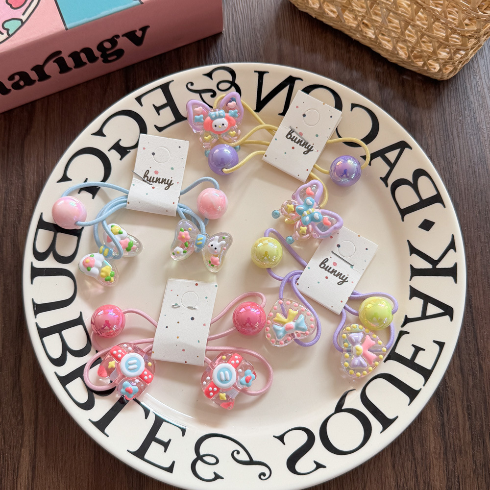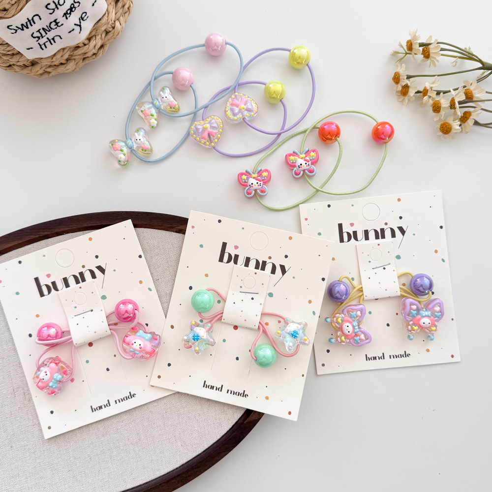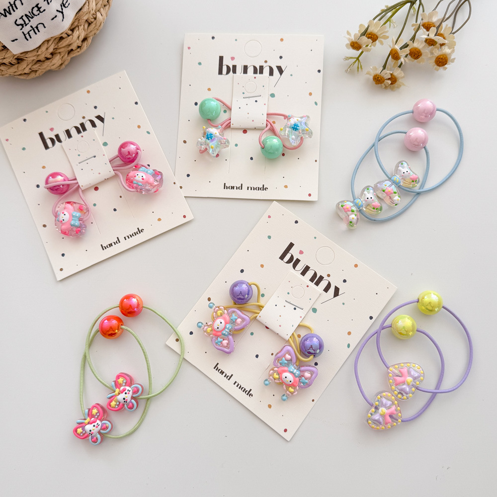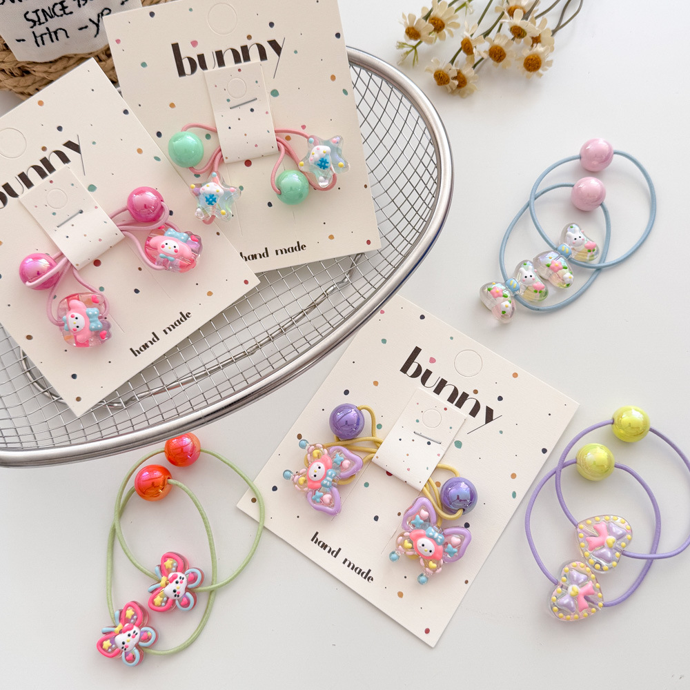 아크릴 어린이 머리 밧줄 높은 탄성 만화 손으로 그린 구슬 고무 끈 머리 반지 작은 소녀 공 머리 넥타이 헤어 액세서리