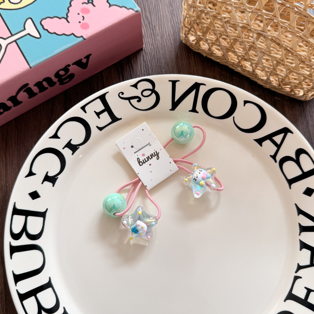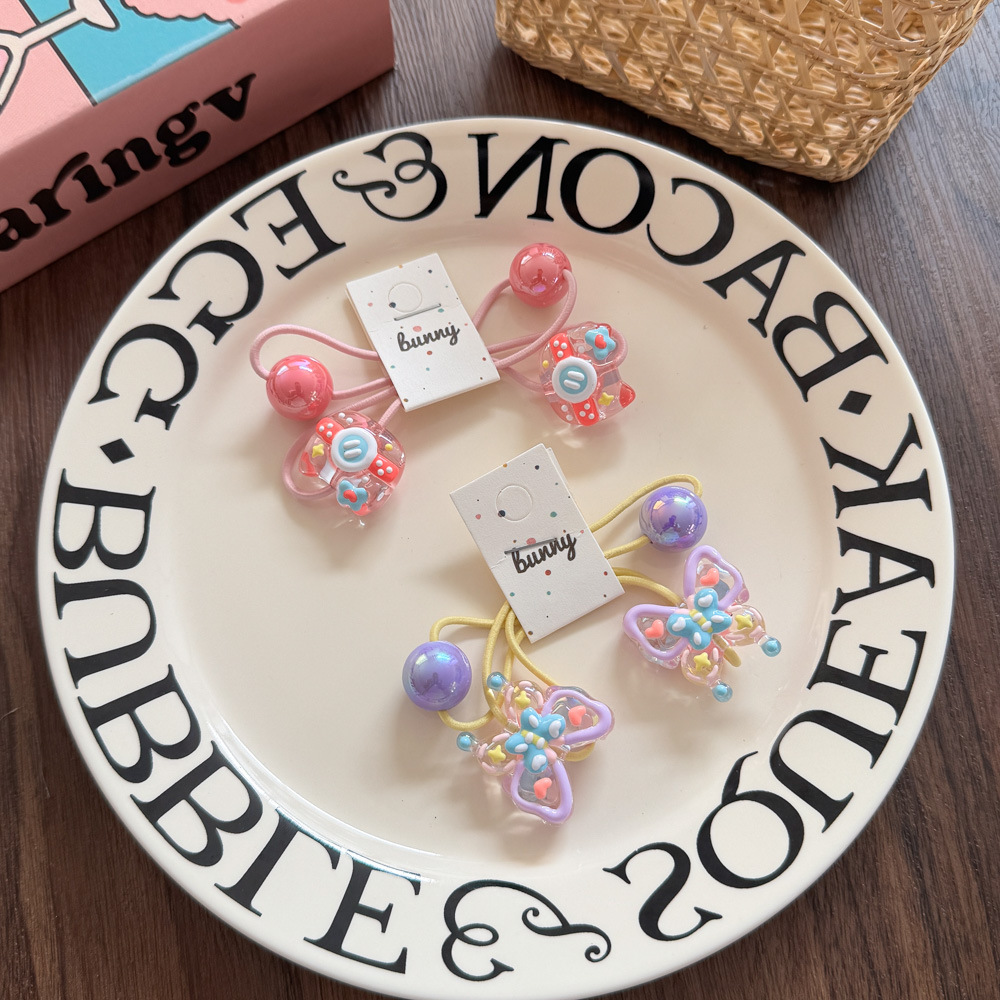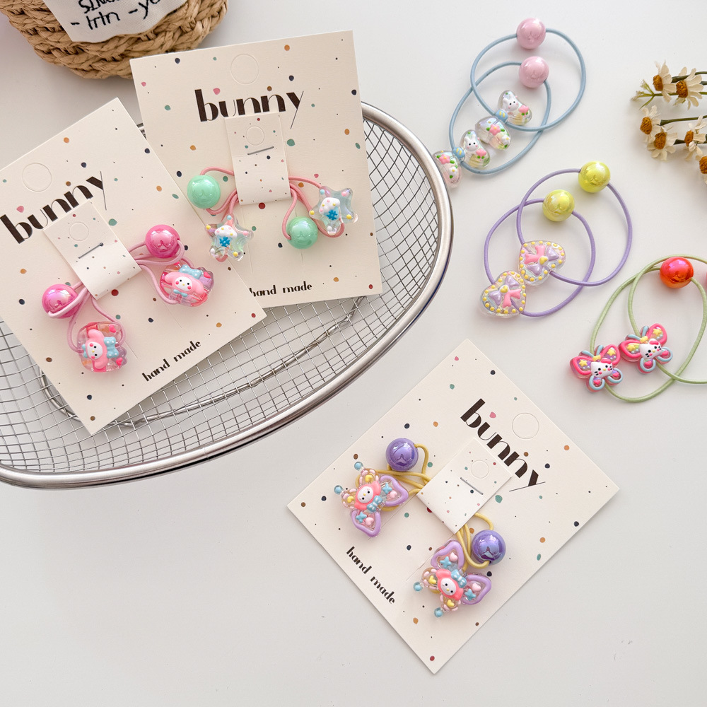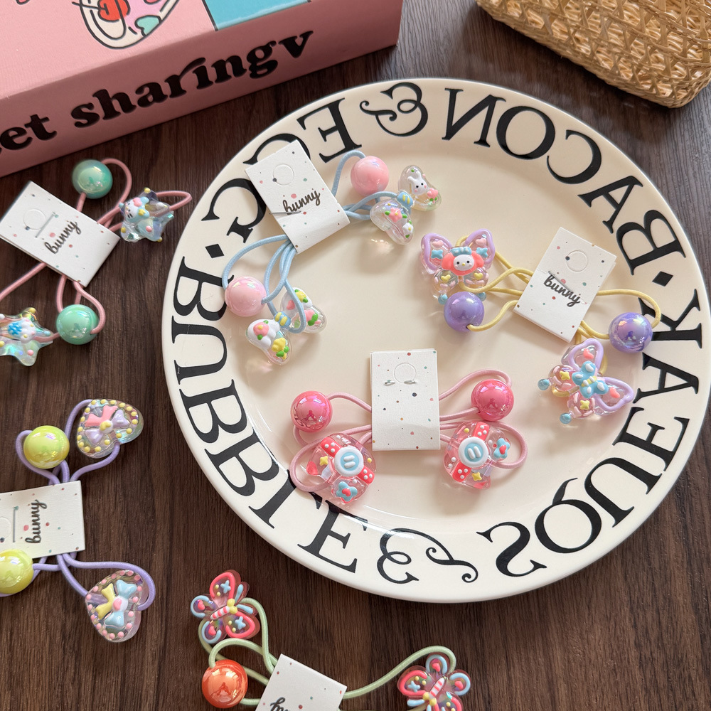아크릴 어린이 머리 밧줄 높은 탄성 만화 손으로 그린 구슬 고무 끈 머리 반지 작은 소녀 공 머리 넥타이 헤어 액세서리