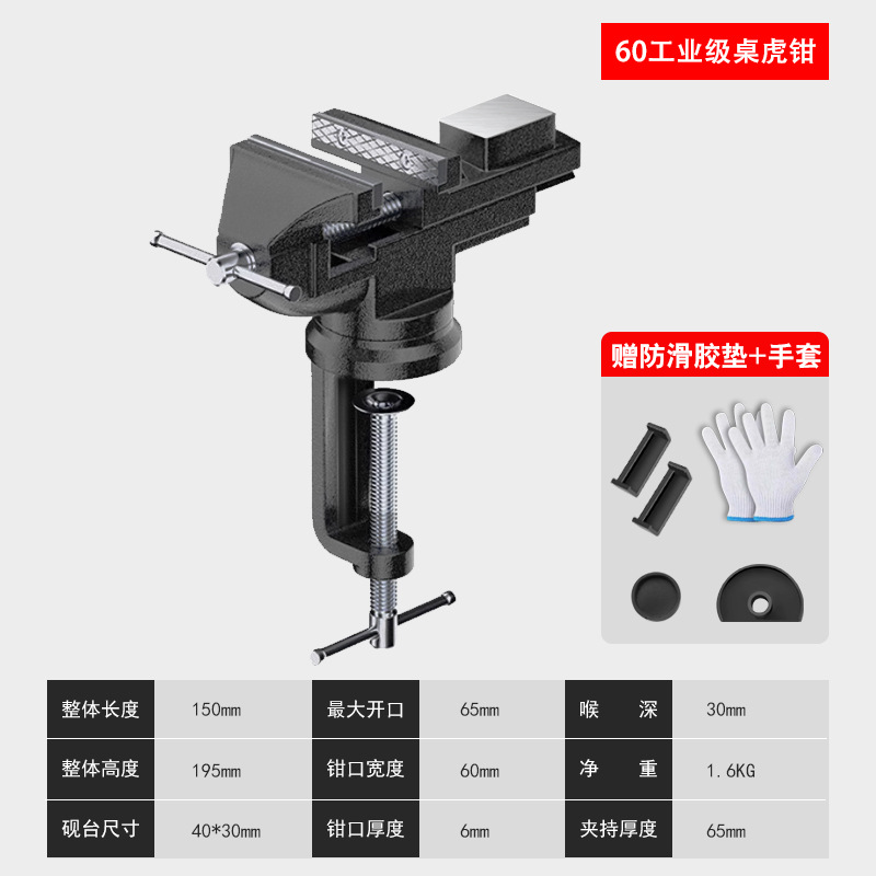 • 유형 60 - 업그레이드된 산업용 등급 주강 테이블 바이스 [미끄럼 방지 패드 + 장갑 포함] 회전 가능