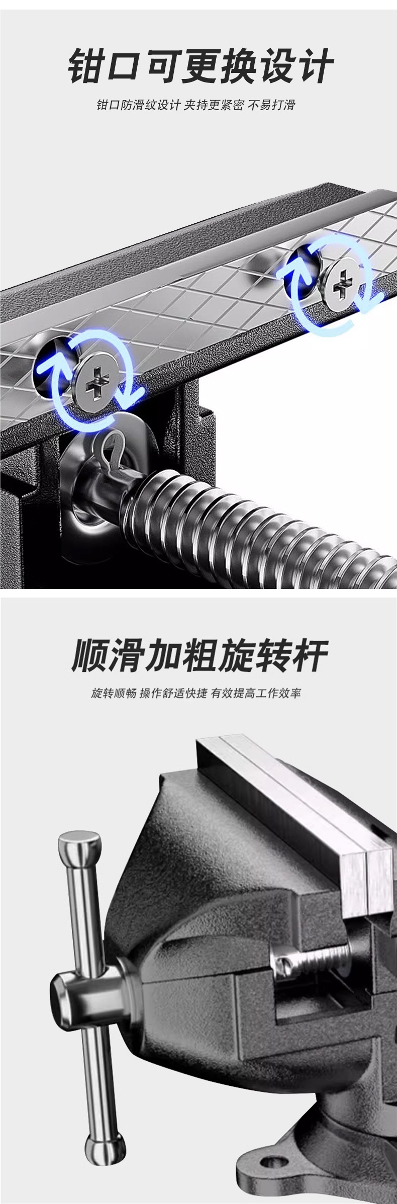 • 유형 60 - 산업용 주강 벤치 바이스 [미끄럼 방지 패드 + 장갑 포함] 회전 가능