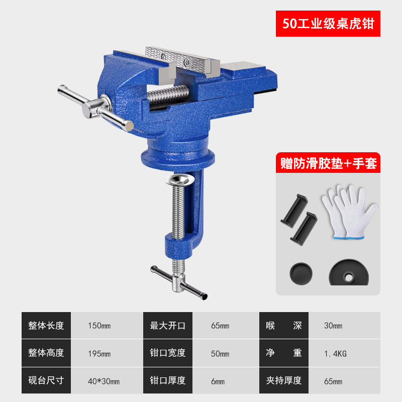 • 유형 50 - 산업용 주강 테이블 바이스 [미끄럼 방지 패드 + 장갑 포함] 회전 가능