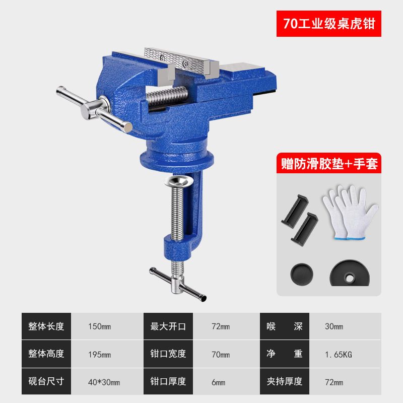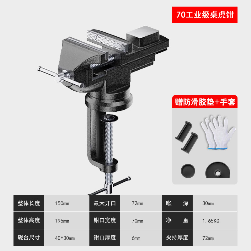• 유형 70 - 업그레이드된 산업용 등급 주강 테이블 바이스 [미끄럼 방지 패드 + 장갑 포함] 회전 가능