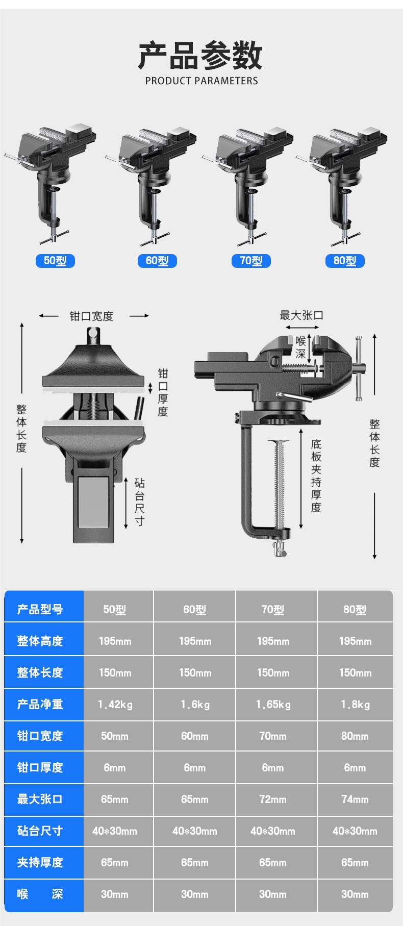 • 유형 50-소형 주강 벤치 바이스