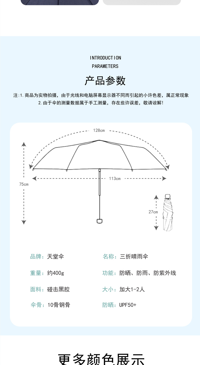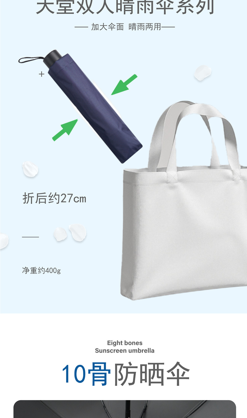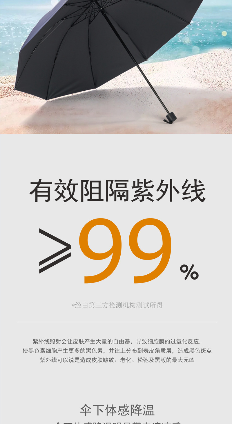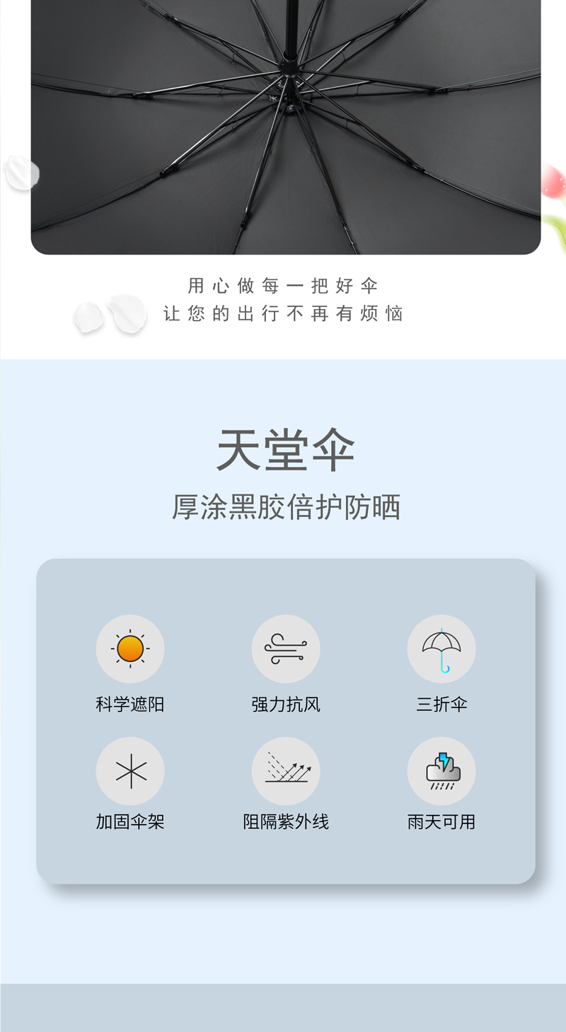 파라다이스 우산 38081E 강화 10 뼈 검은 접착제 태양 보호 및 비 보호 이중 목적 3 배 우산 사업 단순 인쇄 가능스토어 가기
