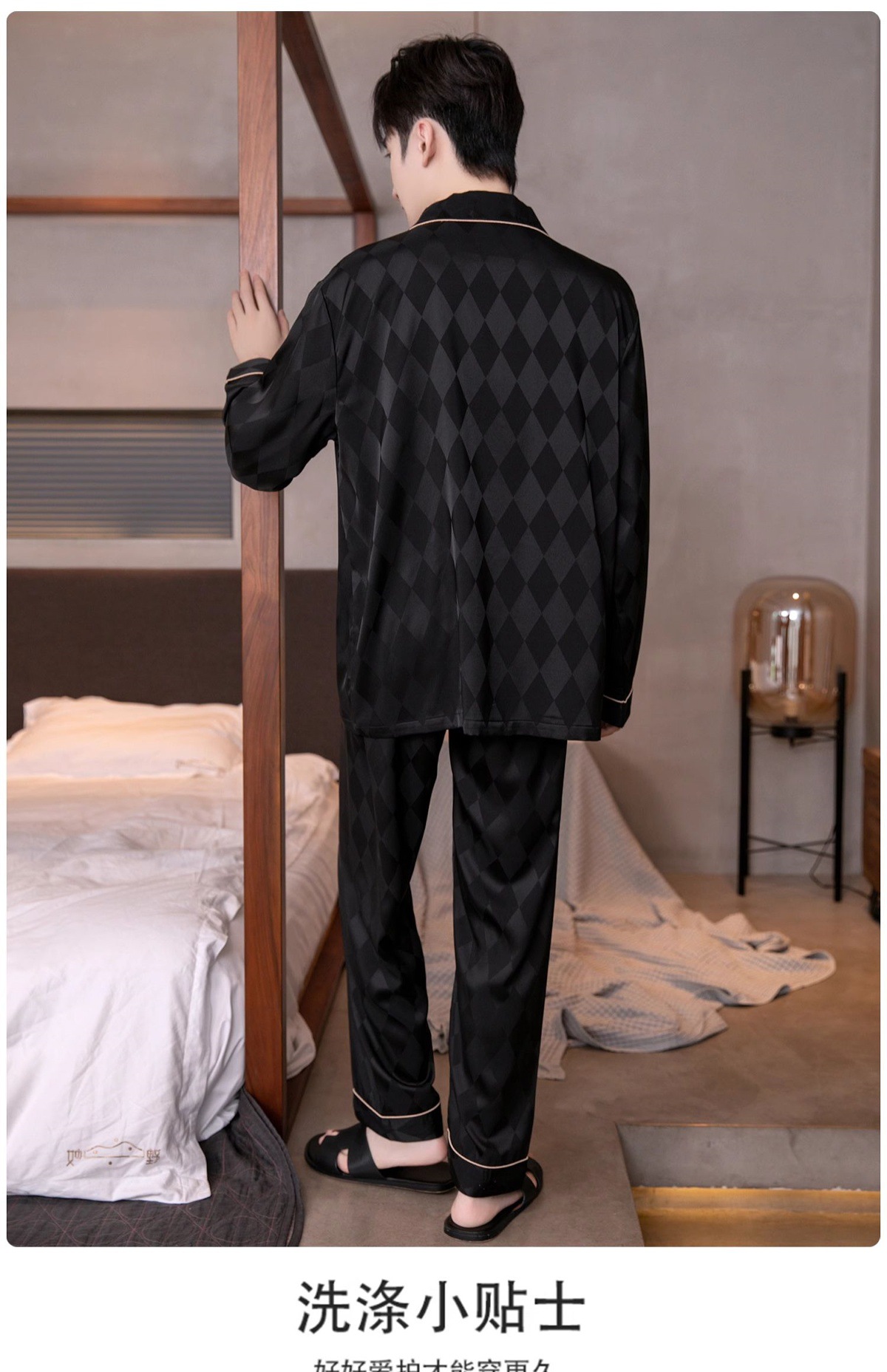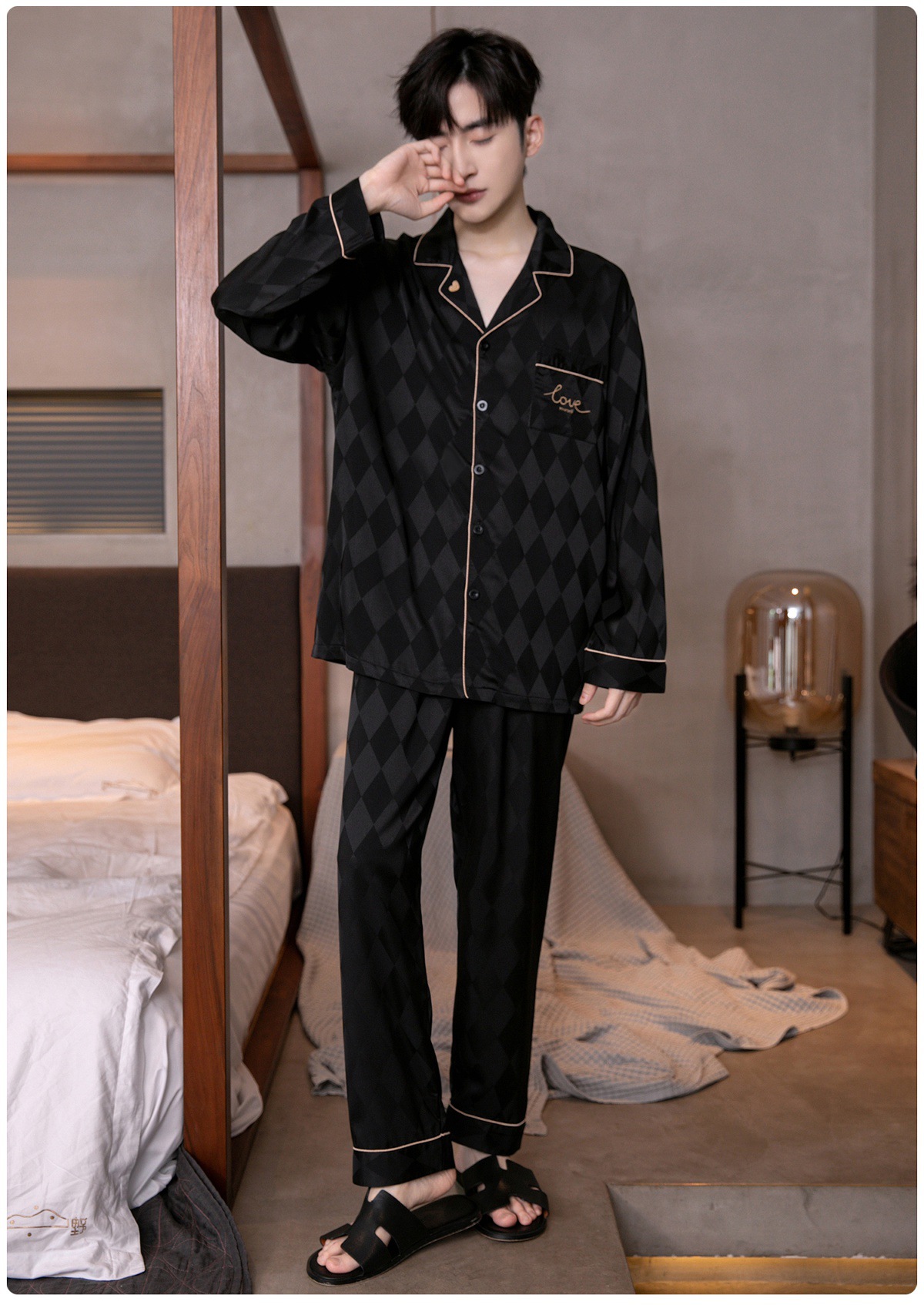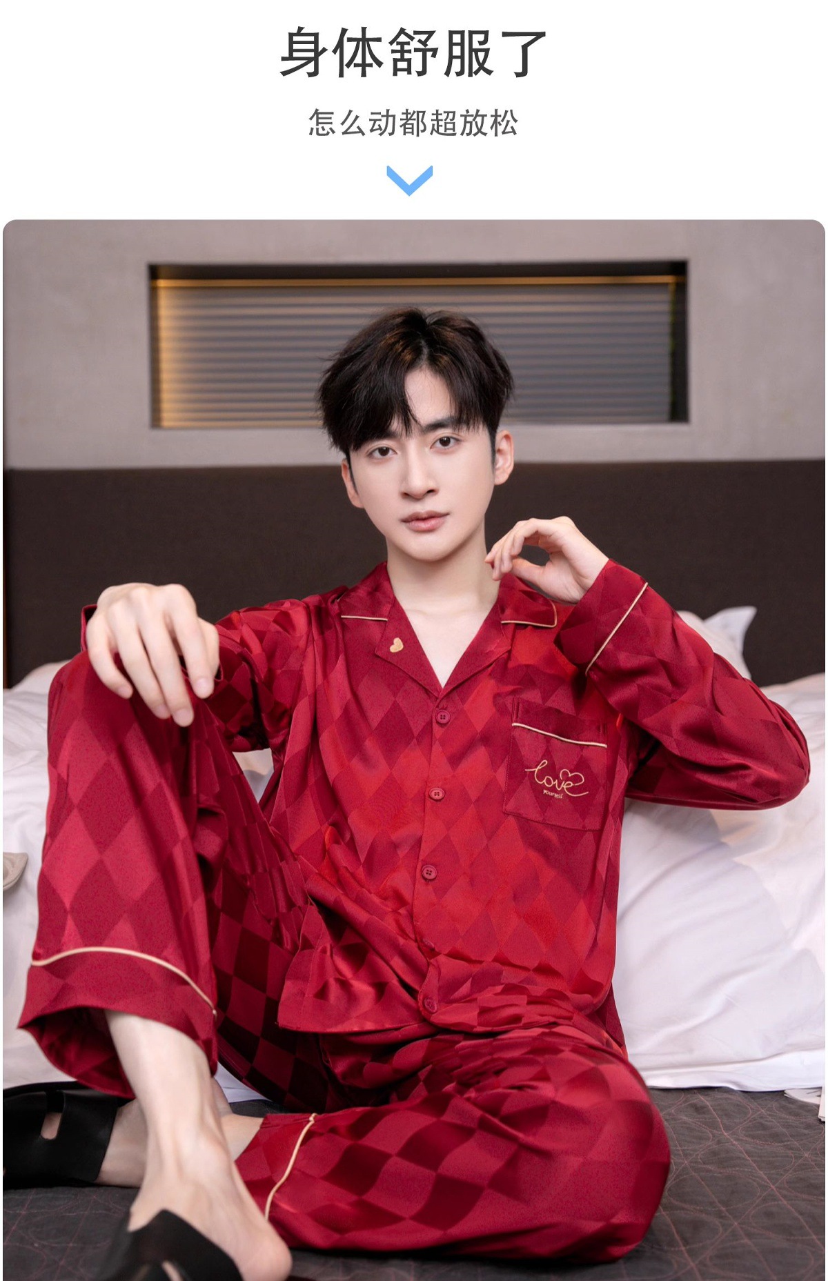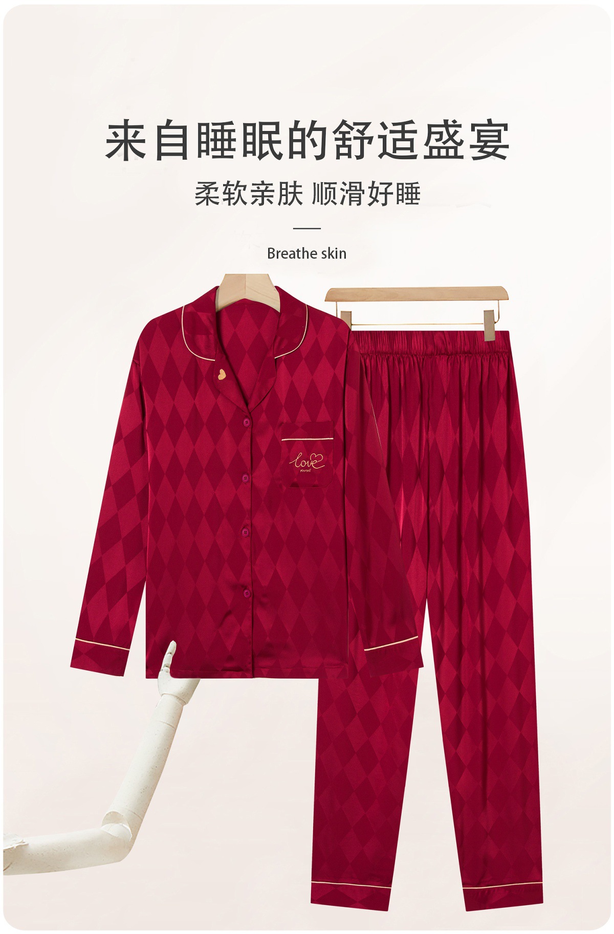 아이스 실크 잠옷 남성용 얇은 긴 소매 시뮬레이션 실크 동물 년 레드 플러스 사이즈 홈웨어 세트스토어 가기