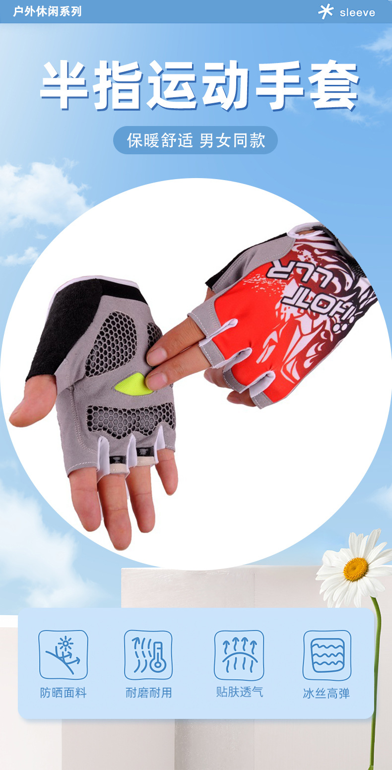 사이클링 반 손가락 장갑 부모-자식 얼음 실크 통기성 야외 등산 미끄럼 방지 피트니스 자전거 사이클링 장갑