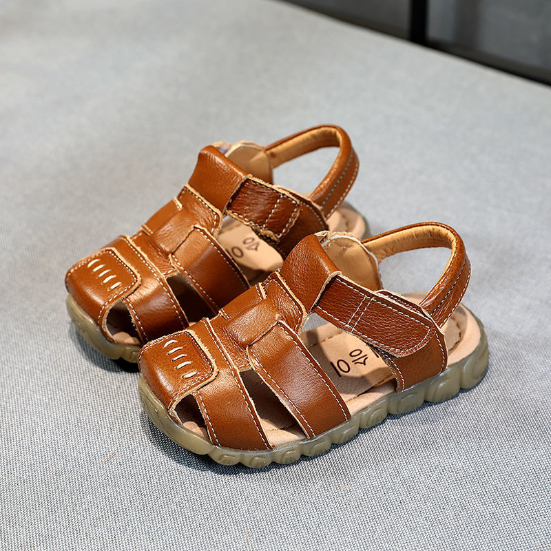 남아용 가죽 샌들, 여름 중대형 어린이용 부드러운 밑창 미끄럼 방지 어린 소년용 해변 신발, 어린이용 아기 신발, 유치원스토어 가기