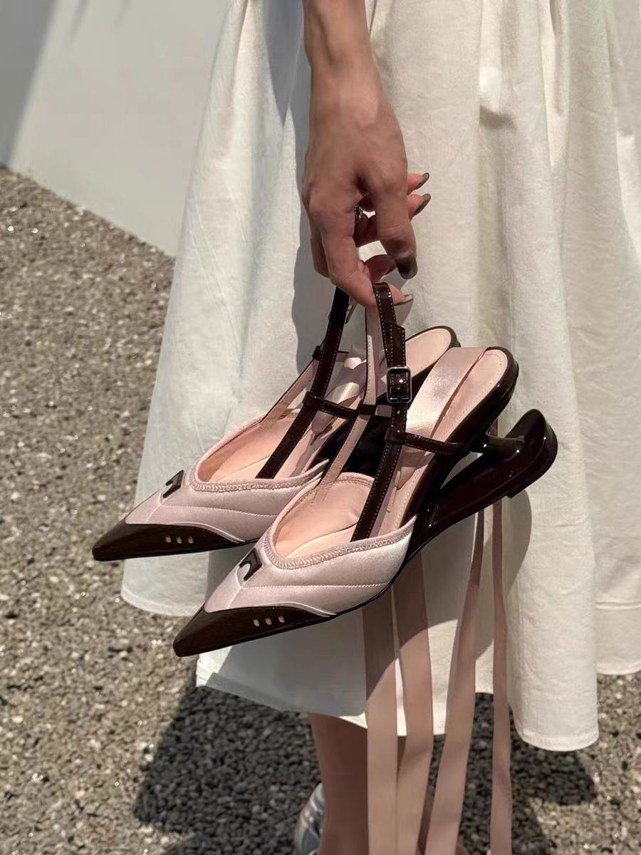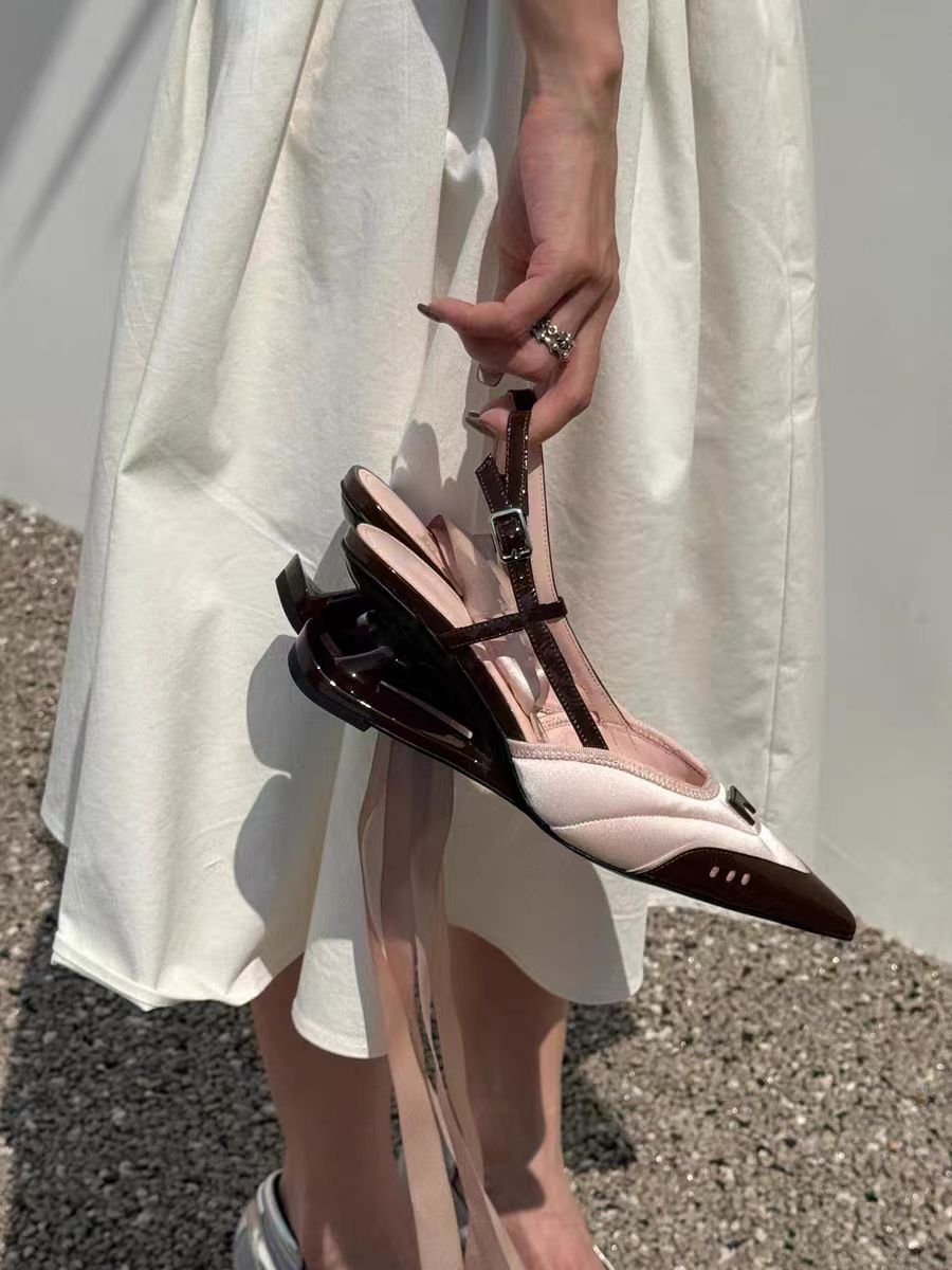 [재고] 틈새 디자인 특수 모양의 뒤꿈치 발레 스타일 스트랩 하이힐 여성용 새 얕은 입 포인팅 우아한 샌들