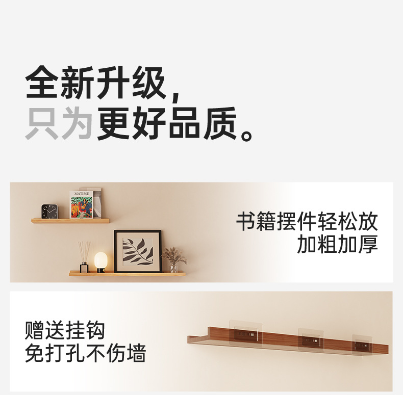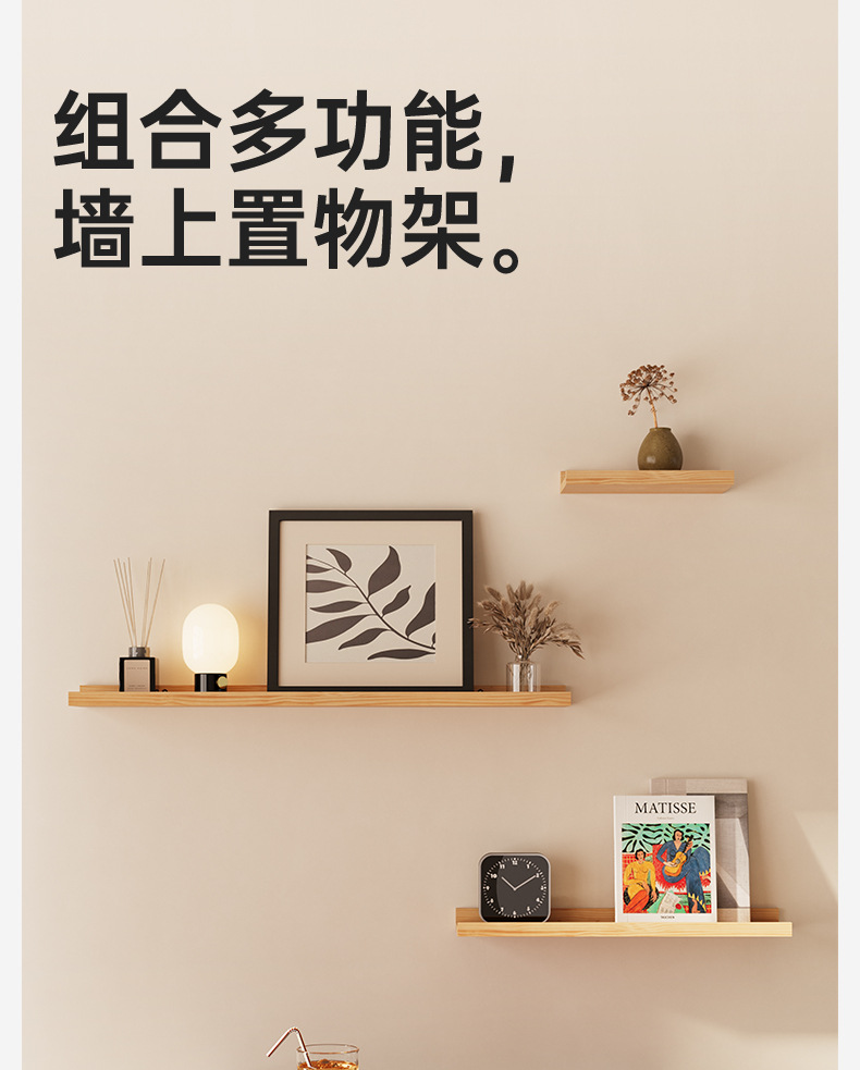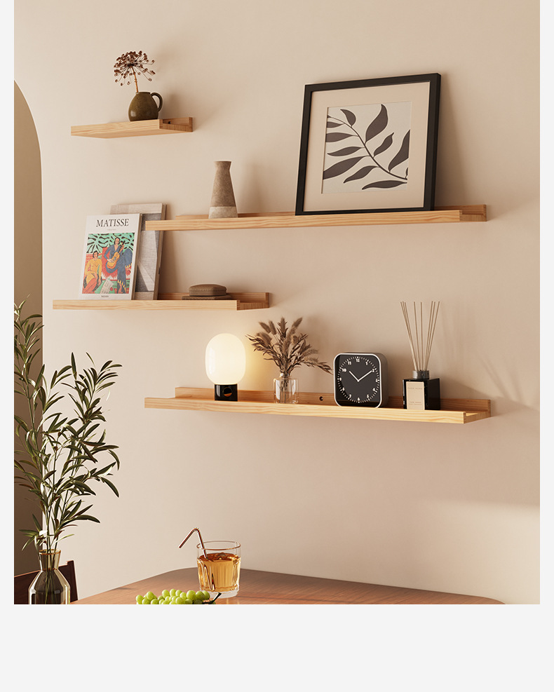 단단한 나무 벽 저장 랙 한 단어 파티션 펀치없는 벽 걸이 거실 벽 책장 다기능 보관 선반