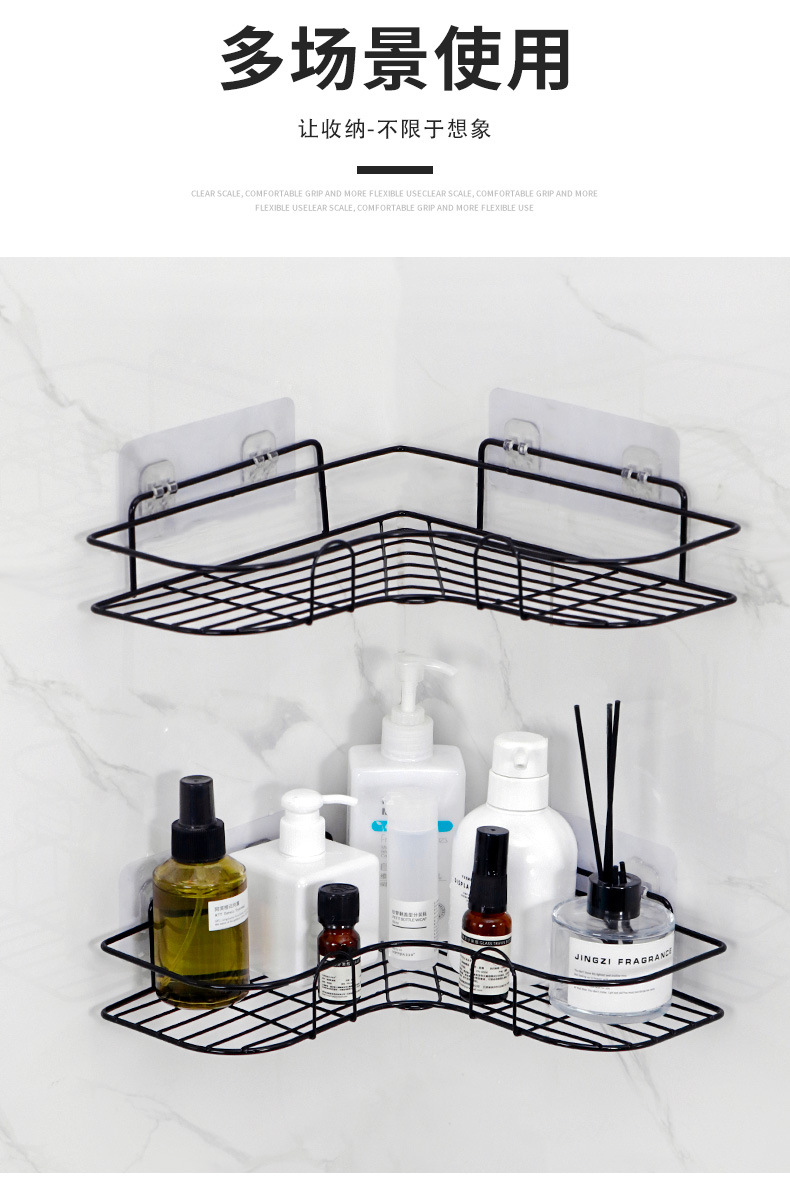 욕실 선반, 구멍이 없는 욕실 주방 정리 용품, 직사각형 벽 삼각대, 철제 다기능스토어 가기