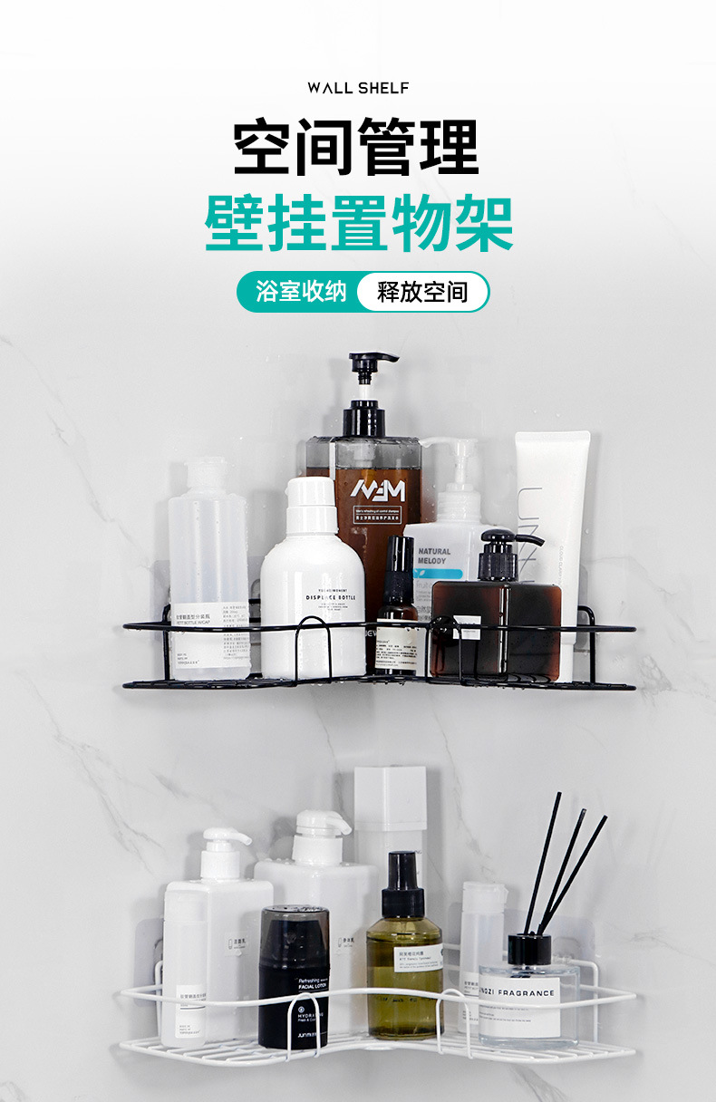 욕실 선반, 구멍이 없는 욕실 주방 정리 용품, 직사각형 벽 삼각대, 철제 다기능