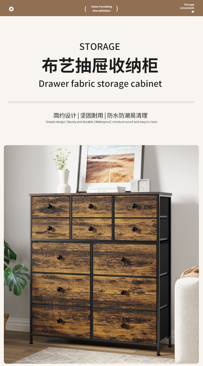 맞춤형 방진 및 방습 옷장 칸막이 상자 북유럽 스타일 서랍형 패브릭 수납 캐비닛 거실 소파 수납 사이드 테이블