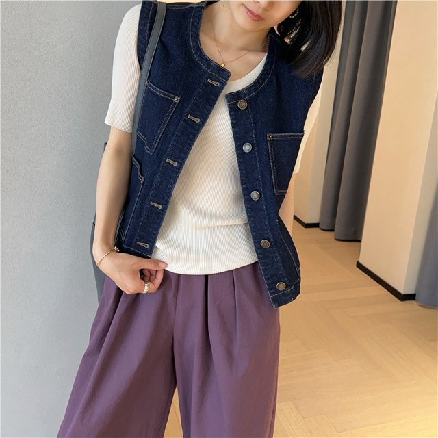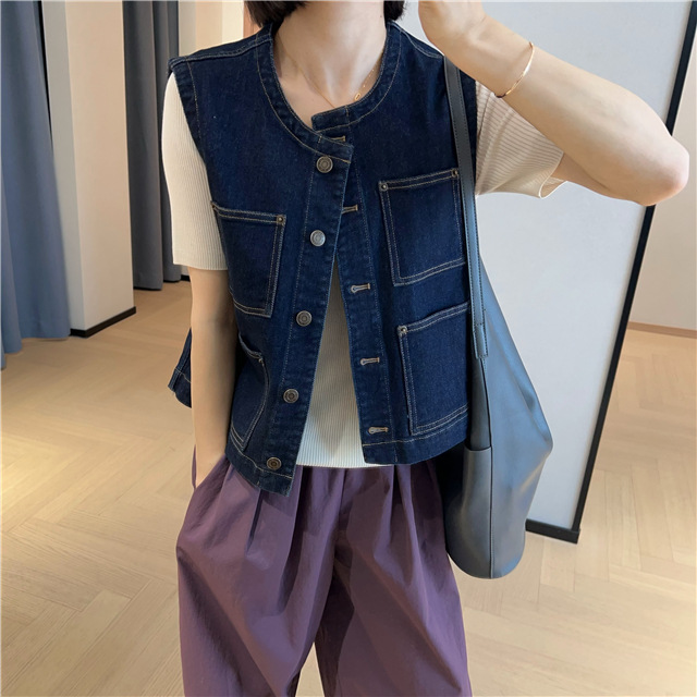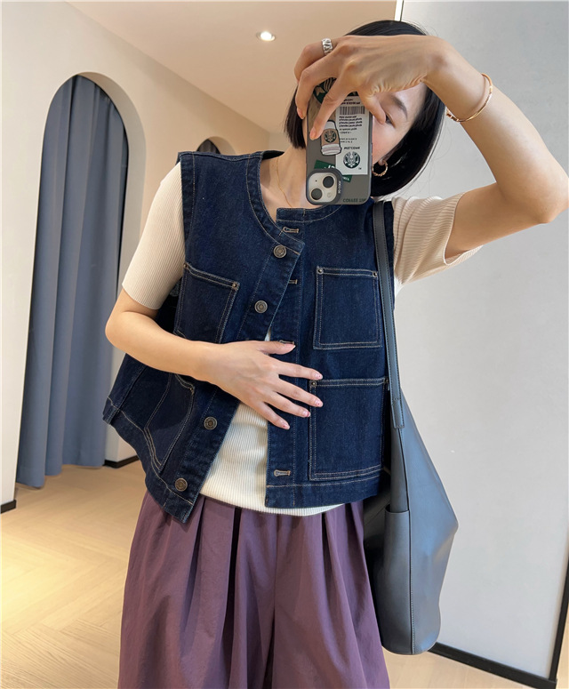 2025 새로운 빈티지 데님 양복 조끼가 다재다능한 민소매 조끼 코트 디자인 세련된 슬림 탑 여성