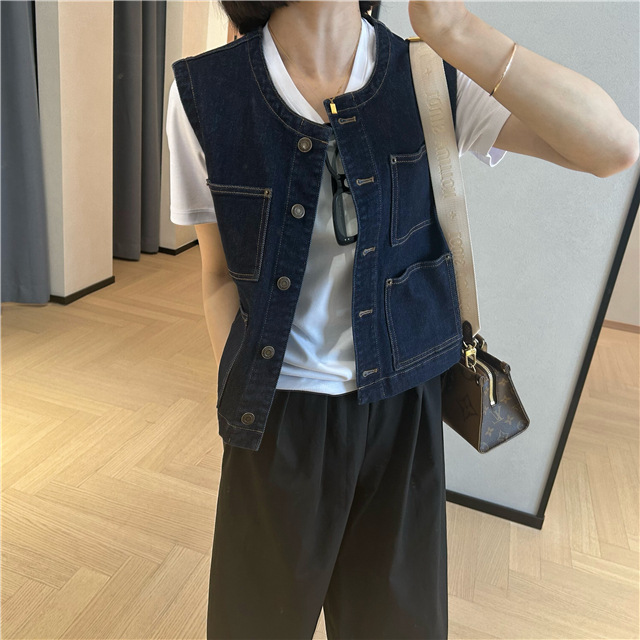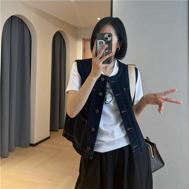 2025 새로운 빈티지 데님 양복 조끼가 다재다능한 민소매 조끼 코트 디자인 세련된 슬림 탑 여성스토어 가기