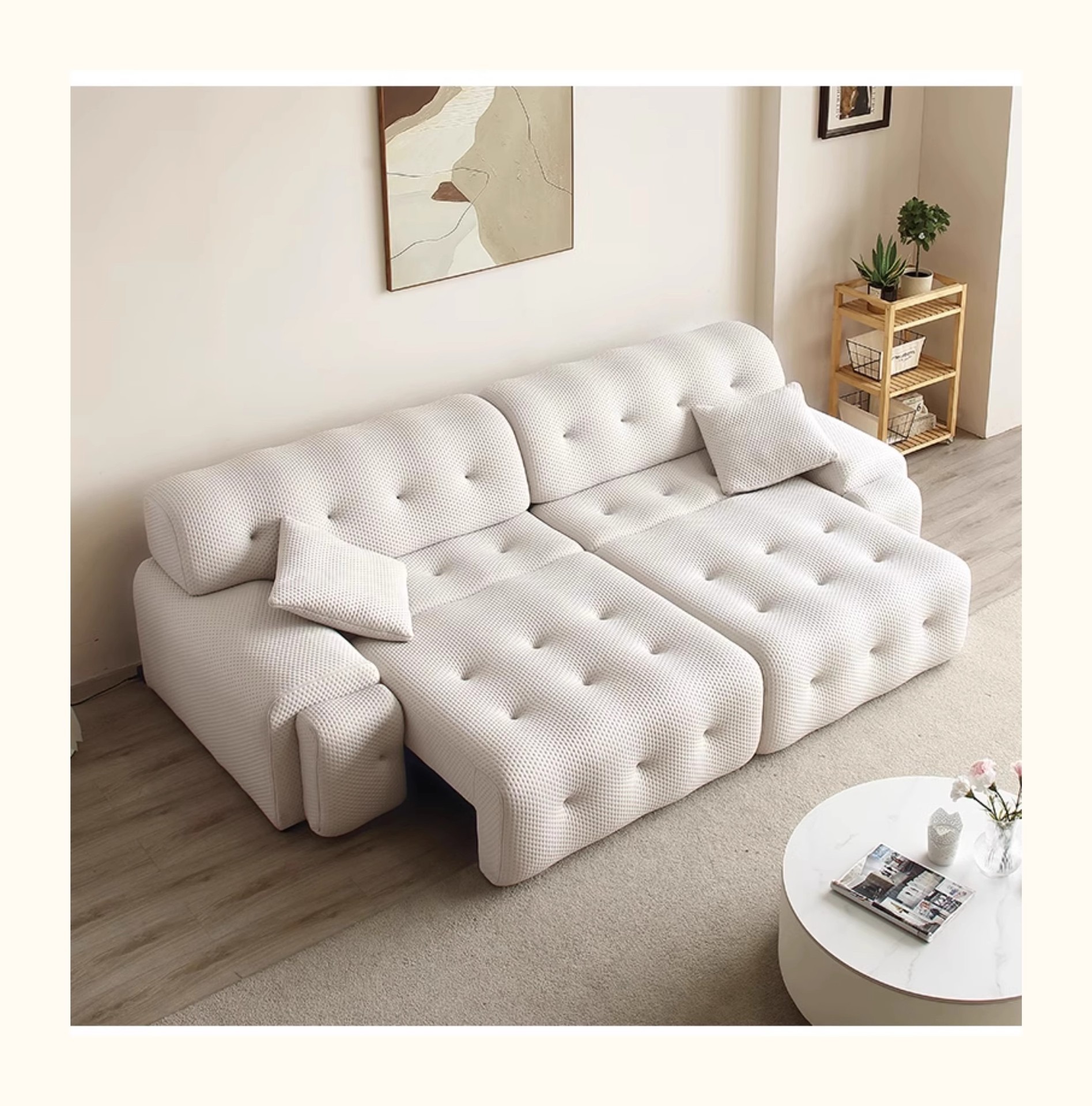 Rochburg 가죽 크림 스타일 미니멀리스트 거실 크기 이중 목적 직선 개폐식 다기능 전기 소파 침대