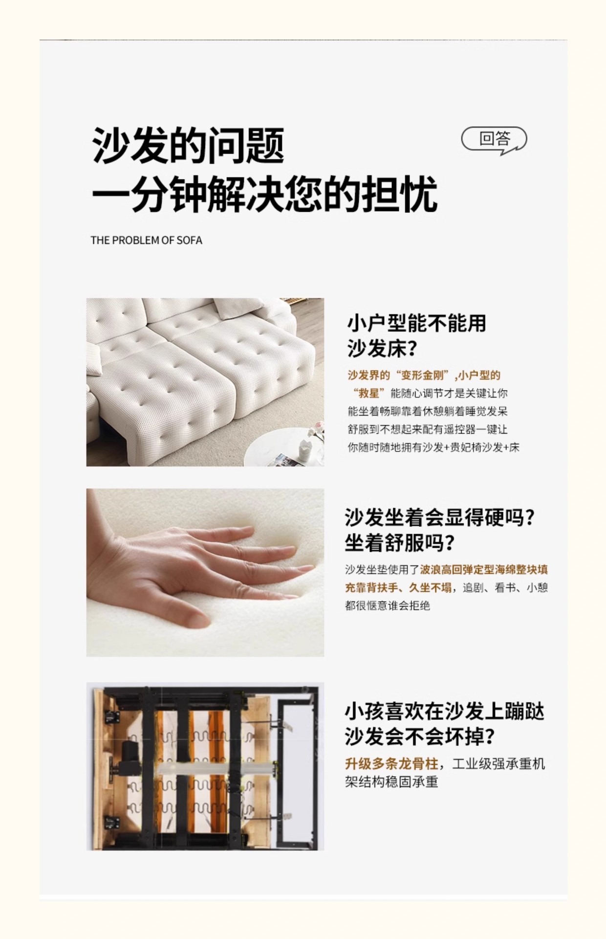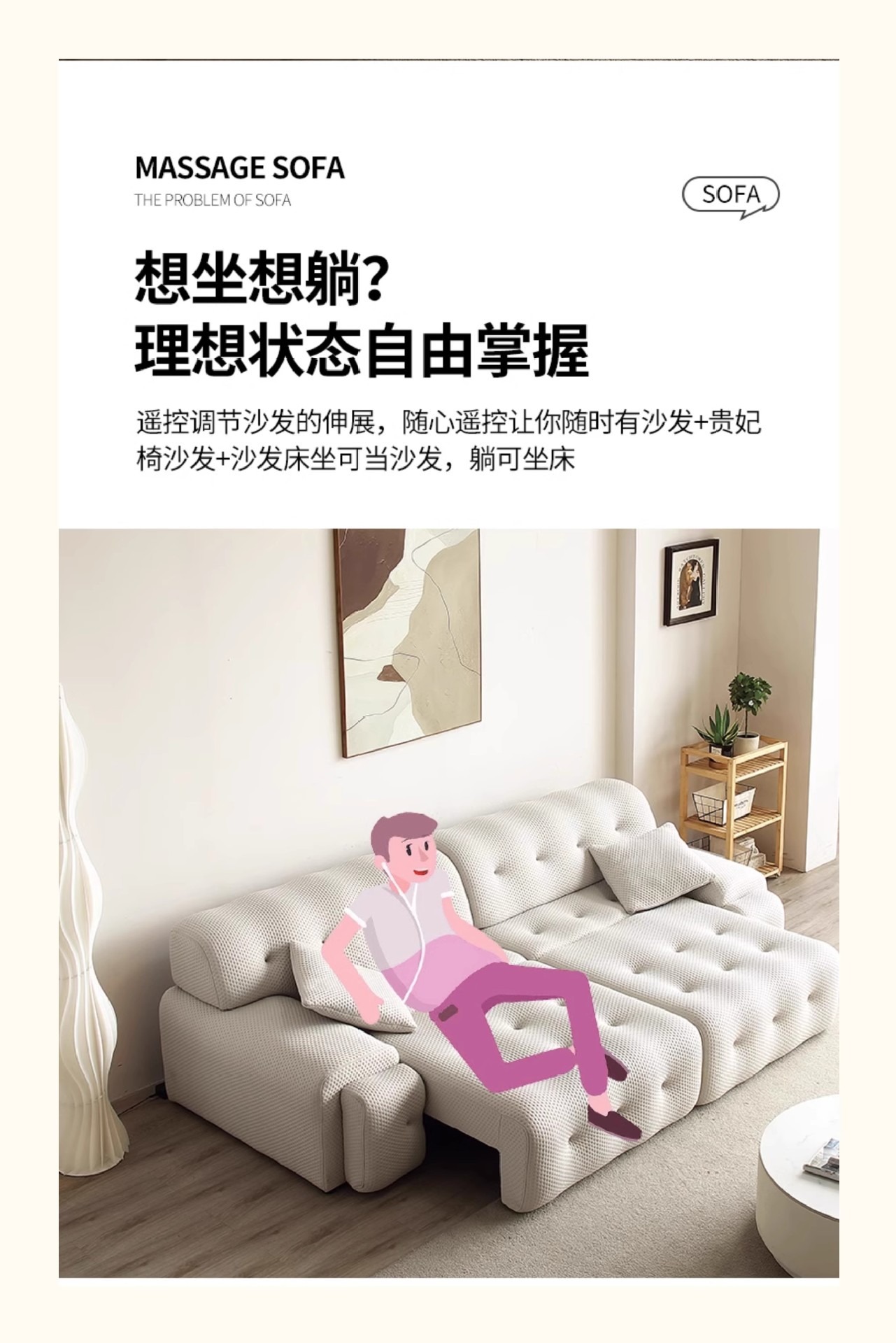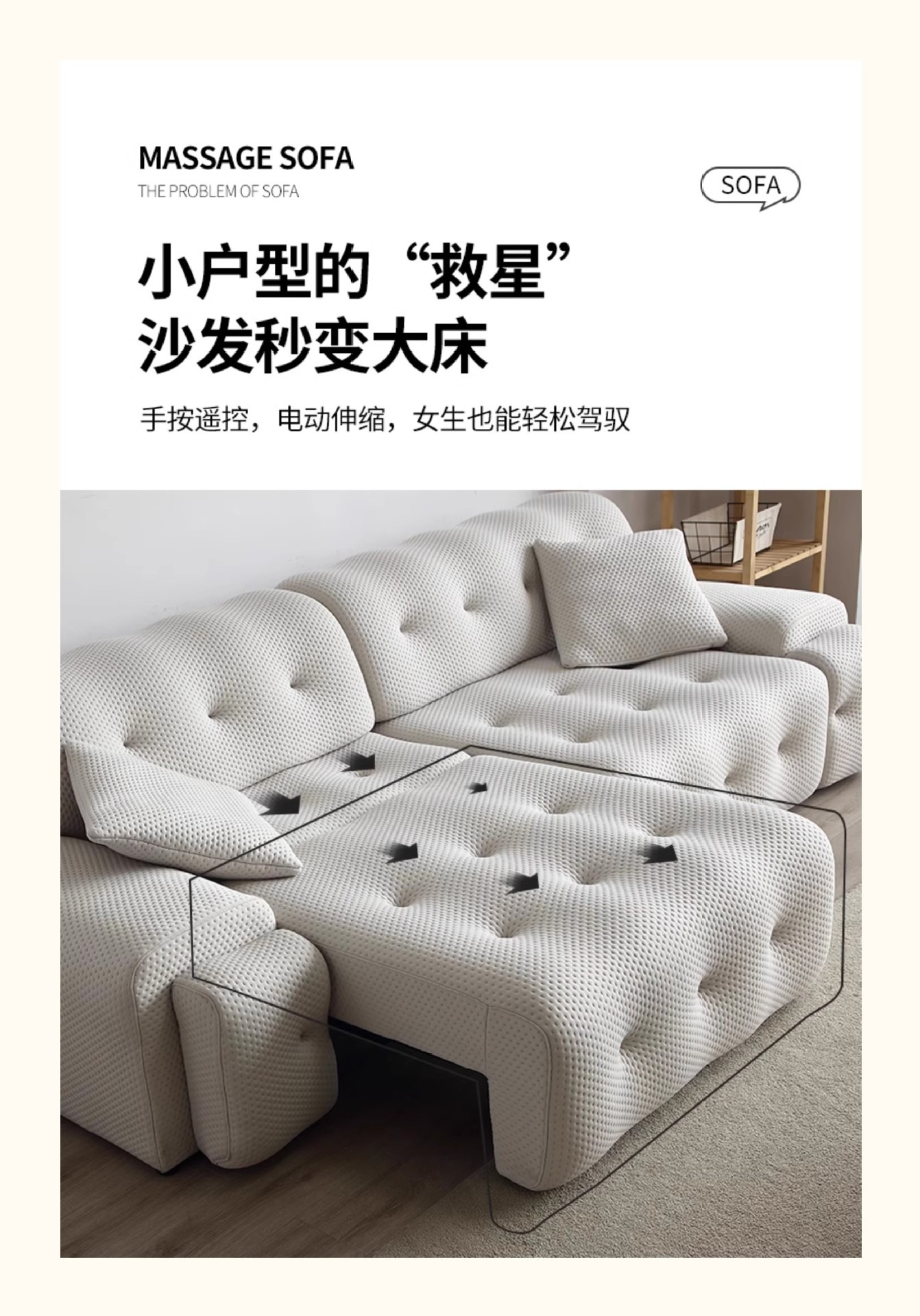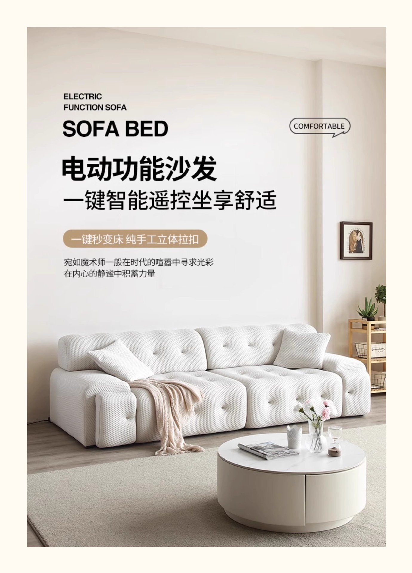 Rochburg 가죽 크림 스타일 미니멀리스트 거실 크기 이중 목적 직선 개폐식 다기능 전기 소파 침대스토어 가기