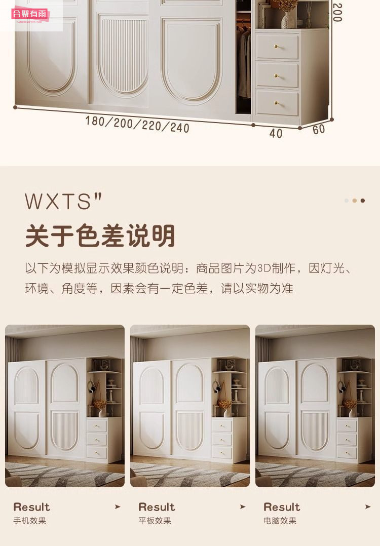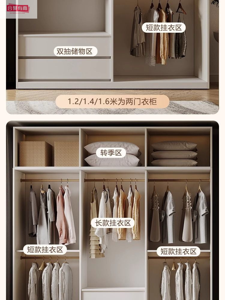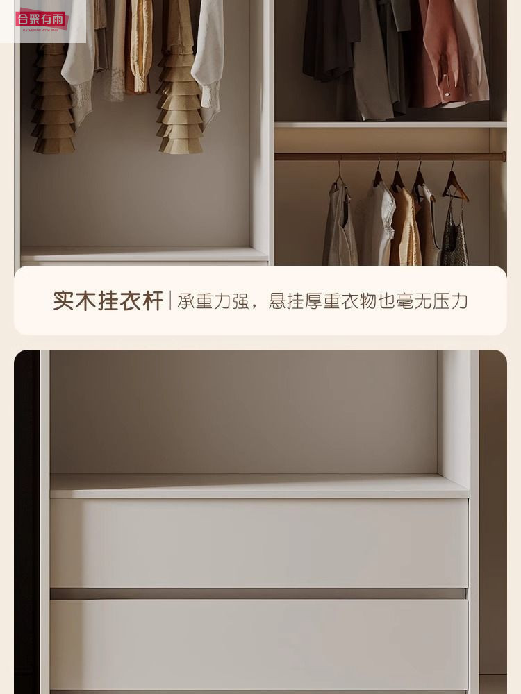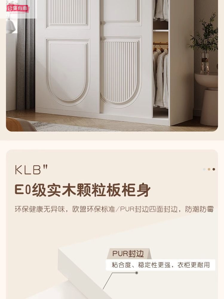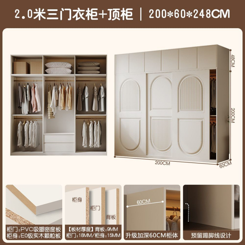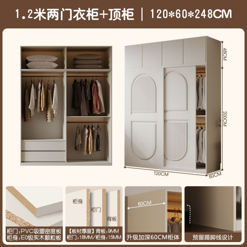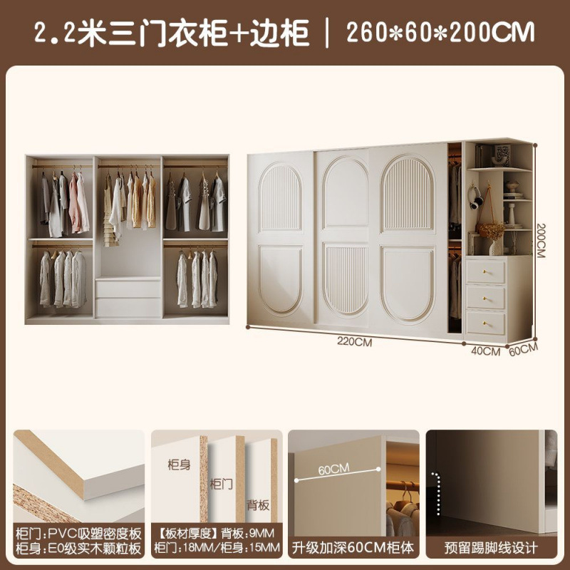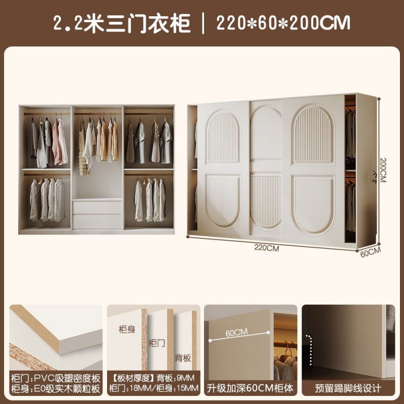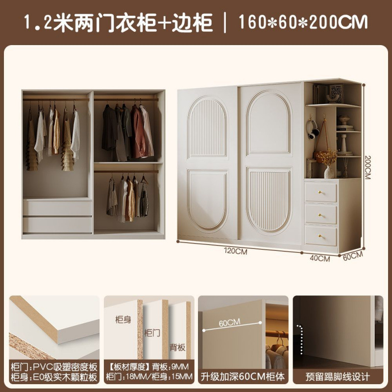 프렌치 크림 스타일 슬라이딩 도어 옷장 작은 아파트 경제적 인 수납 옷장 단단한 나무 캐비닛 현대적인 미니멀리스트 스타일