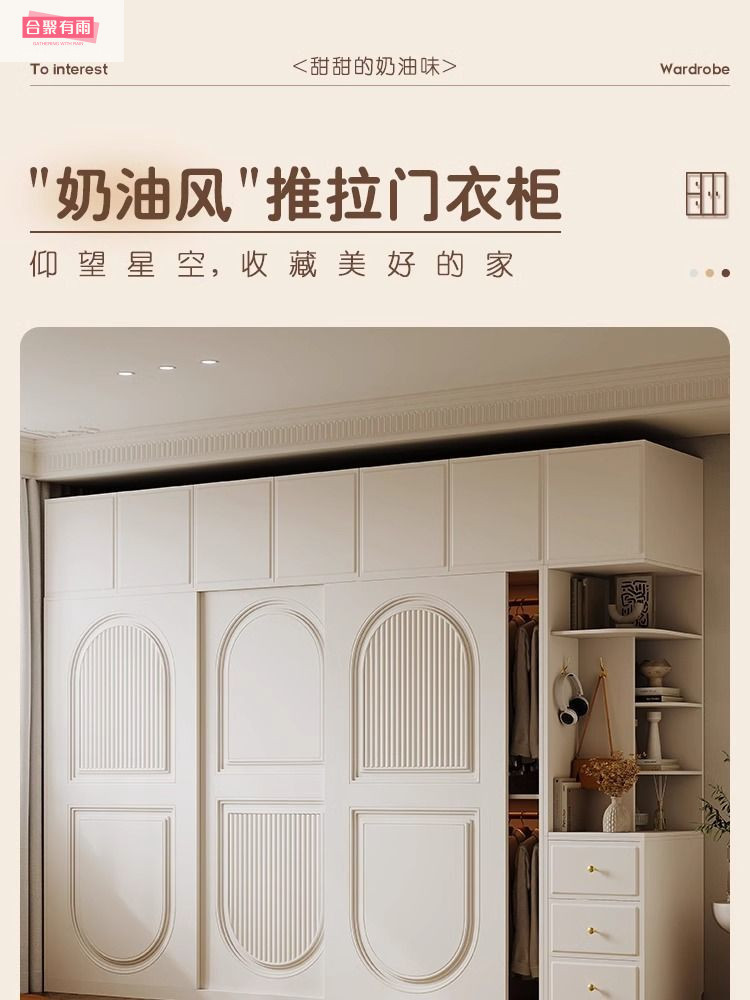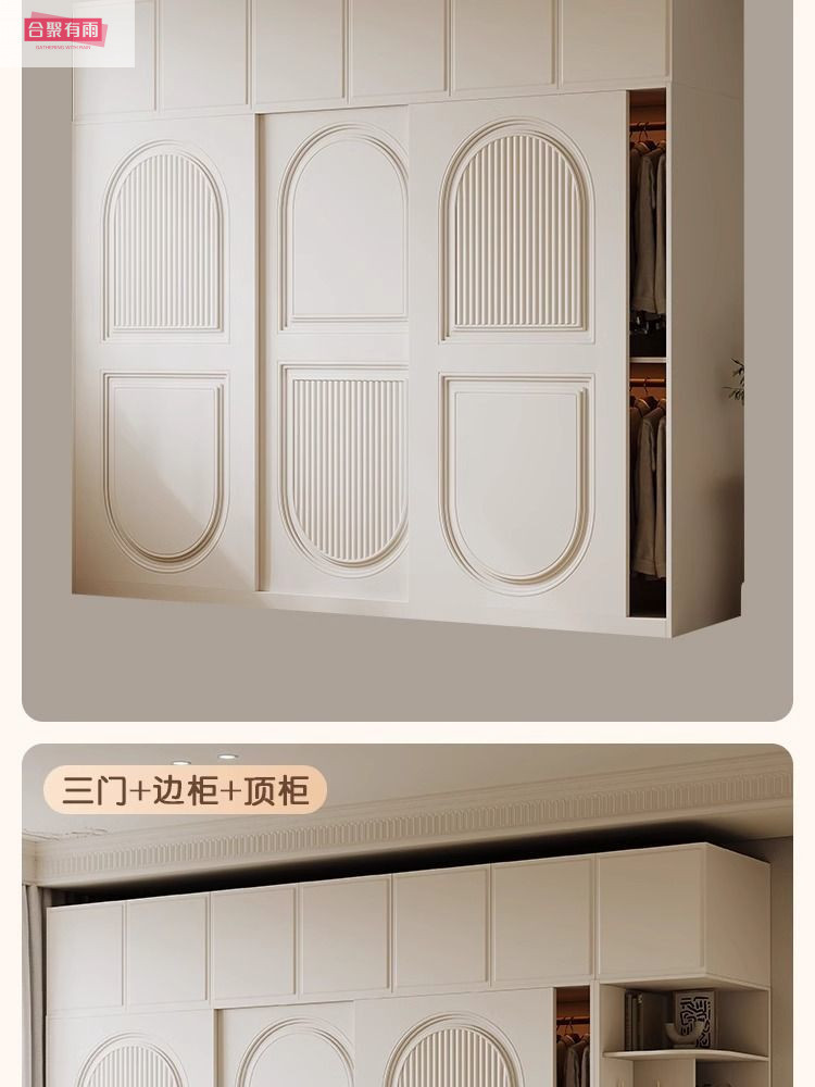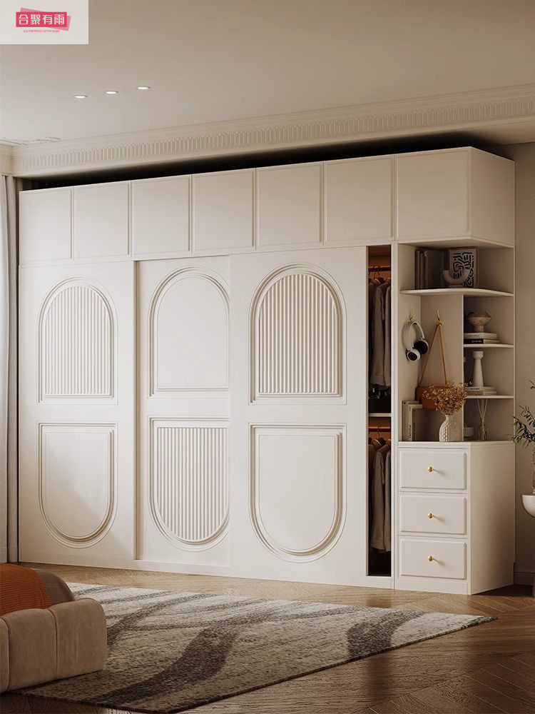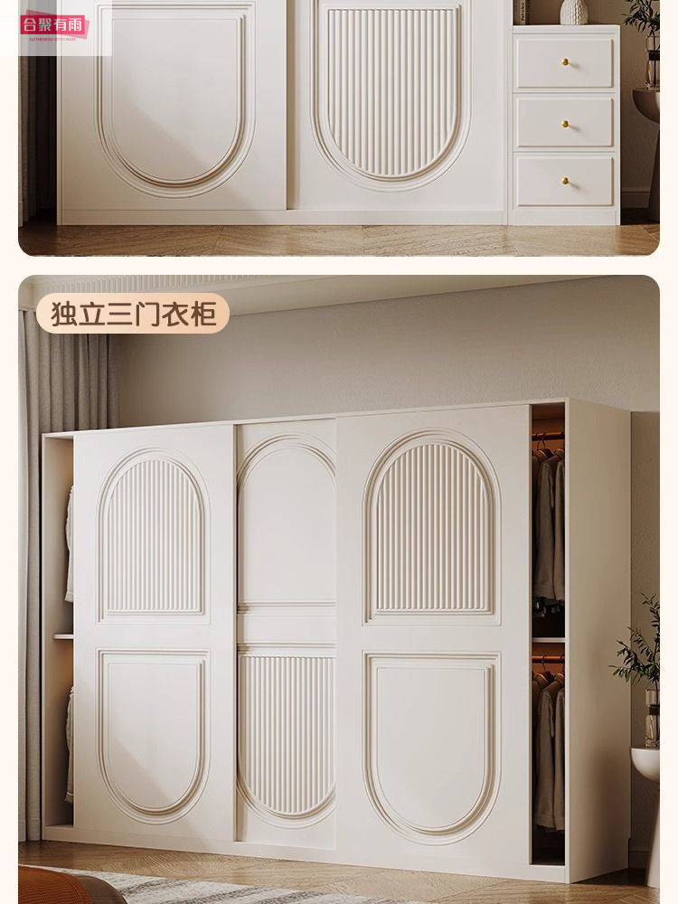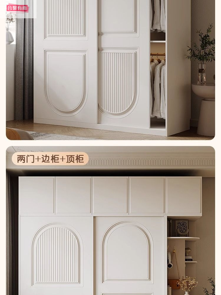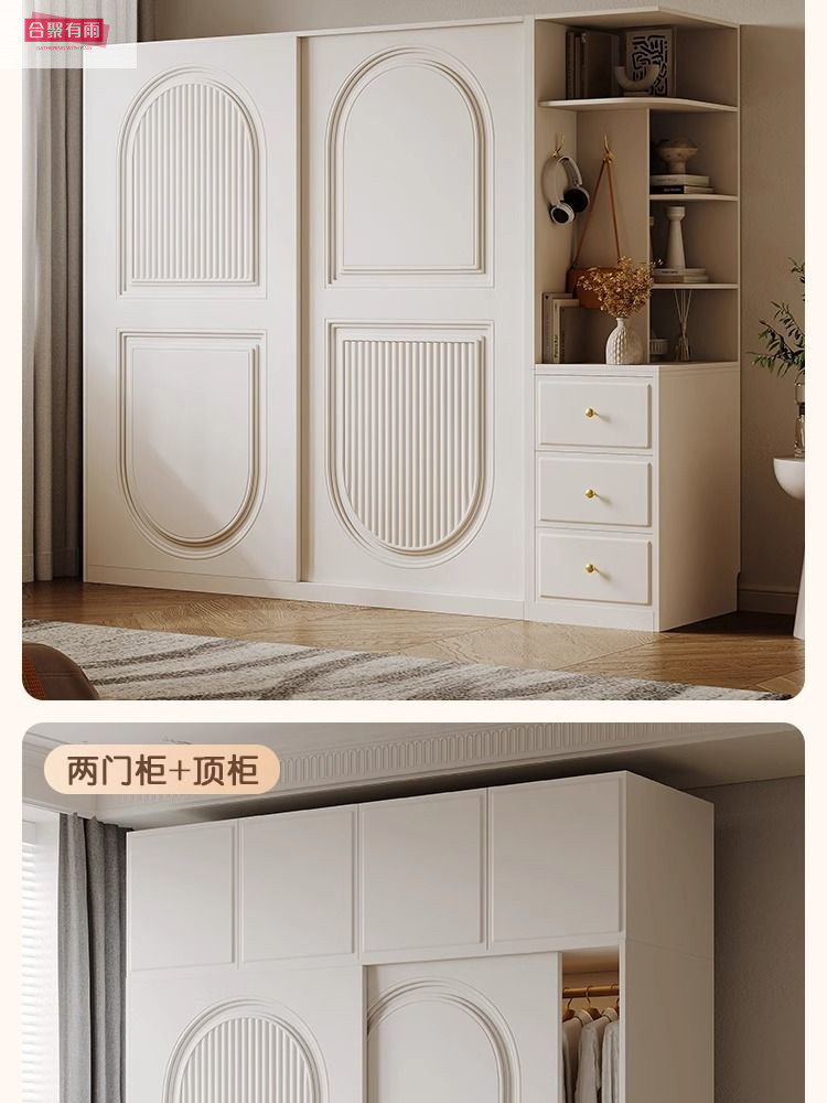 프렌치 크림 스타일 슬라이딩 도어 옷장 작은 아파트 경제적 인 수납 옷장 단단한 나무 캐비닛 현대적인 미니멀리스트 스타일스토어 가기