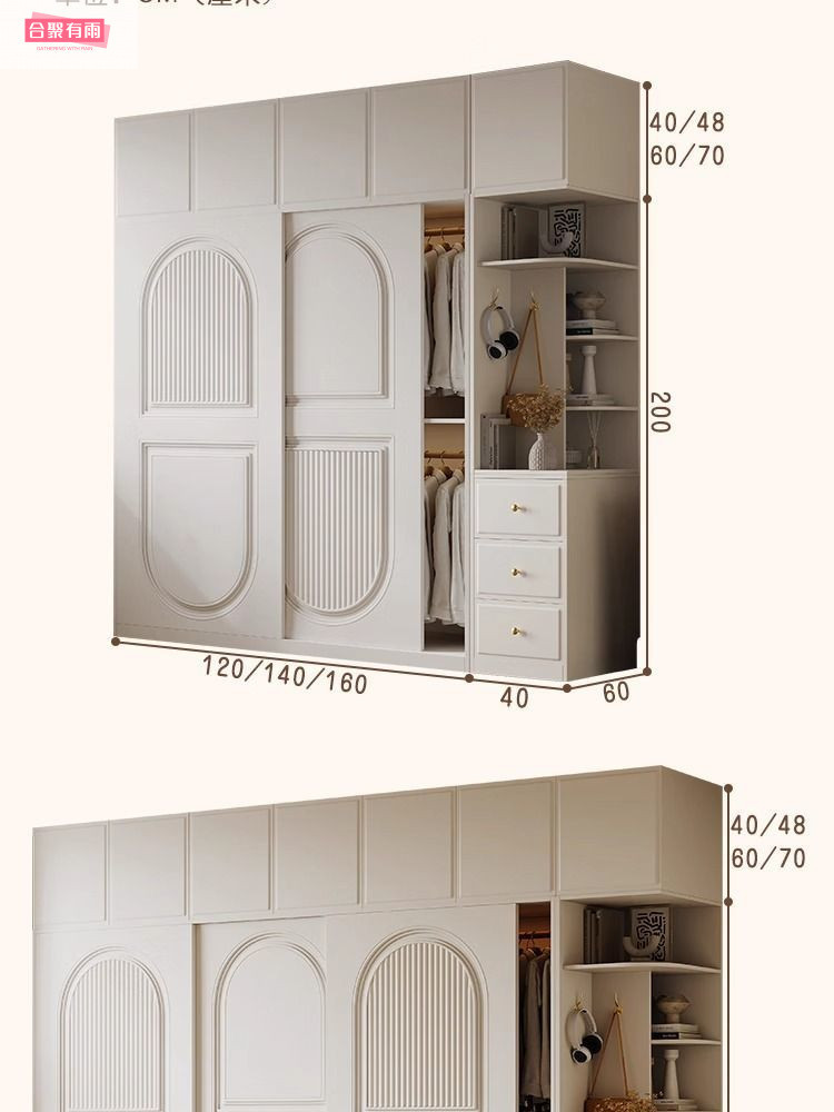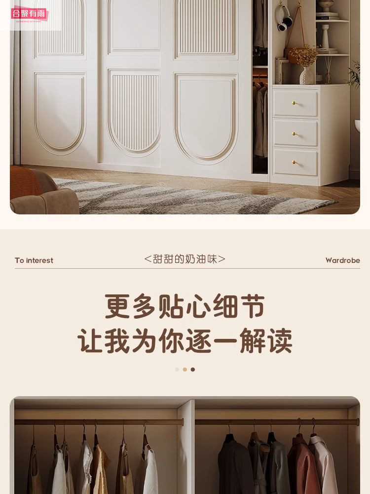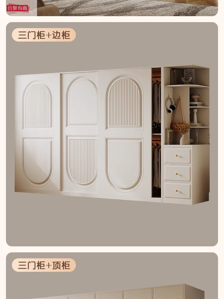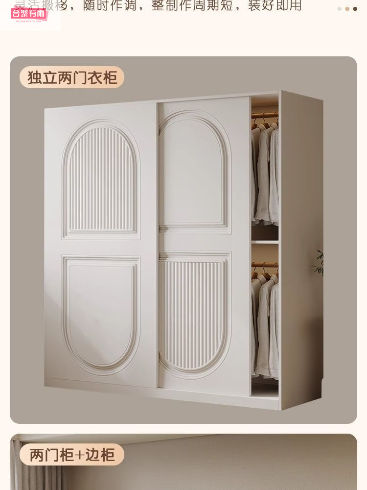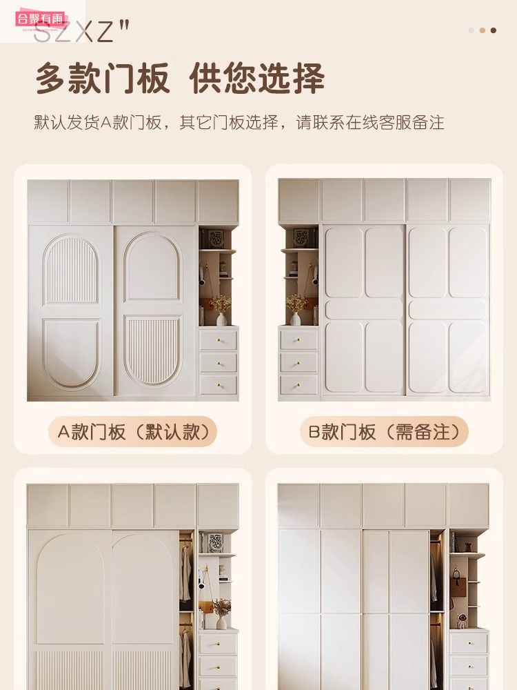 프렌치 크림 스타일 슬라이딩 도어 옷장 작은 아파트 경제적 인 수납 옷장 단단한 나무 캐비닛 현대적인 미니멀리스트 스타일스토어 가기