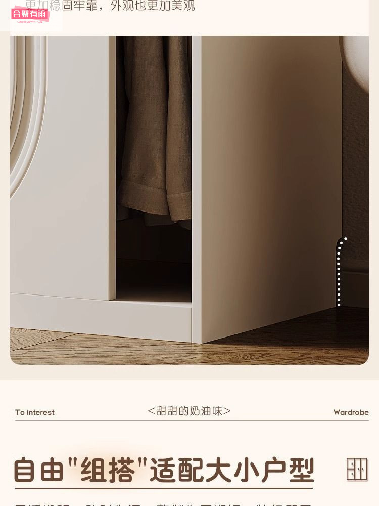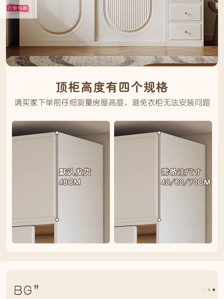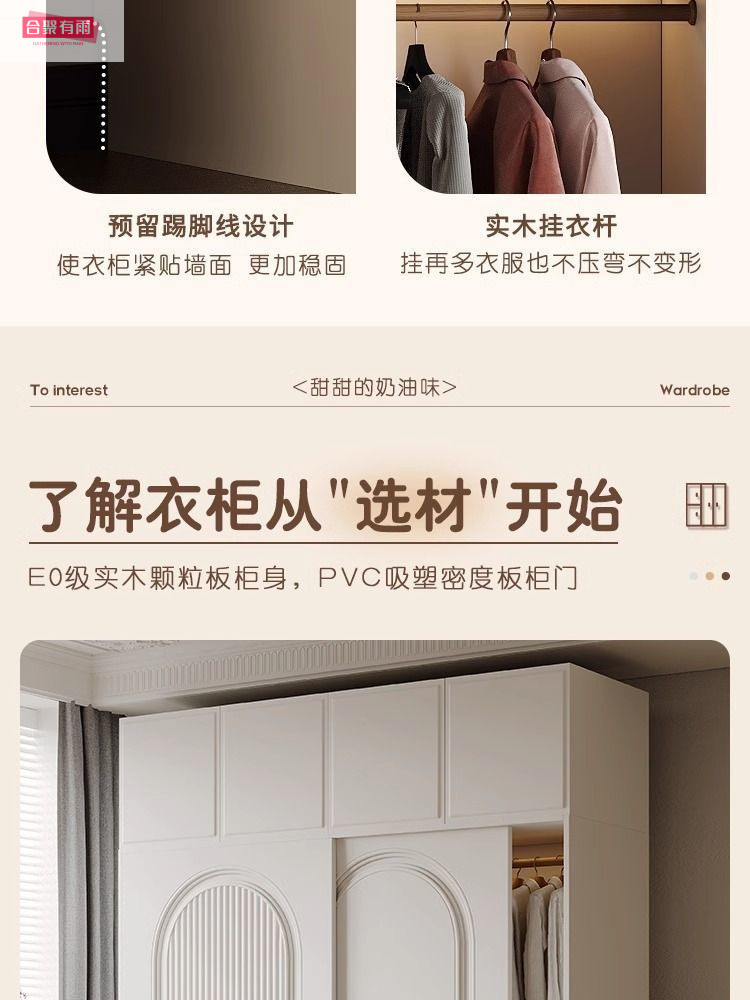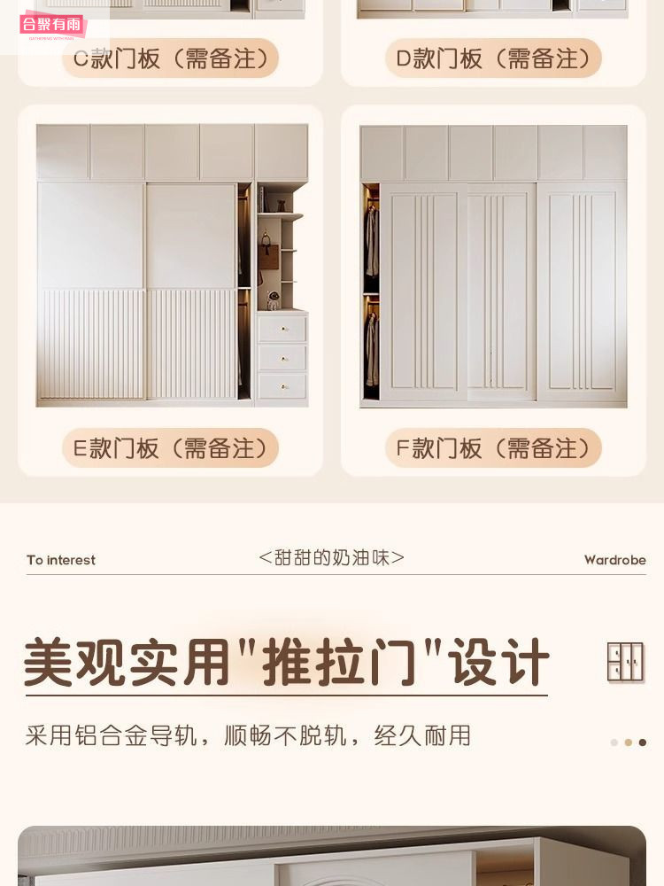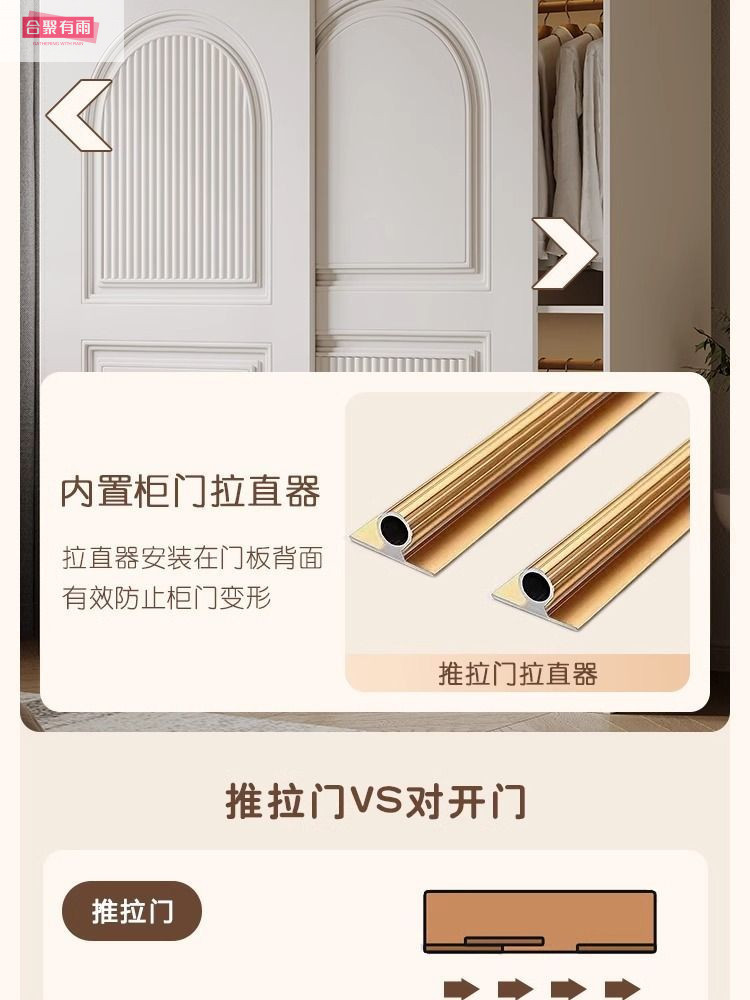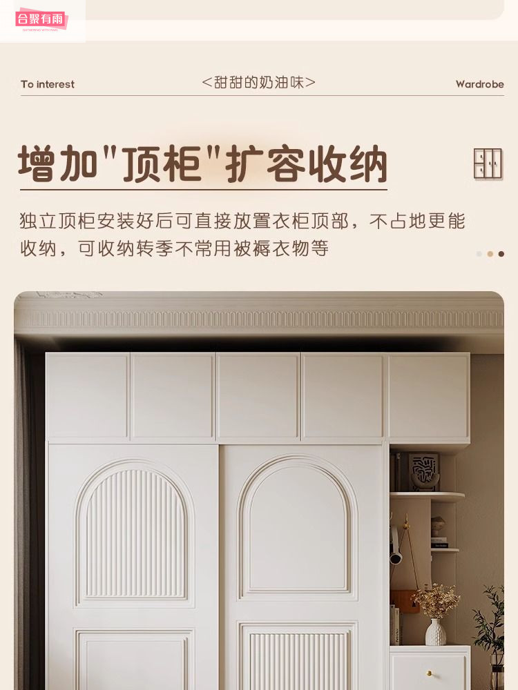 프렌치 크림 스타일 슬라이딩 도어 옷장 작은 아파트 경제적 인 수납 옷장 단단한 나무 캐비닛 현대적인 미니멀리스트 스타일스토어 가기