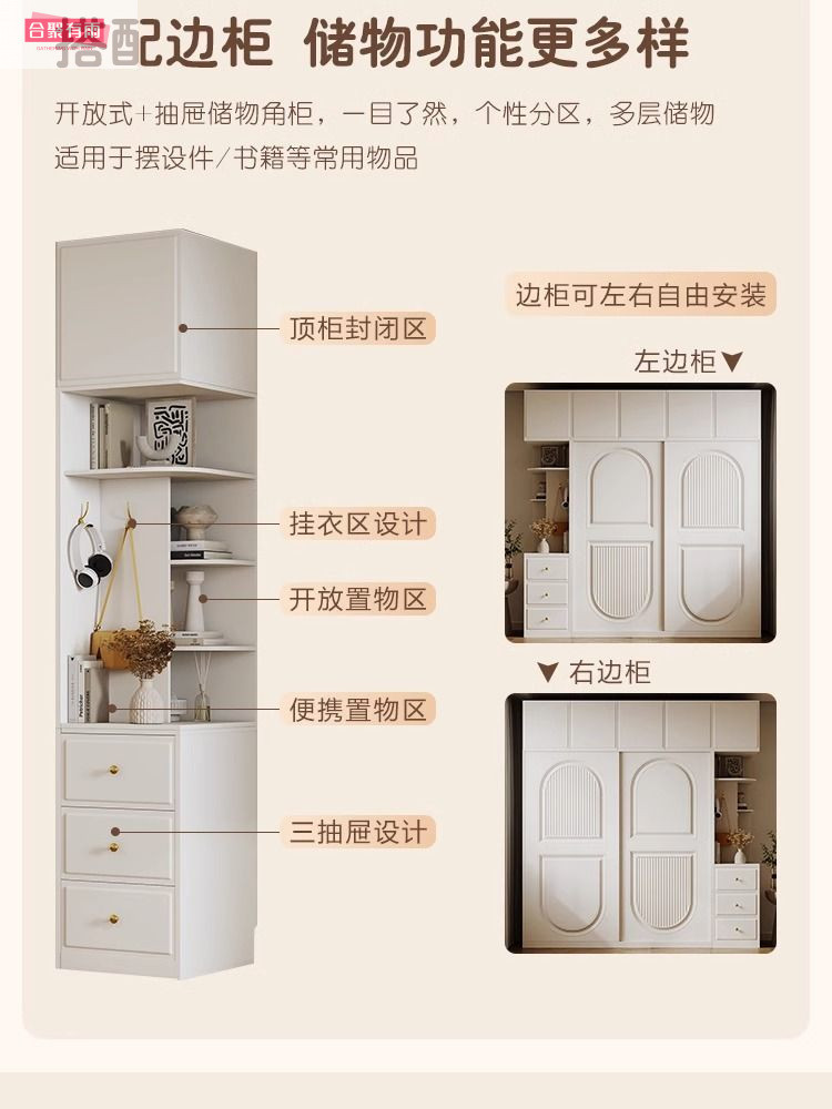 • 1.8m 옷장 + 상단 캐비닛 + 측면 캐비닛