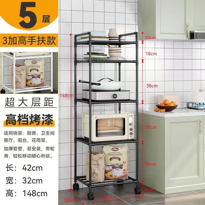 크로스보더 주방 수납랙 소형 트롤리 바퀴 달린 다층 가정용 수납랙 전자레인지 수납랙