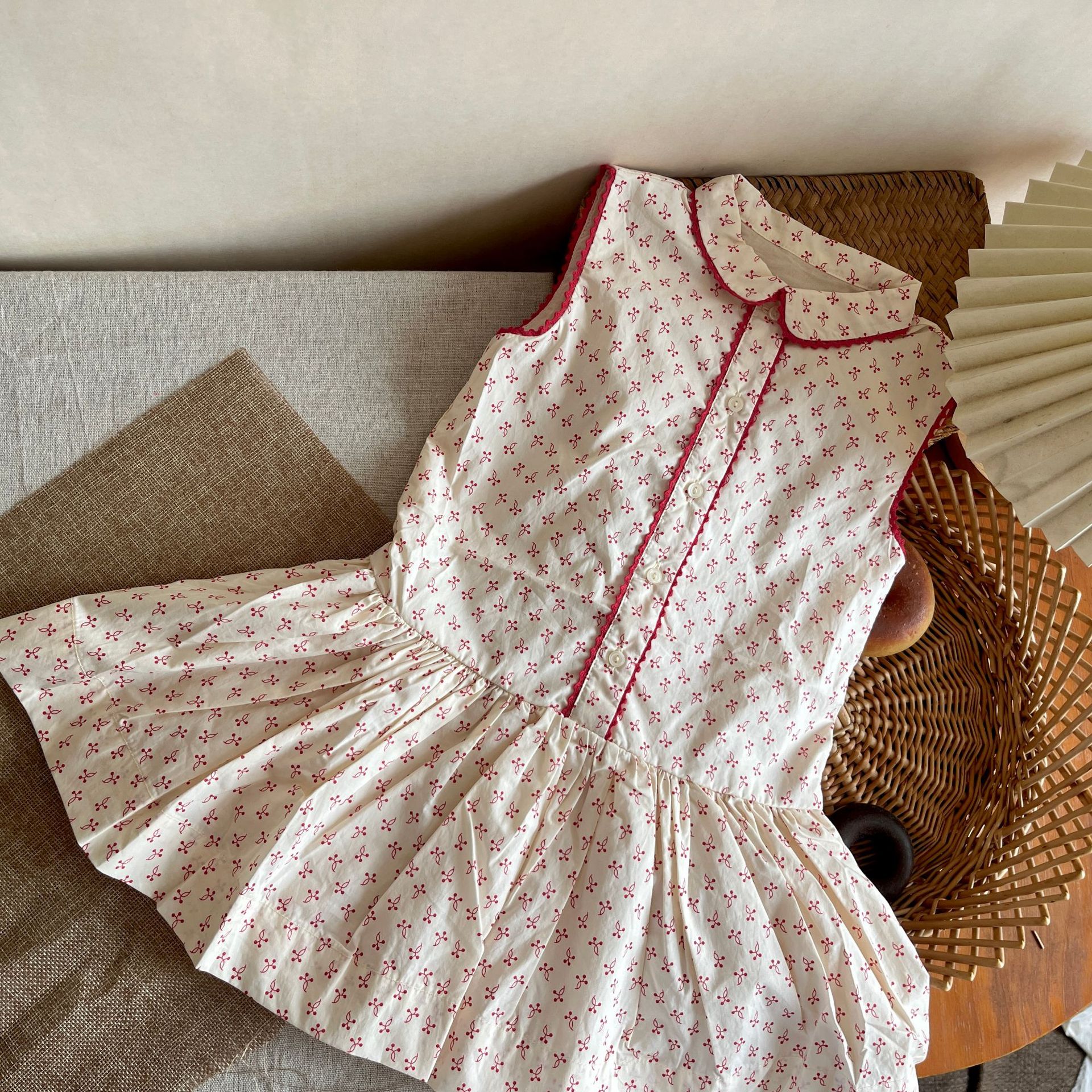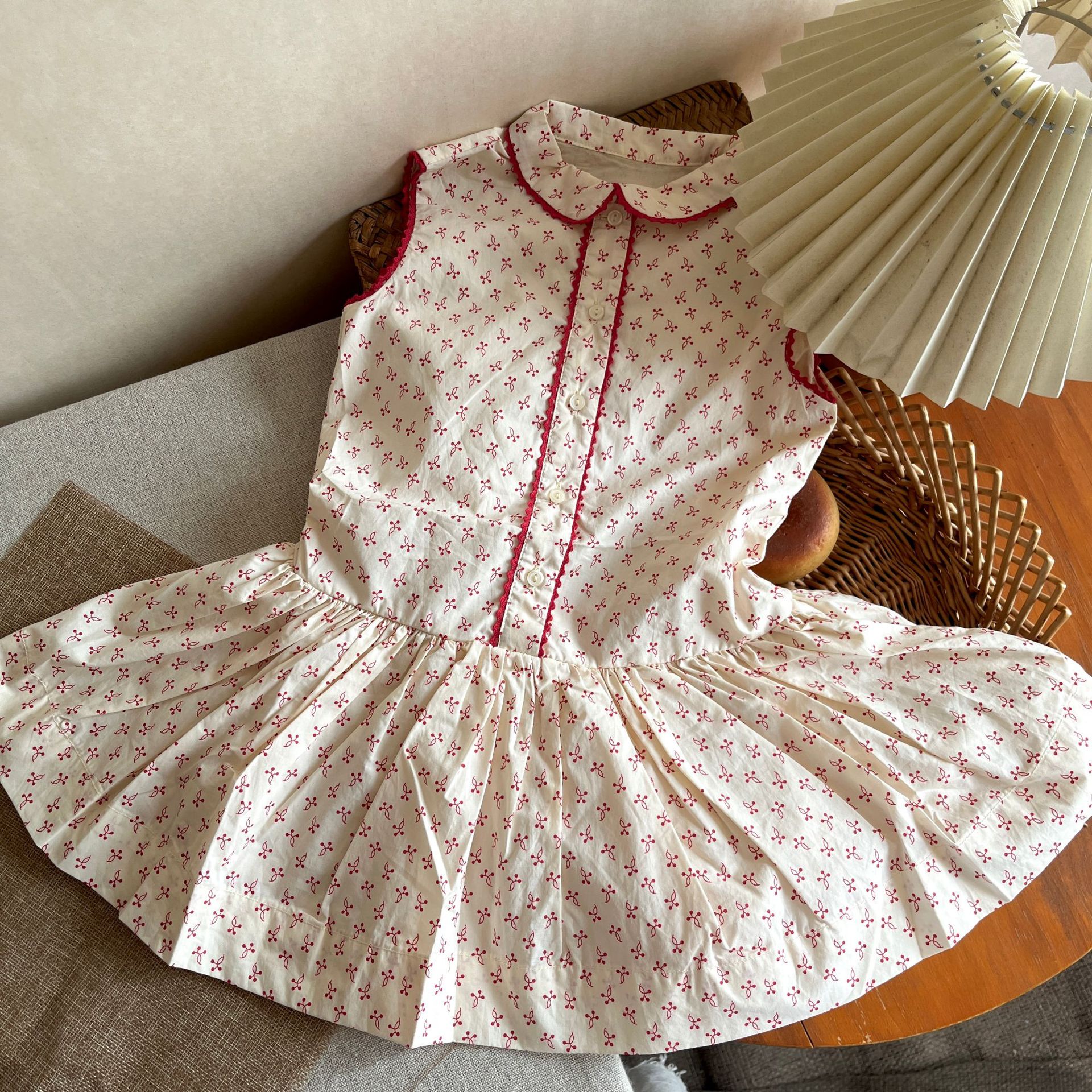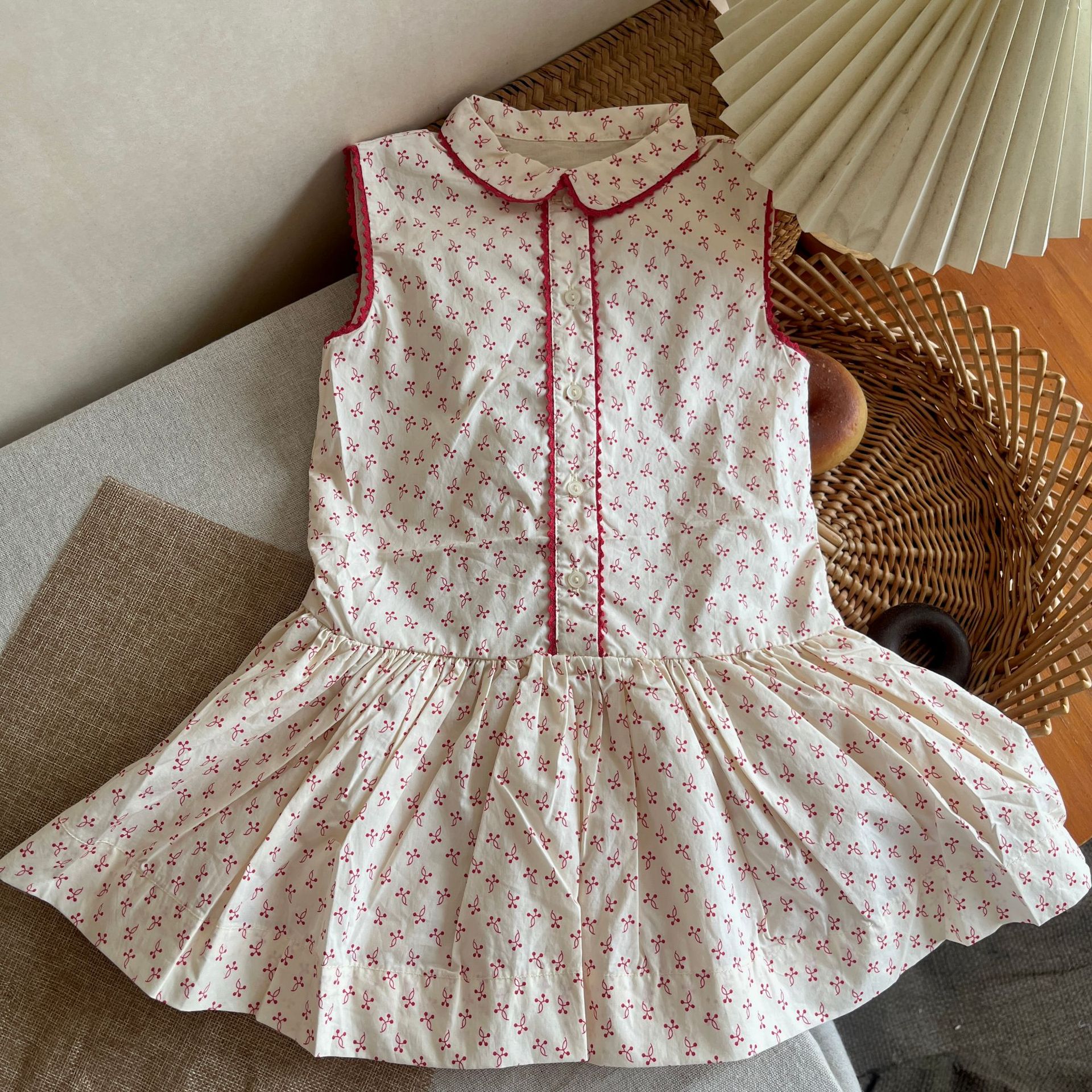 2026년 여름 신상 여아용 세련된 꽃무늬 레이스 귀여운 라펠 민소매 원피스 편안한 드레스