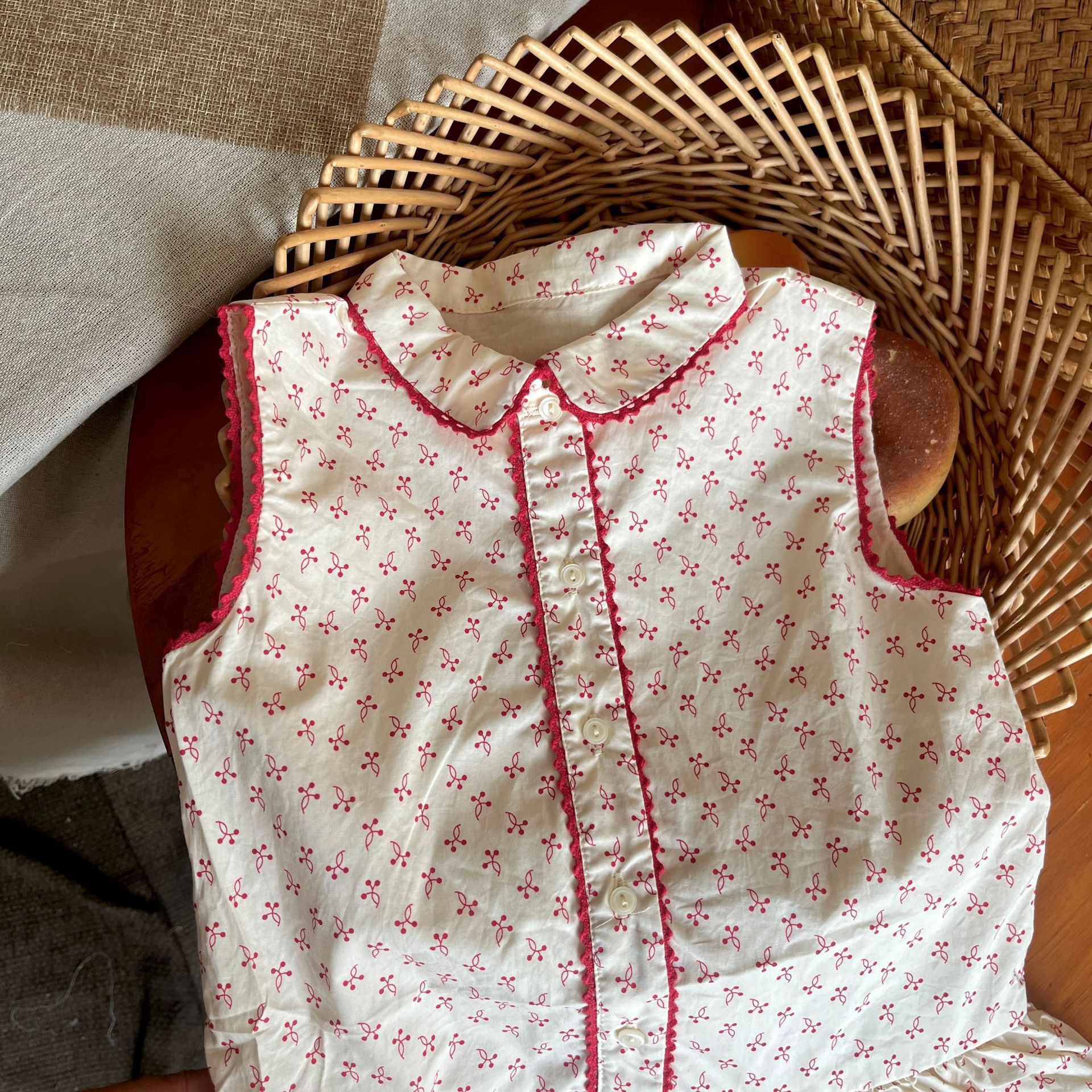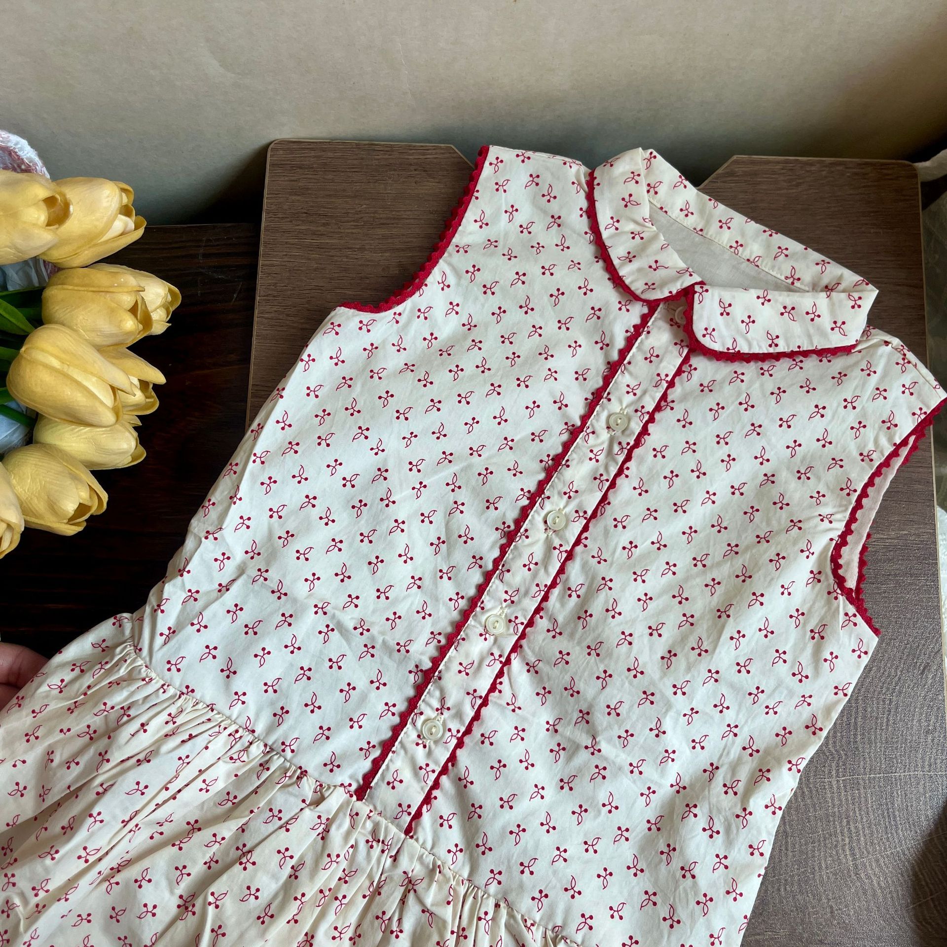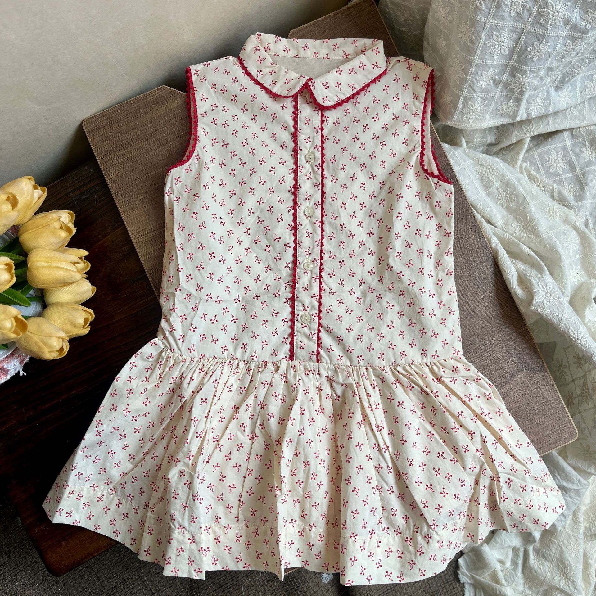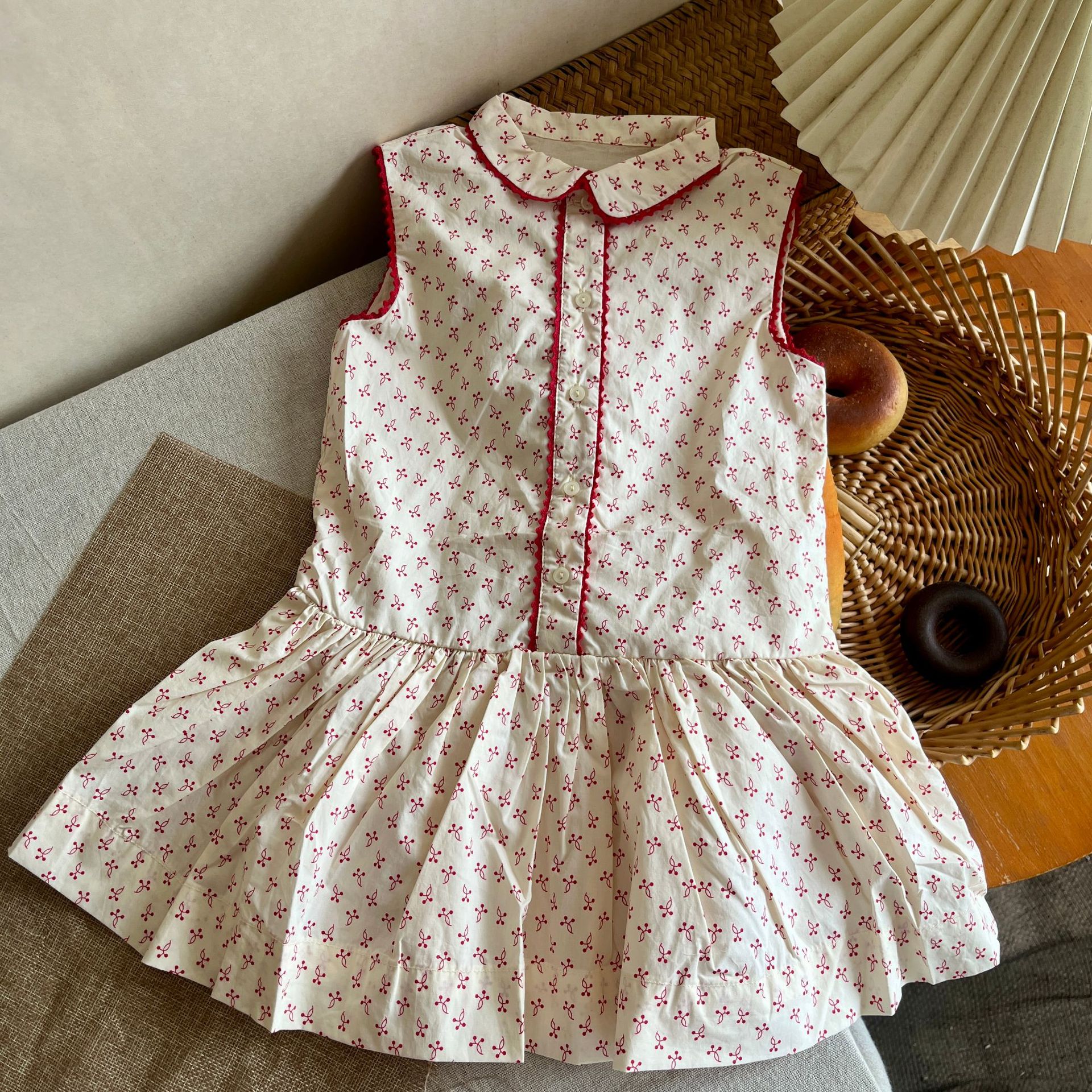 2026년 여름 신상 여아용 세련된 꽃무늬 레이스 귀여운 라펠 민소매 원피스 편안한 드레스
