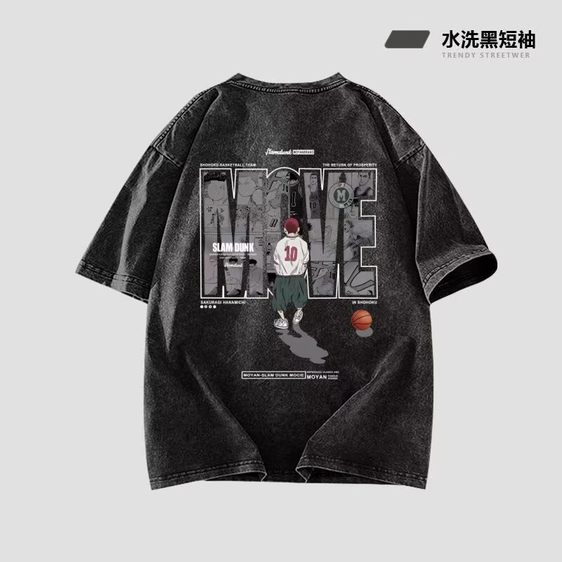 대외 무역 여름 우유 실크 오래된 농구 만화 프린트 셔츠 홍콩 스타일 패션 청소년 트렌드 통기성 남성 반팔스토어 가기