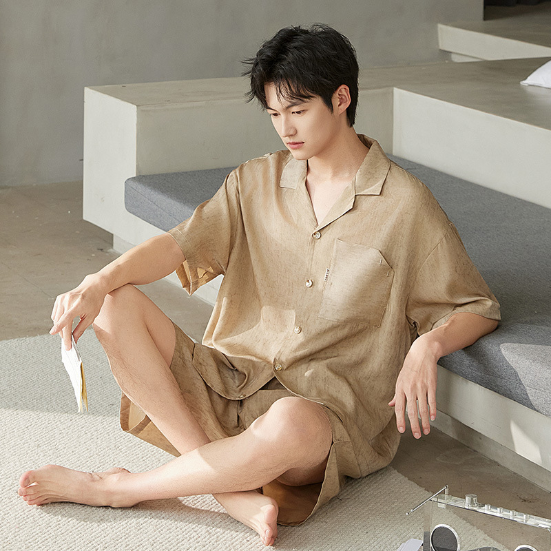 공장 여름 새로운 재고 직접 남성 잠옷 단색 간단한 느슨한 편안한 짧은 소매 바지 홈 의류 세트