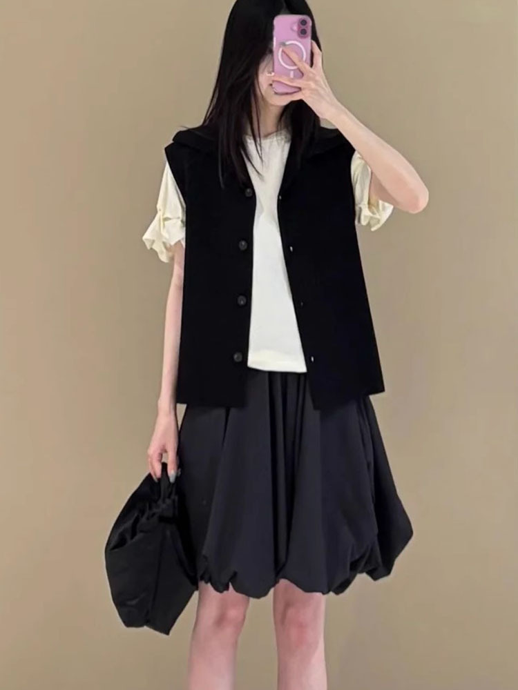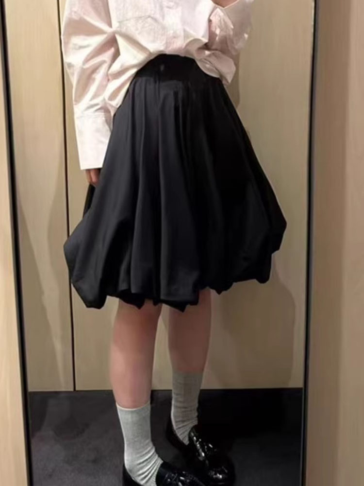 2025 봄 신상 여성복, 달콤하고 다재다능한 컬리지 스타일 버블 프릴 신축성 있는 허리 하이웨이스트 미니 스커트