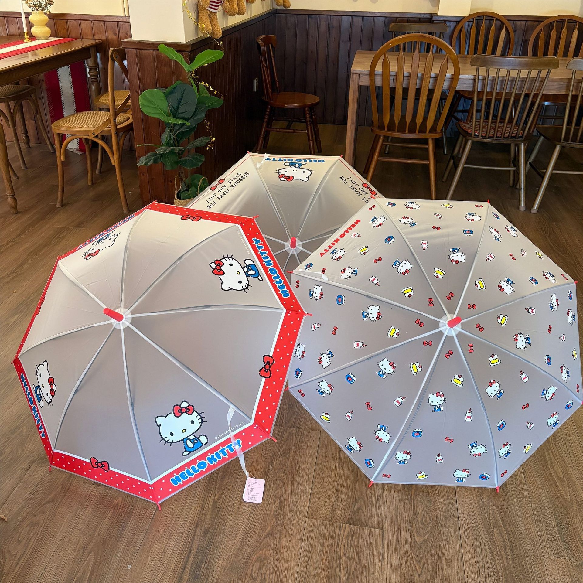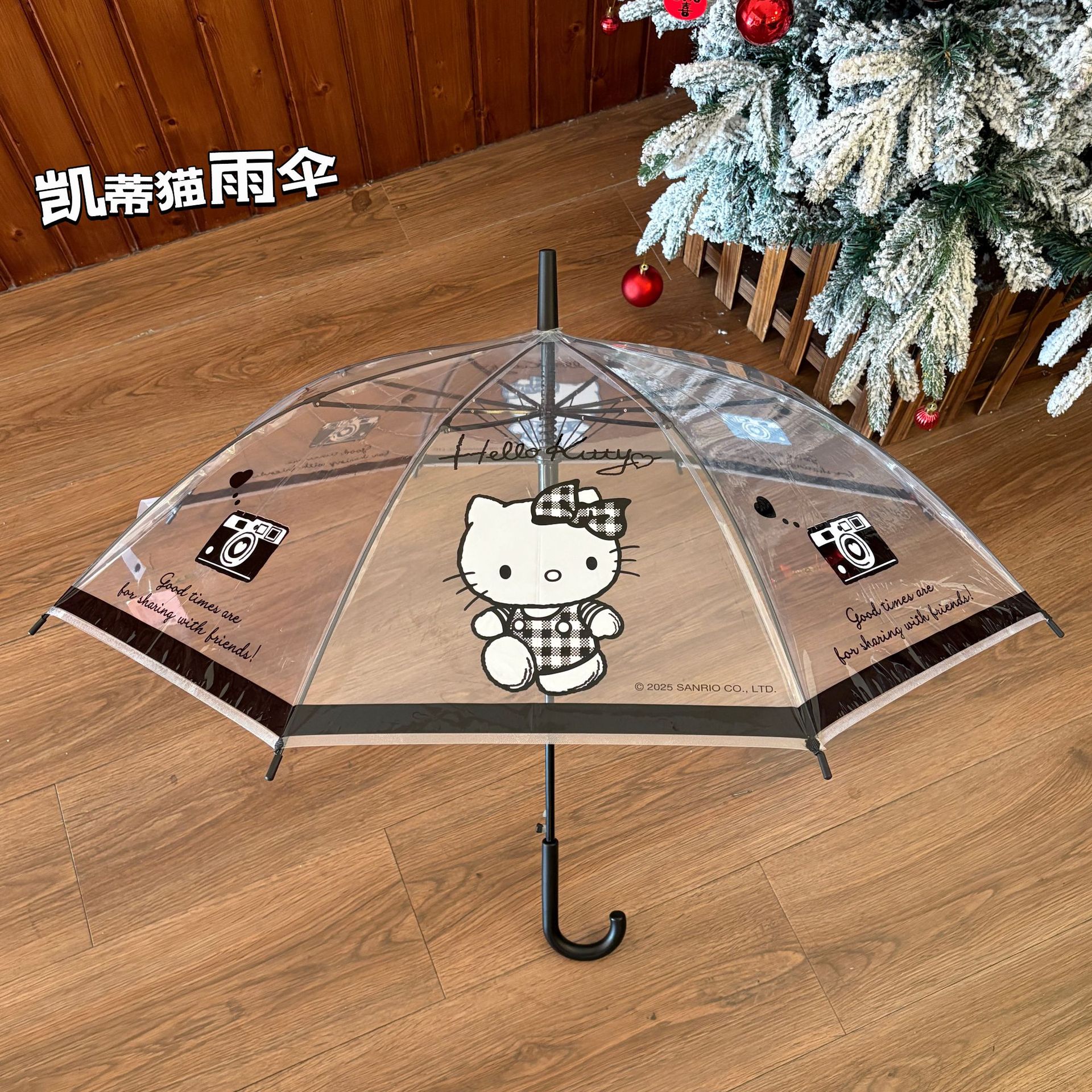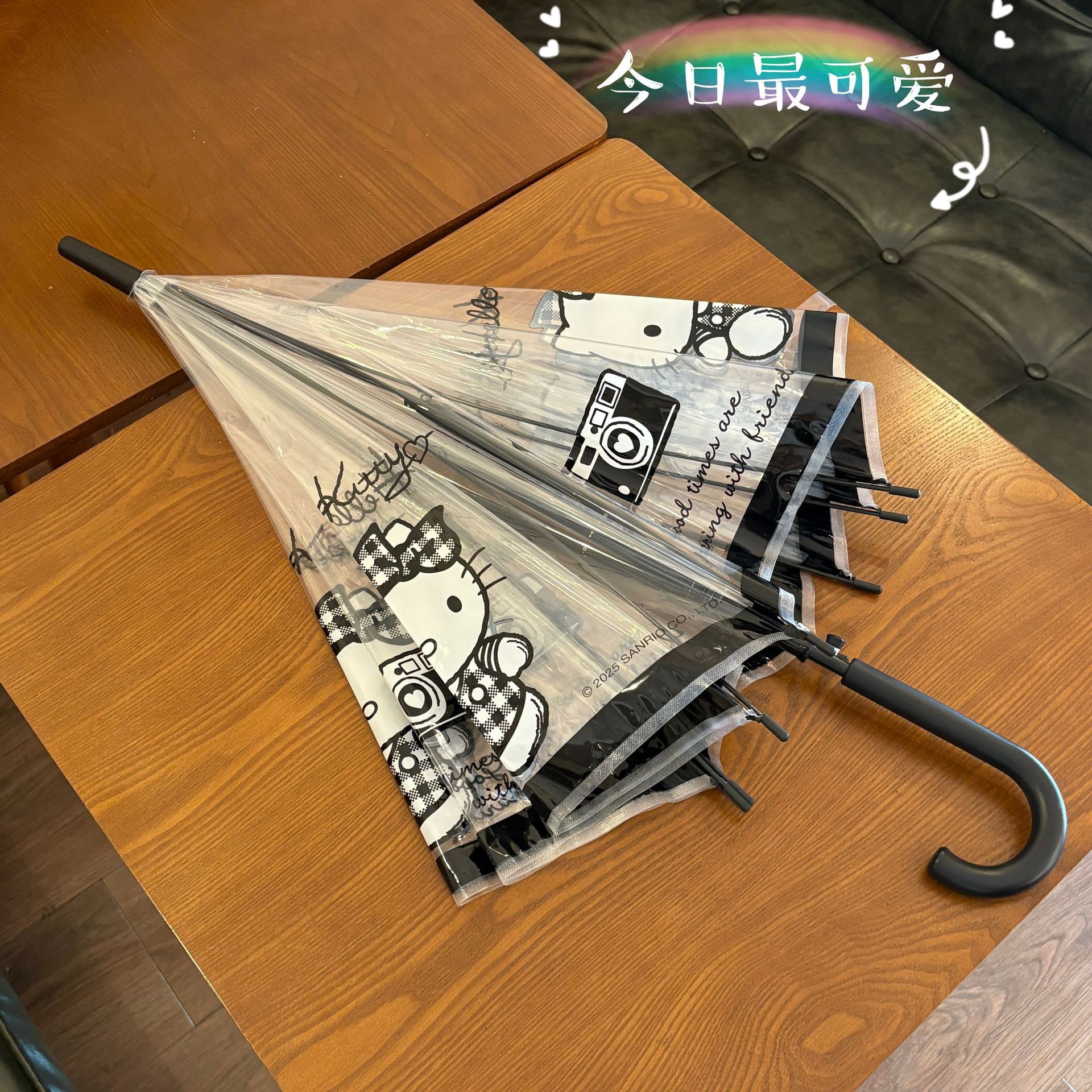 재고 있음 Sanrio kt 고양이 우산 여성 귀여운 만화 투명 자동 긴 손잡이 우산 학생 학교 귀여운 스트레이트 우산스토어 가기