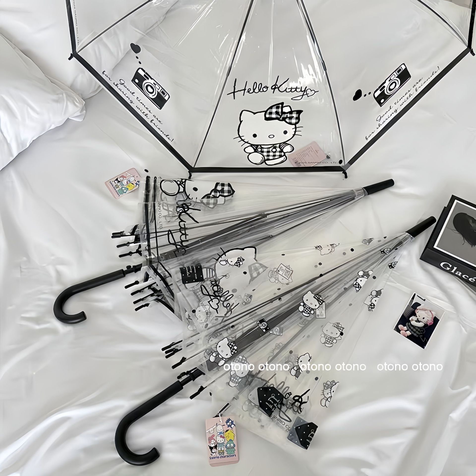 재고 있음 Sanrio kt 고양이 우산 여성 귀여운 만화 투명 자동 긴 손잡이 우산 학생 학교 귀여운 스트레이트 우산